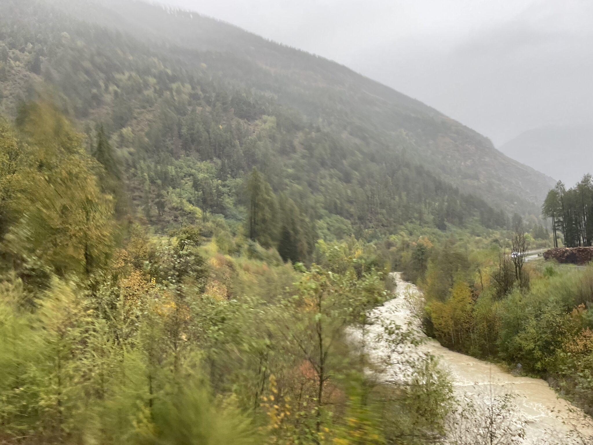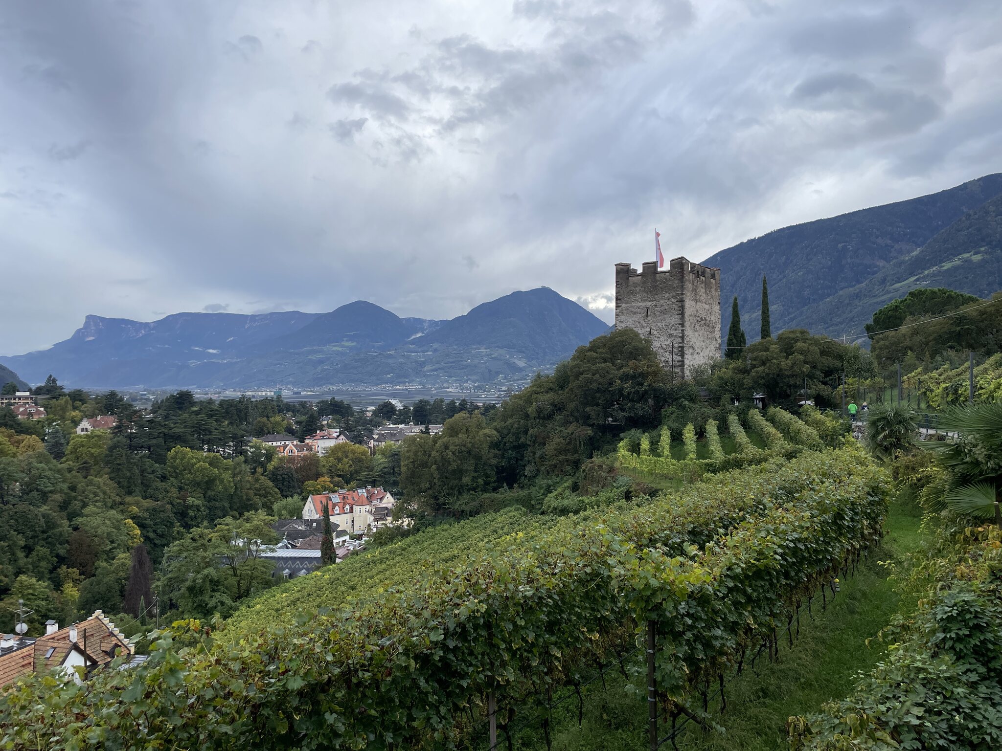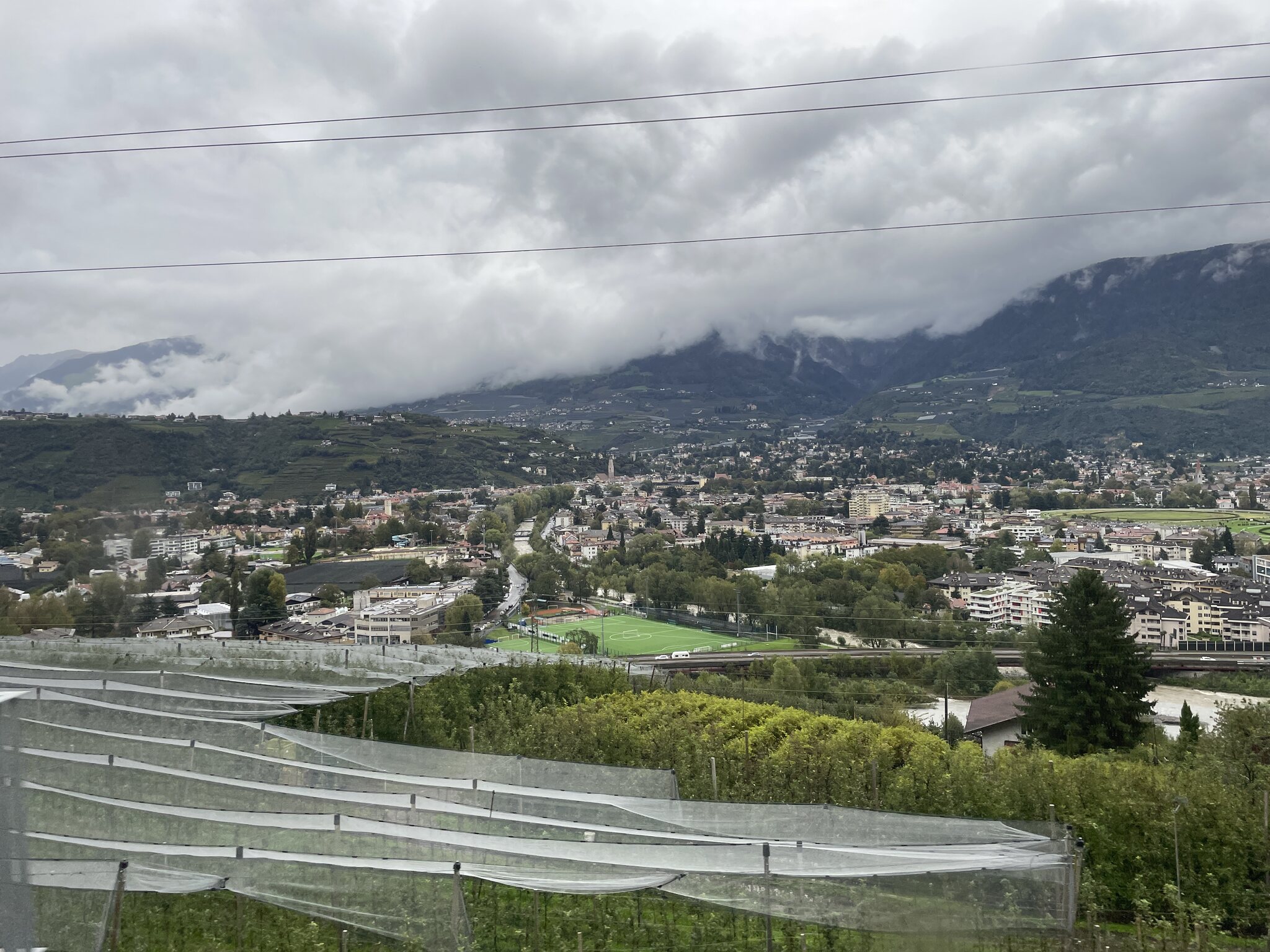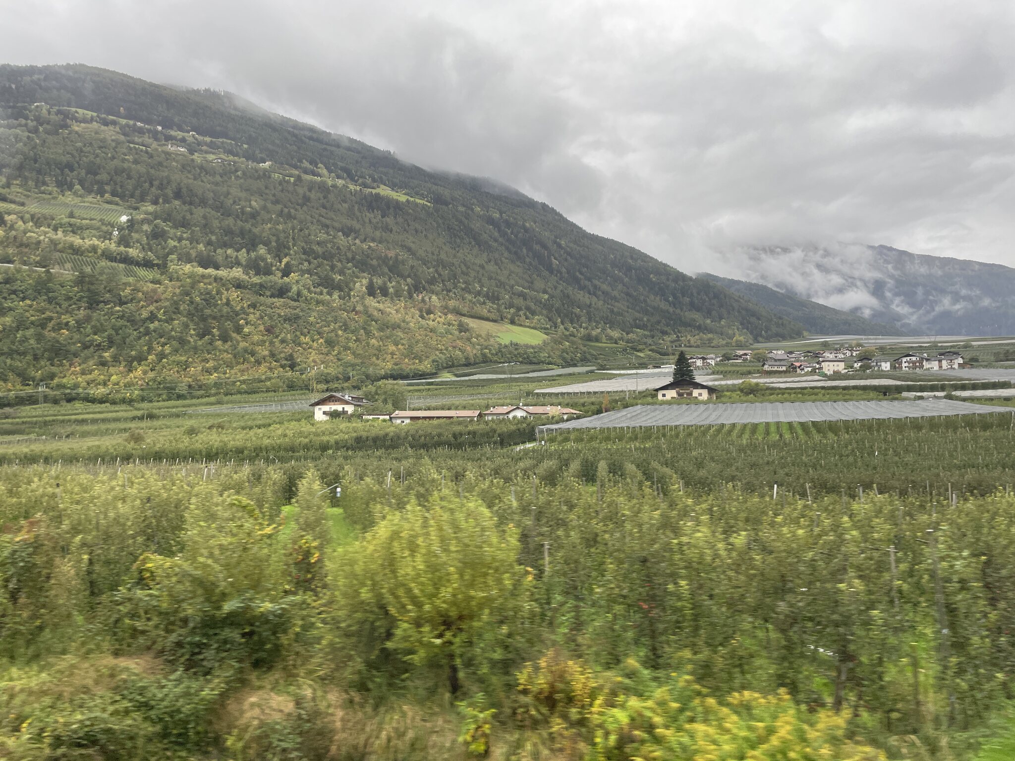 Der dritte Tag unserer Reise führte uns vom schweizerischen Santa Maria ins italienische Meran. Auf dieser Etappe machte ich nicht viele Fotos. Erstens war das Wetter einmal mehr sehr bescheiden und die Scheiben des Busses sowie der Bahn glichen oft einem Wasserfall. Zweitens habe ich mich vor allem im Zug meiner Lektüre gewidmet.