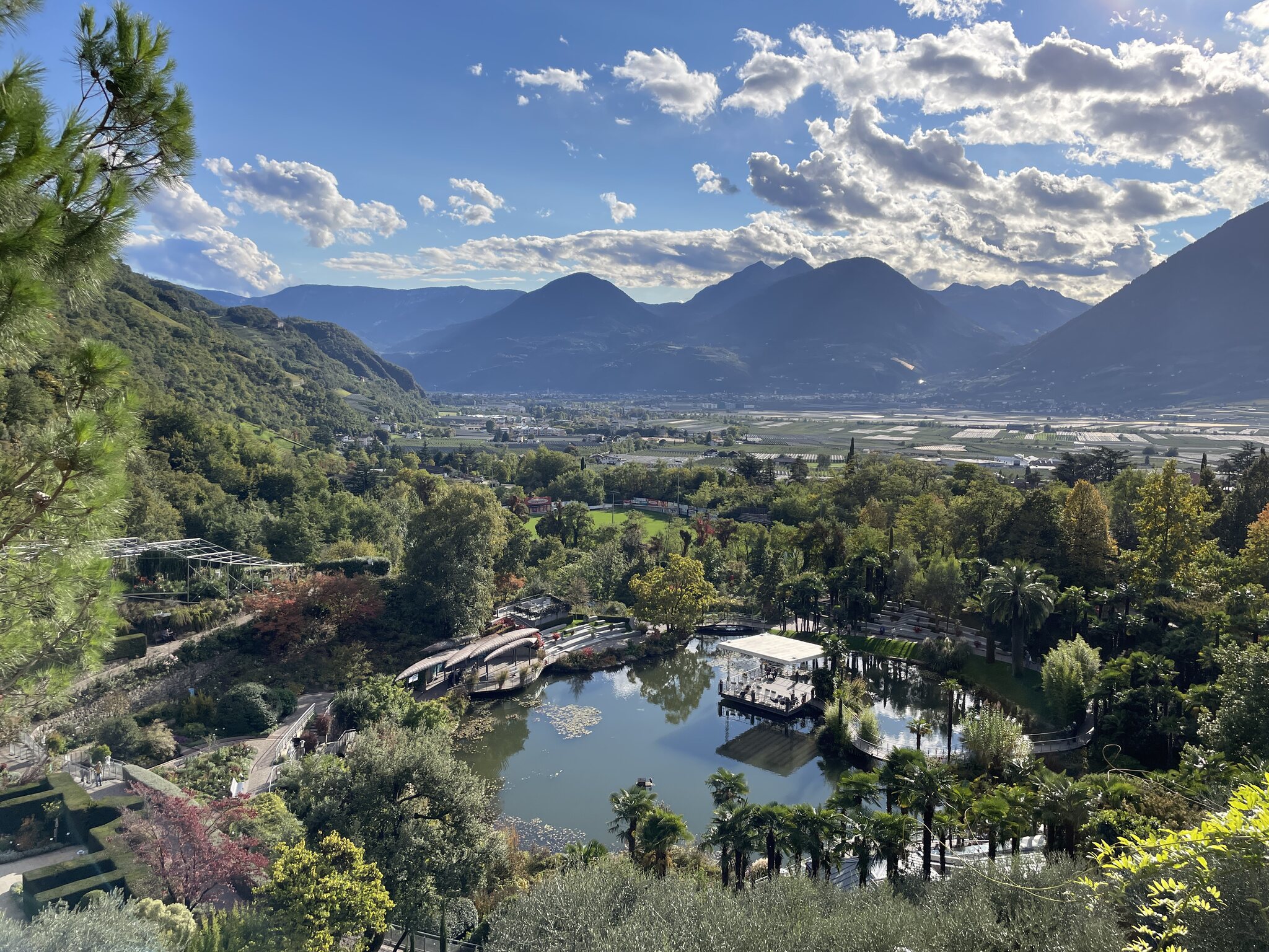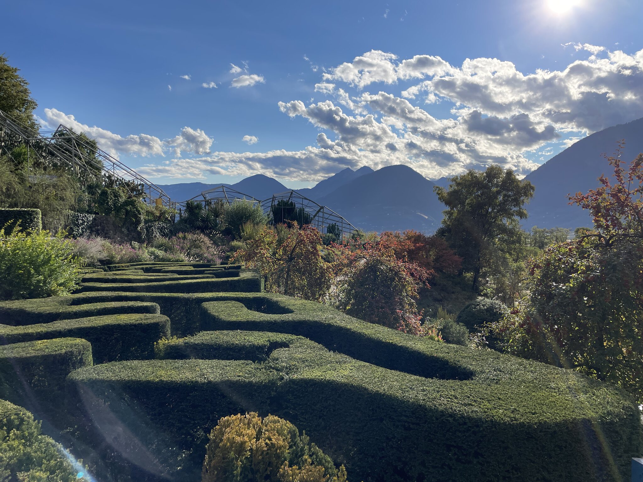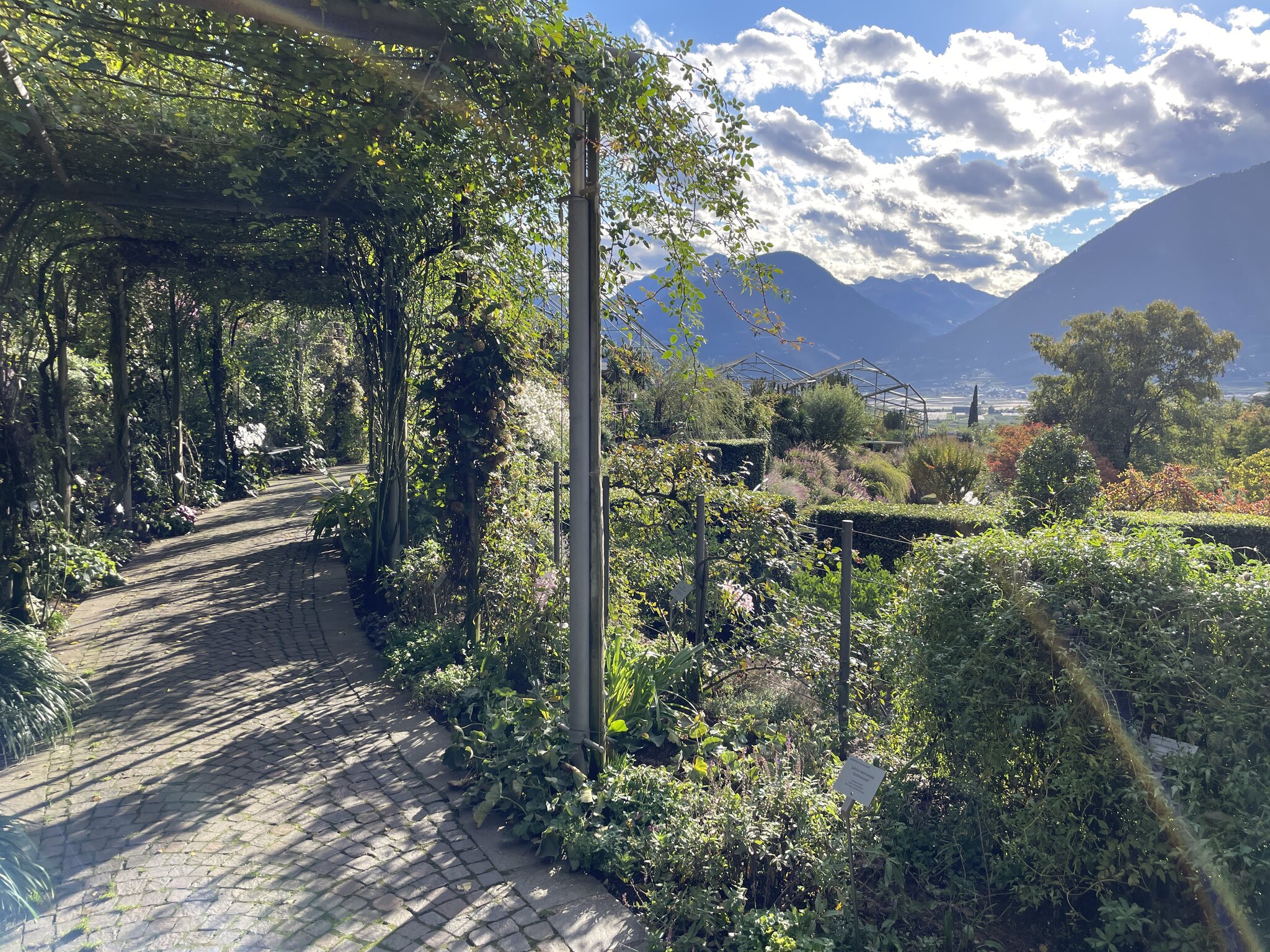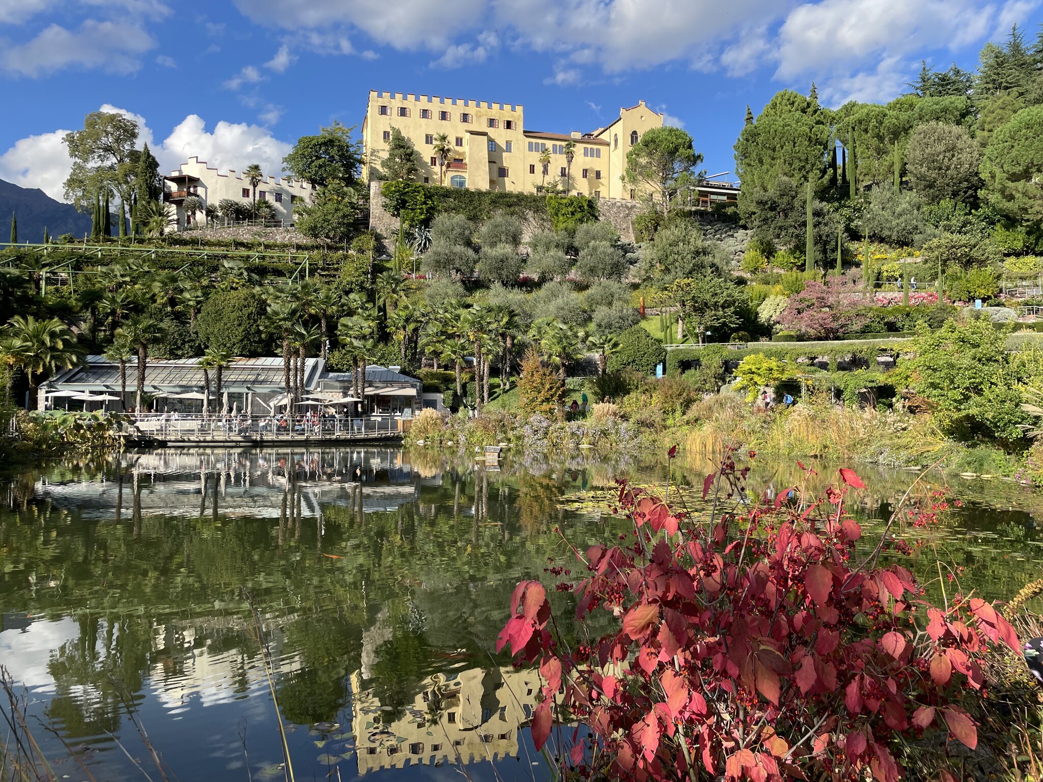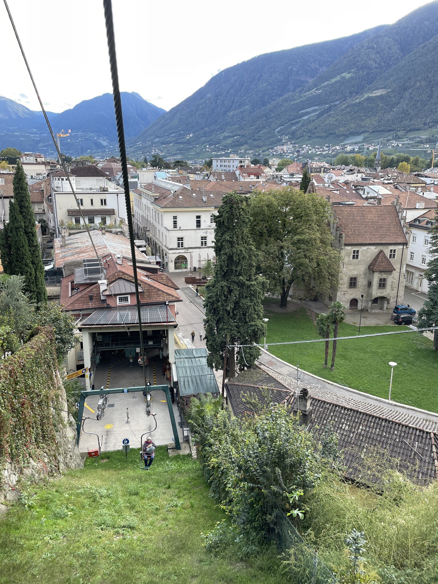 Nach dem Ausflug nach Meran 2000 am Morgen besuchten wir heute Nachmittag die Gärten des Schloss‘ Trauttmansdorff. Die Anlage ist eindrücklich gross und sehr gepflegt. Da ich keine Ahnung von Botanik habe, lasse ich die Bilder unkommentiert. Folgend auf den Garten machten wir einen Stadtbummel und gelangten zur nostalgischen Einersesselbahn Richtung Dorf Tirol. Eine Fahrt konnte ich nicht ausschlagen und so gab es eine Berg- und Talfahrt.