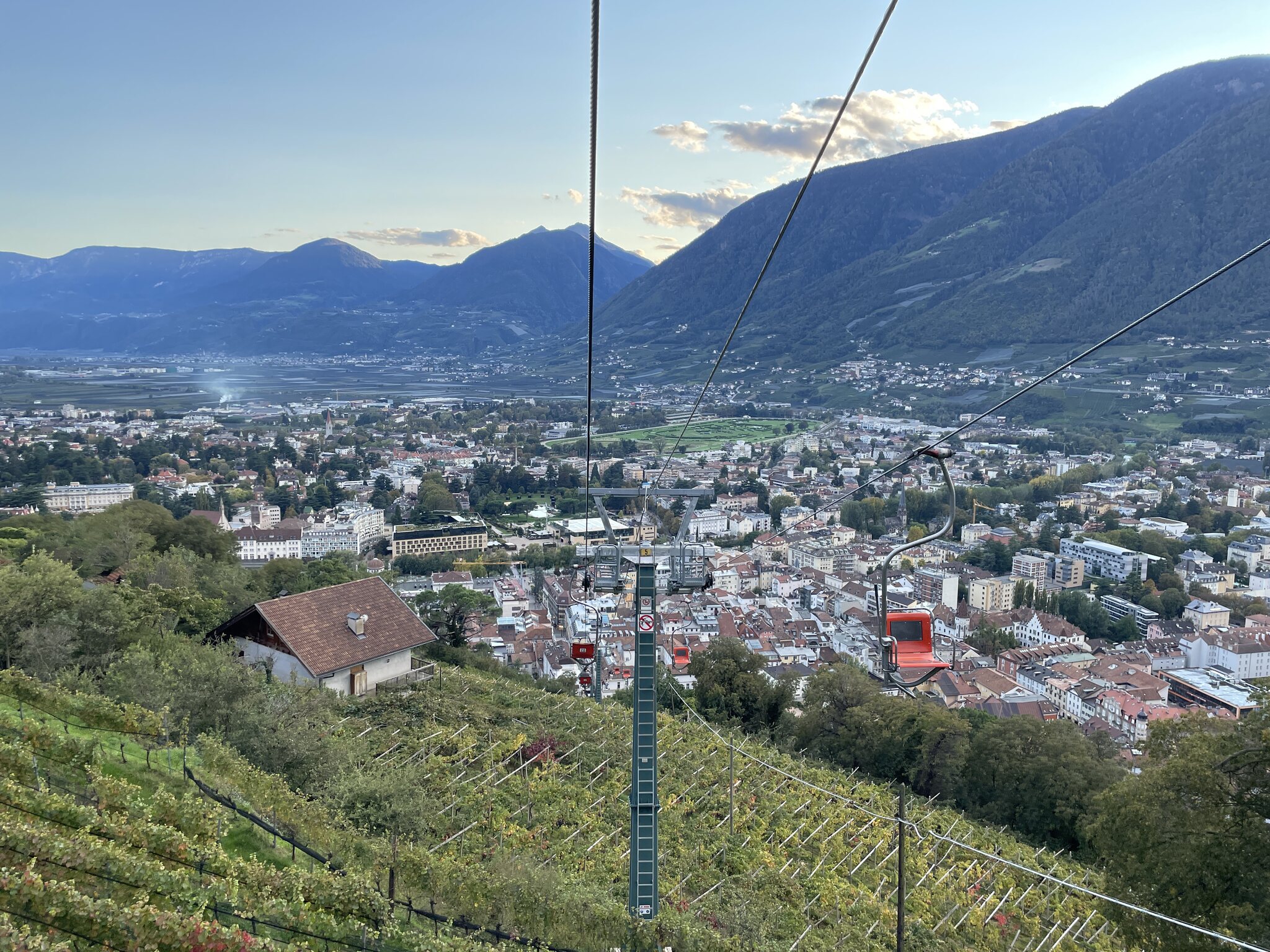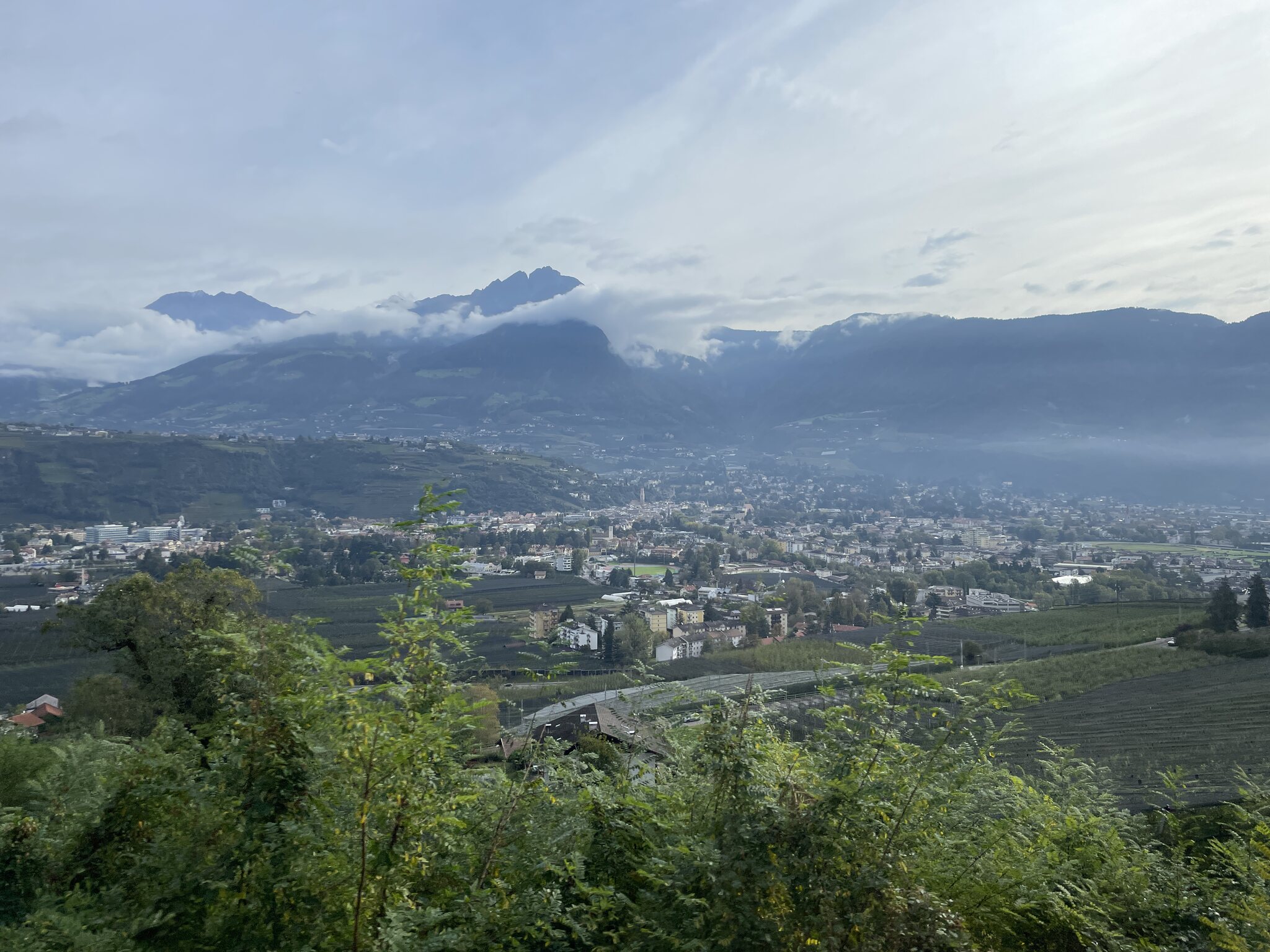 Blick vom Zug zurück auf Meran: