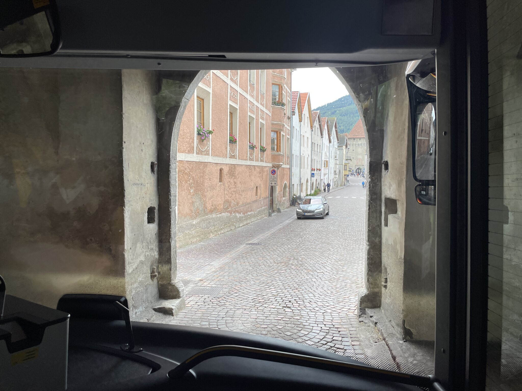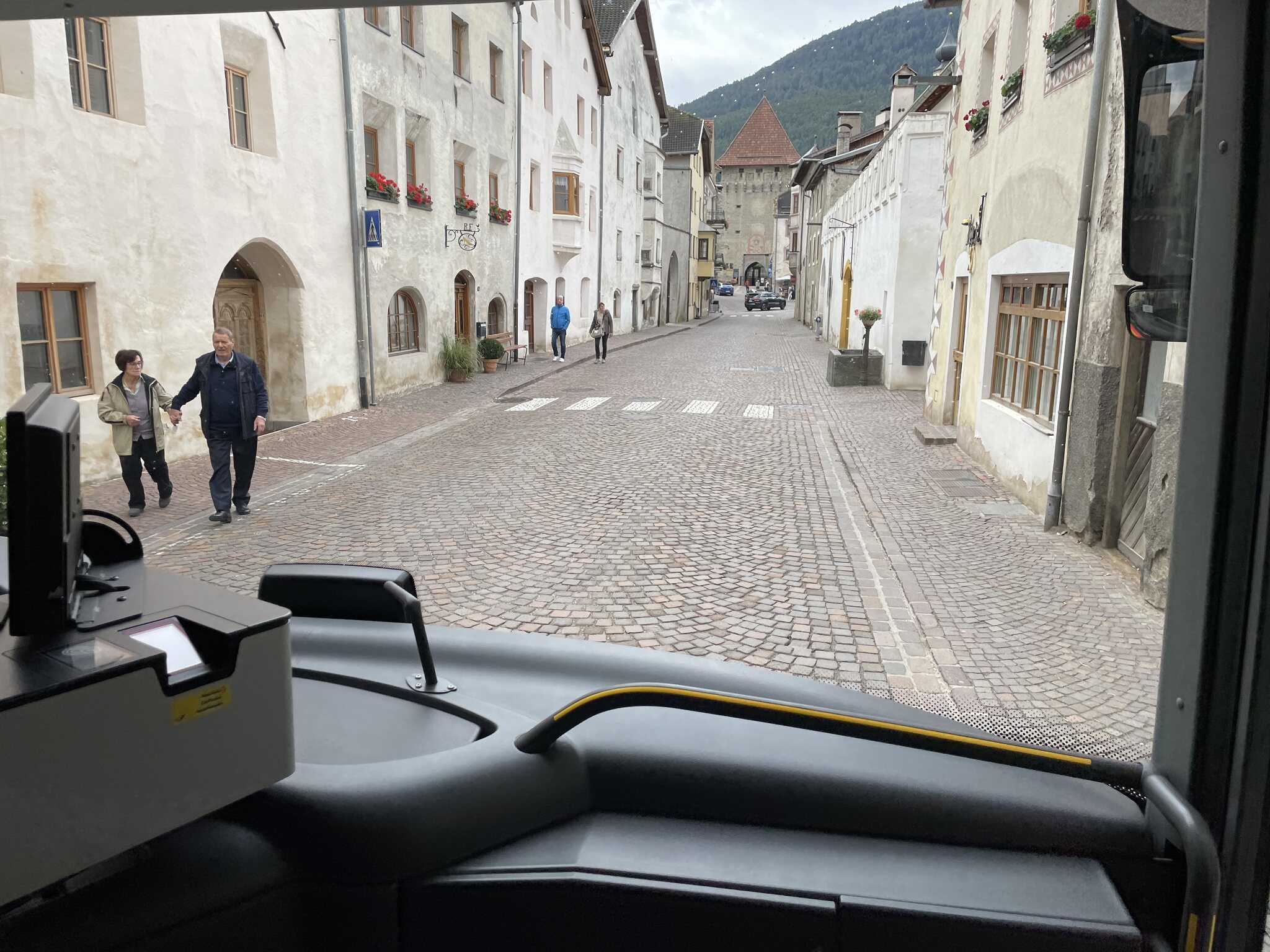 Vor Mals fährt der Bus durch Gluns. Diese Stadt (?) sah sehr interessant aus: Grosse Stadtmauer, enge Stadttore, historisches Zentrum etc.