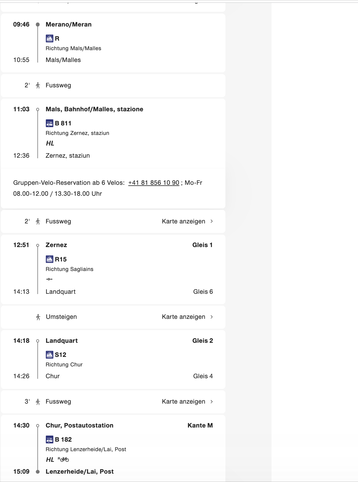- Zernez-Mals-Meran: Spannend, vom rein alpinen Bereich in den mediterran angehauchten Raum