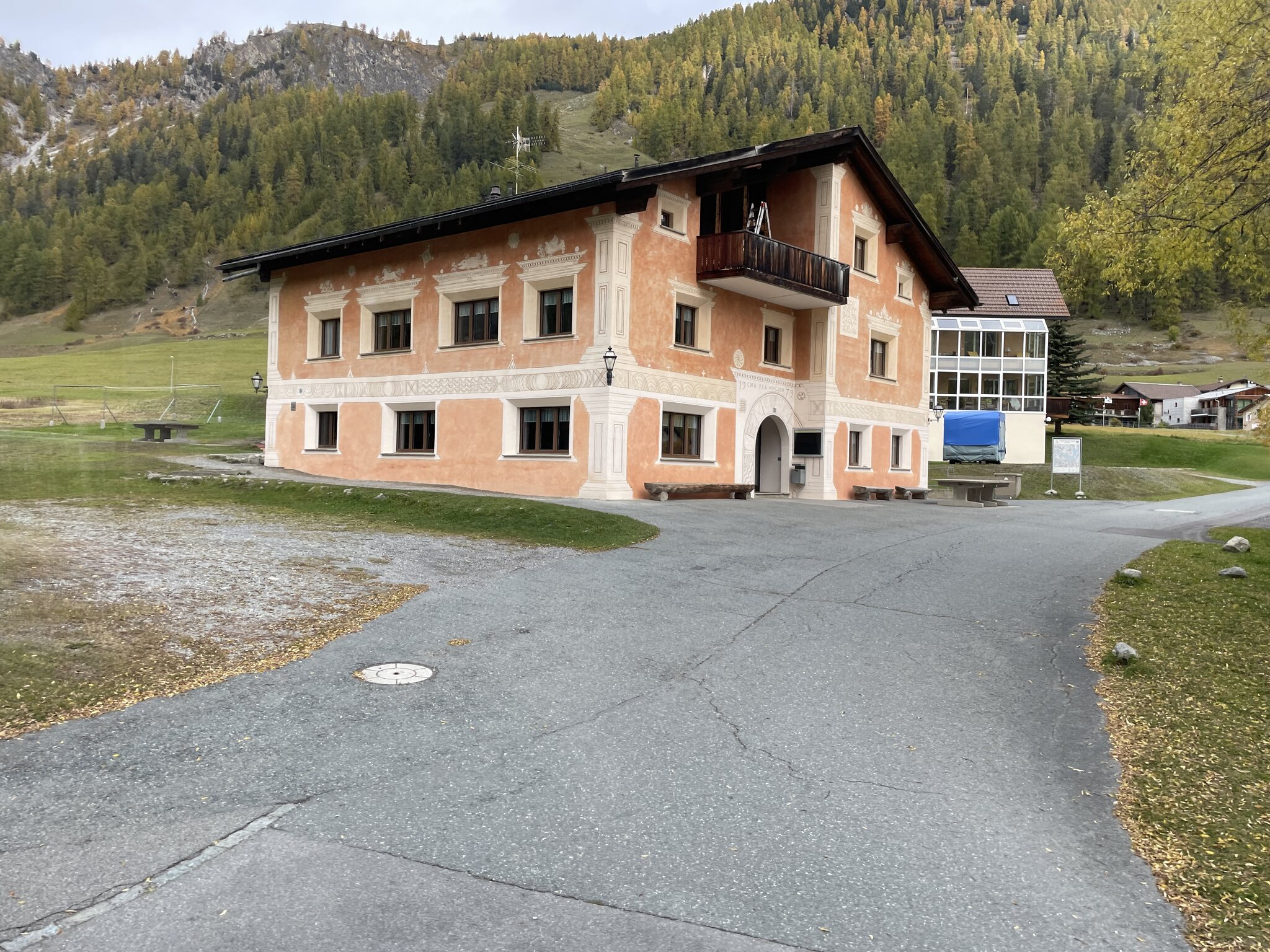 Die Ortsdurchfahrt Müstair ist dank einer Umfahrungsstrasse für den Bus kein Problem: Ganz im Gegensatz zu Santa Maria, wo sich der gesamte Verkehr durch den Ort zwängen muss und es folglich Rückstaus gibt. Bei unserem Aufenthalt in Santa Maria einige Tage zuvor hatte es deutlich weniger Verkehr. Dies war wahrscheinlich dem Wetter und dem Wochentag zuzuschreiben. In diesem Lagerhaus in Tschierv verbrachte ich relativ viel Zeit. Drei mal begleitete ich während meines Studiums eine Schule in einem Wintersportlager. Das Gebiet Minschuns, in welchem wir auf der Piste waren. habe ich in sehr guter Erinnerung. Auf alpinforum gibt von mir zwei Berichte dazu, bei welchen die Bilder mittlerweile aber leider nicht mehr vorhanden sind. Weiterer Verlauf der Ofenpassstrasse: Seit gestern sind wir zurück auf der lenzerheide, wo wir den Rest unserer Ferien verbringen. Ein Fazit der Graubünden-Südtirol-Tour schreibe ich wahrscheinlich während der kommenden Tage.