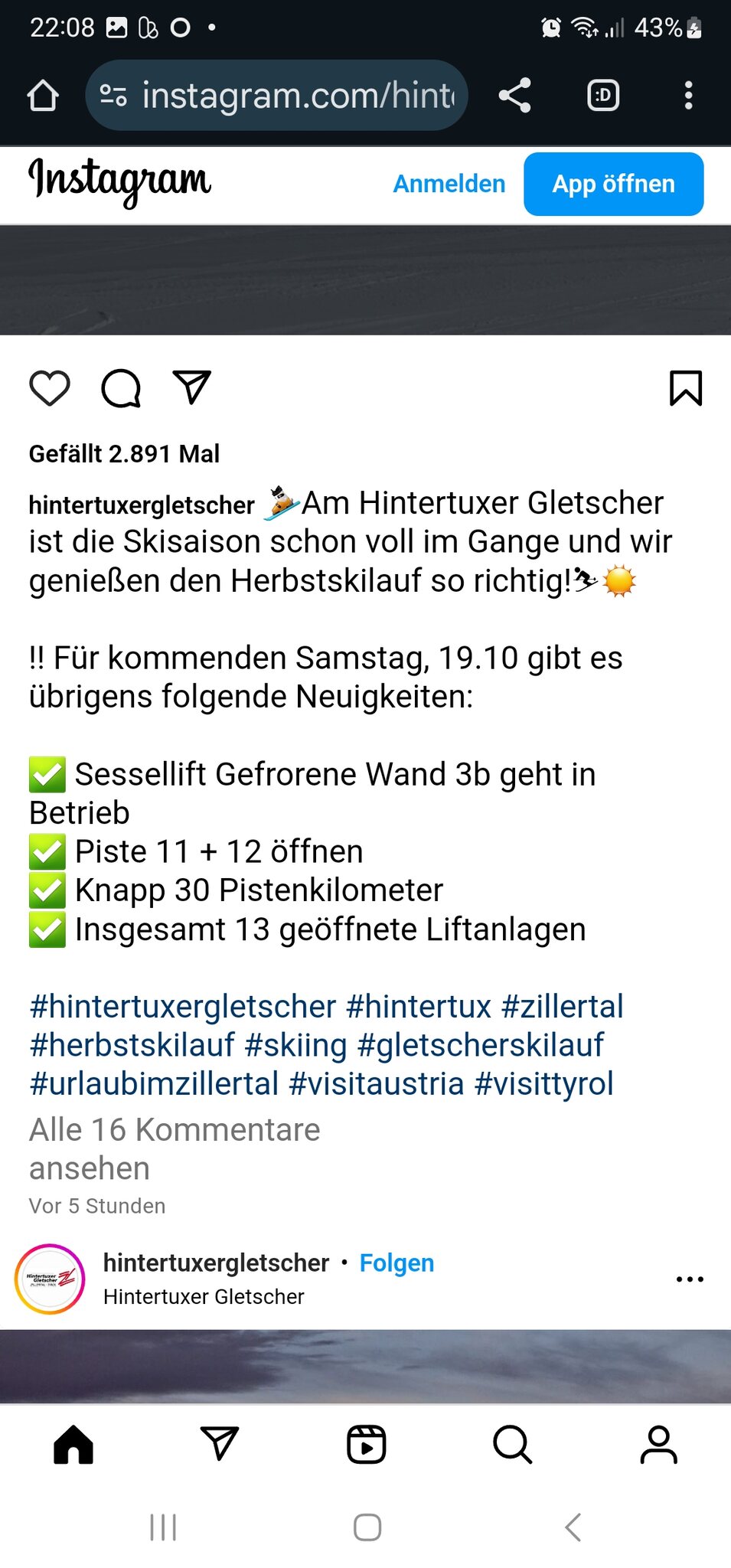 FORZAM hat geschrieben: 19.10.2024, 09:57 Ich glaube nicht …, etwas Ähnliches ist im Stubai passiert, der Gaisskarferner hätte heute eröffnet werden sollen, ist aber trotzdem geschlossen und die Ankündigung wurde von Facebook entfernt …