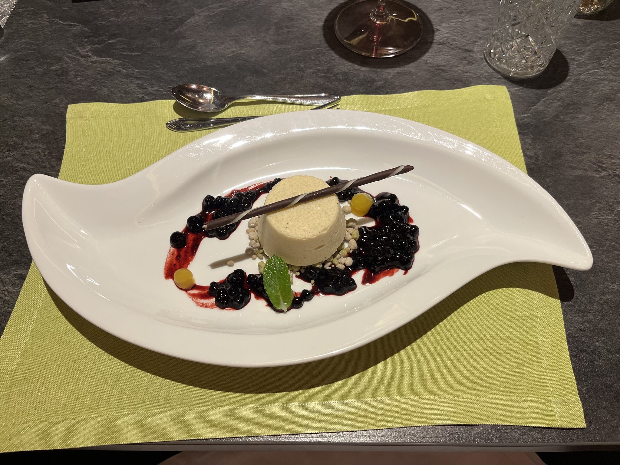 Das heutige Tonkabohnen-Griess-Parfait mit marinierten Heidelbeeren in einem Hotel am Fusse des Pitztaler Gletschers war auch mal wieder ein Genuss!
