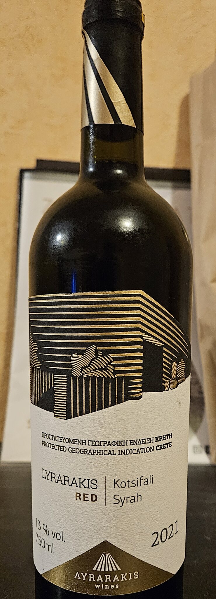 2021 Lyrarakis Red aus der heimischen Rebsorte Kotsifali und Syrah mit 13 Vol%. Mangels Erfahrung verlies ich mich auf die Empfehlung der Verkäuferin im € 13 Segment