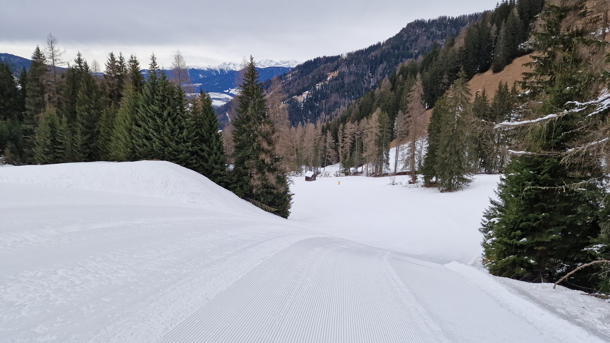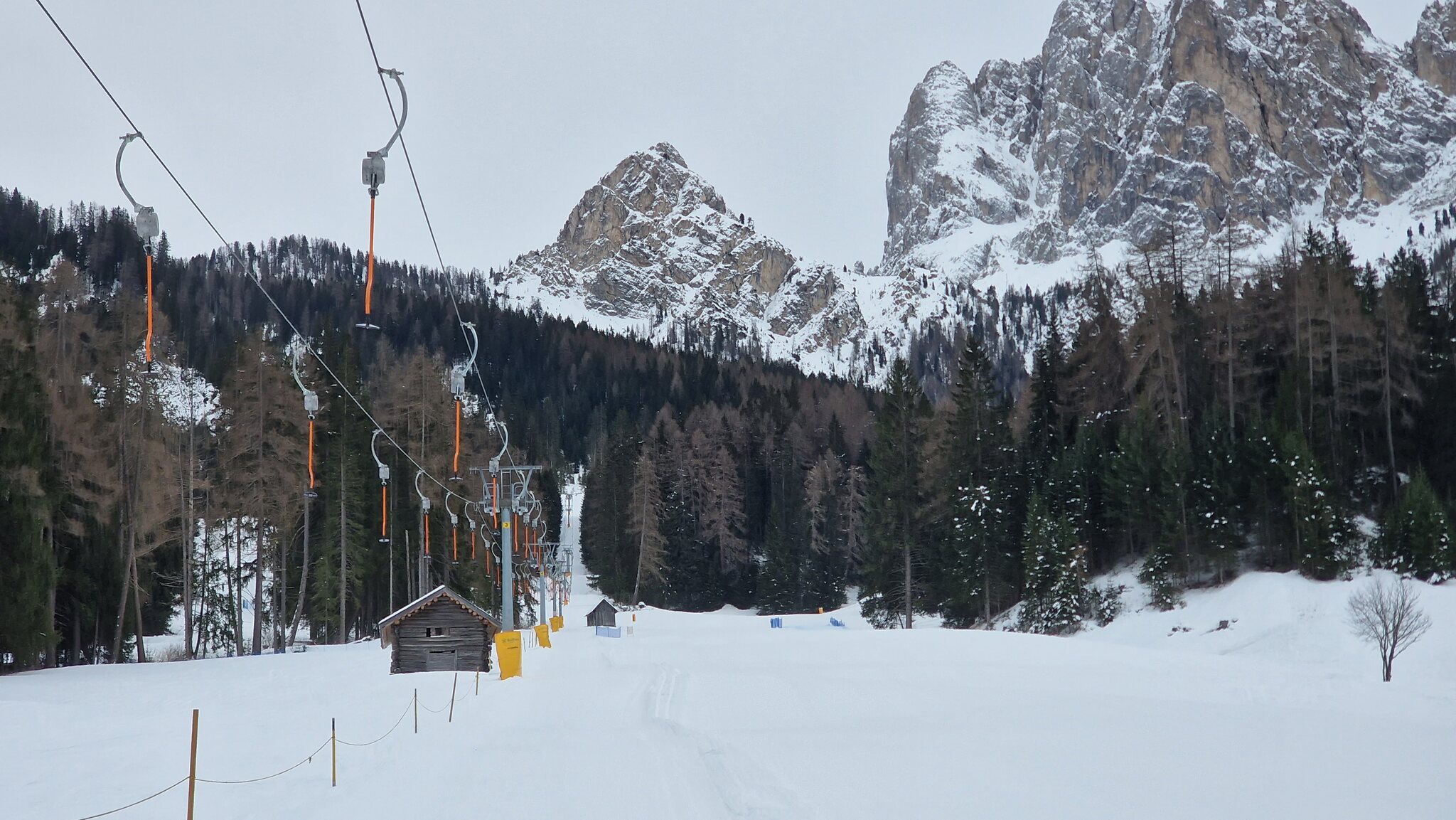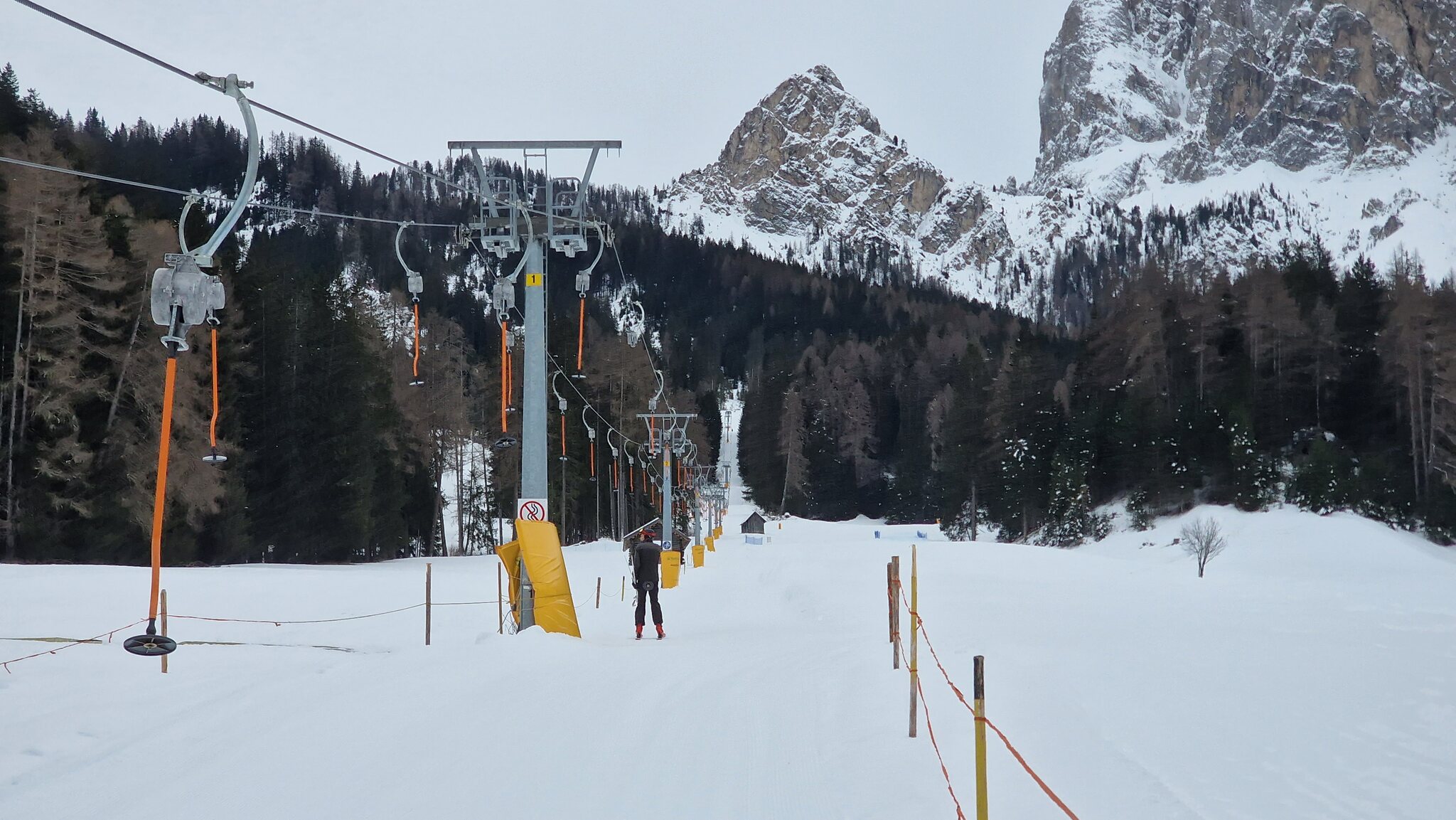 Vielen ist die Region Prags wahrscheinlich durch den Pragser Wildsee bekannt, der sich in den letzten Jahren zu einem Instagram-Hotspot entwickelt hat. Doch nur wenige wissen, dass in dieser Ecke Südtirols auch ein kleines Familienskigebiet mit zwei Skiliften zu finden ist. Die beiden Tellerlifte, der kurze Kameriot und der längere Sonnleiten, erschliessen ein überschaubares Pistenareal. Bei unserer Ankunft an einem frühen Dezembermorgen stehen die Pragser Skilifte noch still – es scheint, als wären wir die ersten und einzigen Gäste zu diesem Zeitpunkt. Nachdem die Skibindungen geklickt haben und wir uns zum Lifteinstieg vorwagen, wird der längere Lift in Betrieb genommen. Zunächst etwas zögerlich, doch nach einem kurzen Moment dreht die Anlage auf das Maximum auf, und die beiden besetzten Teller sausen regelrecht den Hang hinauf. So kommen in kurzer Zeit einige Abfahrten an den beiden längeren Pisten zusammen. Als wir dann die Talstation des kürzeren Tellerlifts ansteuern, um auch diesen auszuprobieren, setzen sich die Rollenbatterien langsam in Bewegung. Auch wenn diese Anlage nicht annähernd so schnell fährt, legen wir hier noch einige Fahrten ein, während der andere Lift bereits wieder stillsteht. Wir bleiben die einzigen Gäste am Berg, was dem Ganzen ein exklusives Gefühl verleiht. Nachdem sich unsere eigenen Spuren auf den perfekt präparierten Pisten mehrfach gekreuzt haben, verabschieden wir uns von diesem kleinen aber feinen Skigebiet. Kaum an der Heckklappe des Autos angekommen, verstummt auch das Surren der Lifte und es wird wieder still an den Pragser Skiliften.