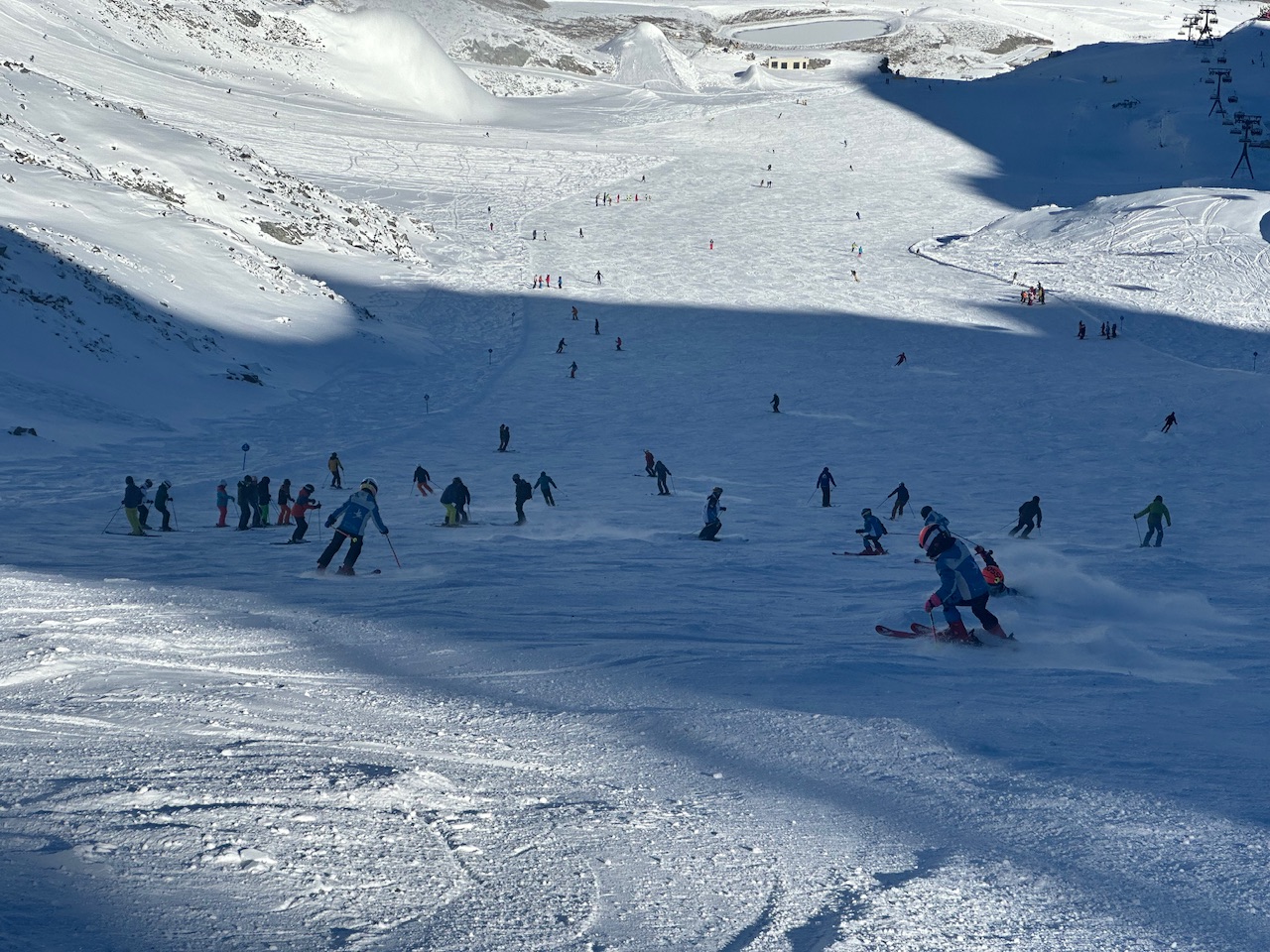 Familienurlaub im Stubaital, waren jetzt 2mal auf dem Gletscher. Das Gebiet laut Homepage jeweils 60% ausgelastet. Geht also noch, auch wenn ich meine von der Menge auf gewissen Pisten bräuchte es wirklich nicht noch mehr. Schneequalität bleibt dank der Höhe den ganzen Tag gut, kein Sulz. Die steileren Stücke auf den blauen Autobahnen haben am Nachmittag natürlich viele Haufen.