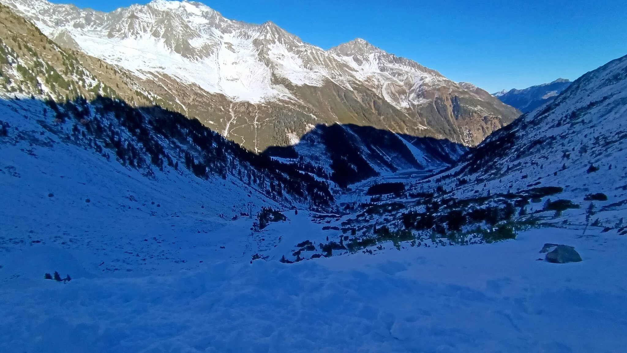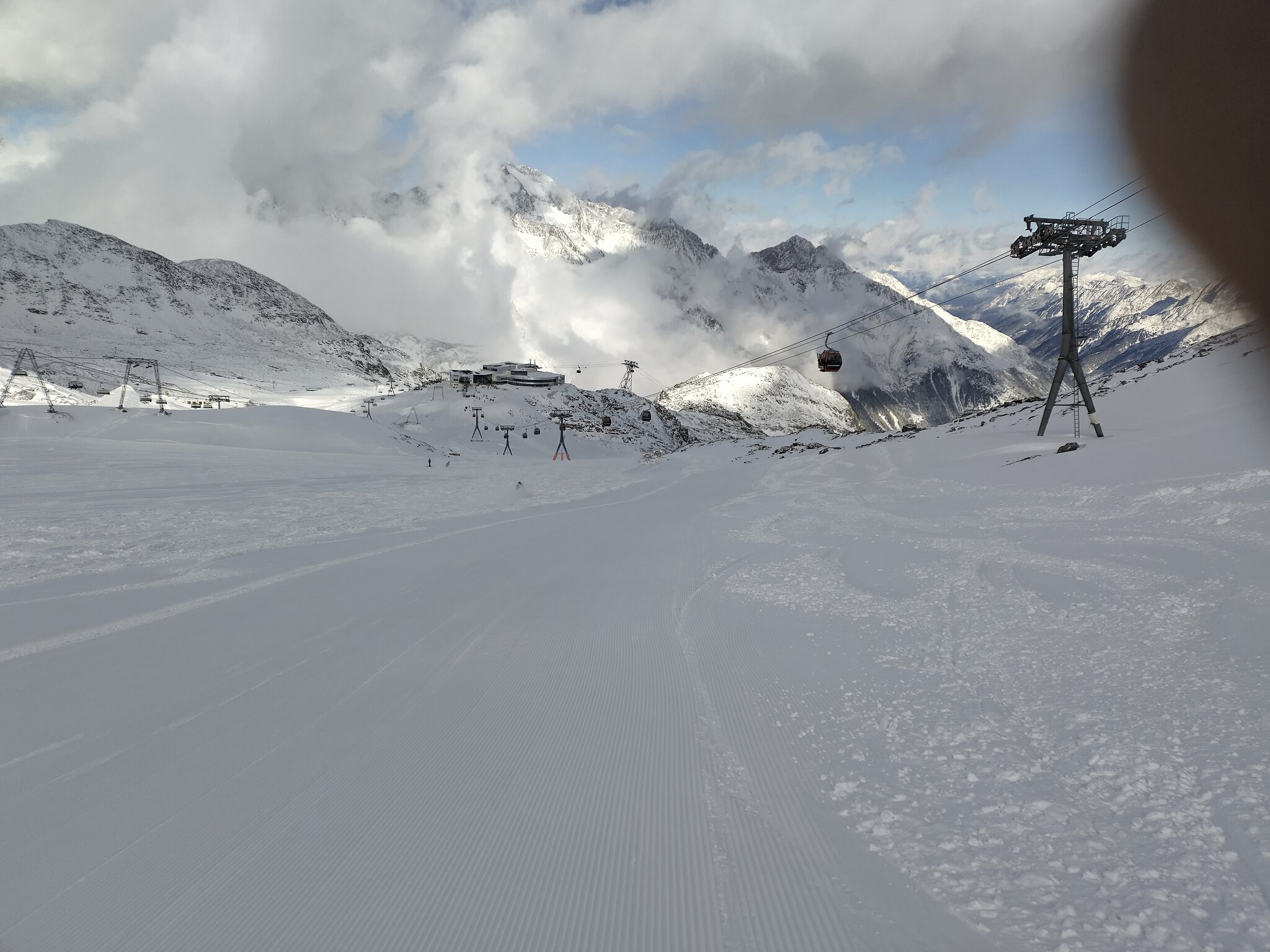 Lichtblicke waren heute für mich der rechte Daunferner piste von unten gesehen, das Testival und das Ausprobieren des Atomic Q9, der viel mehr Grip bietet als meine üblichen Skier.