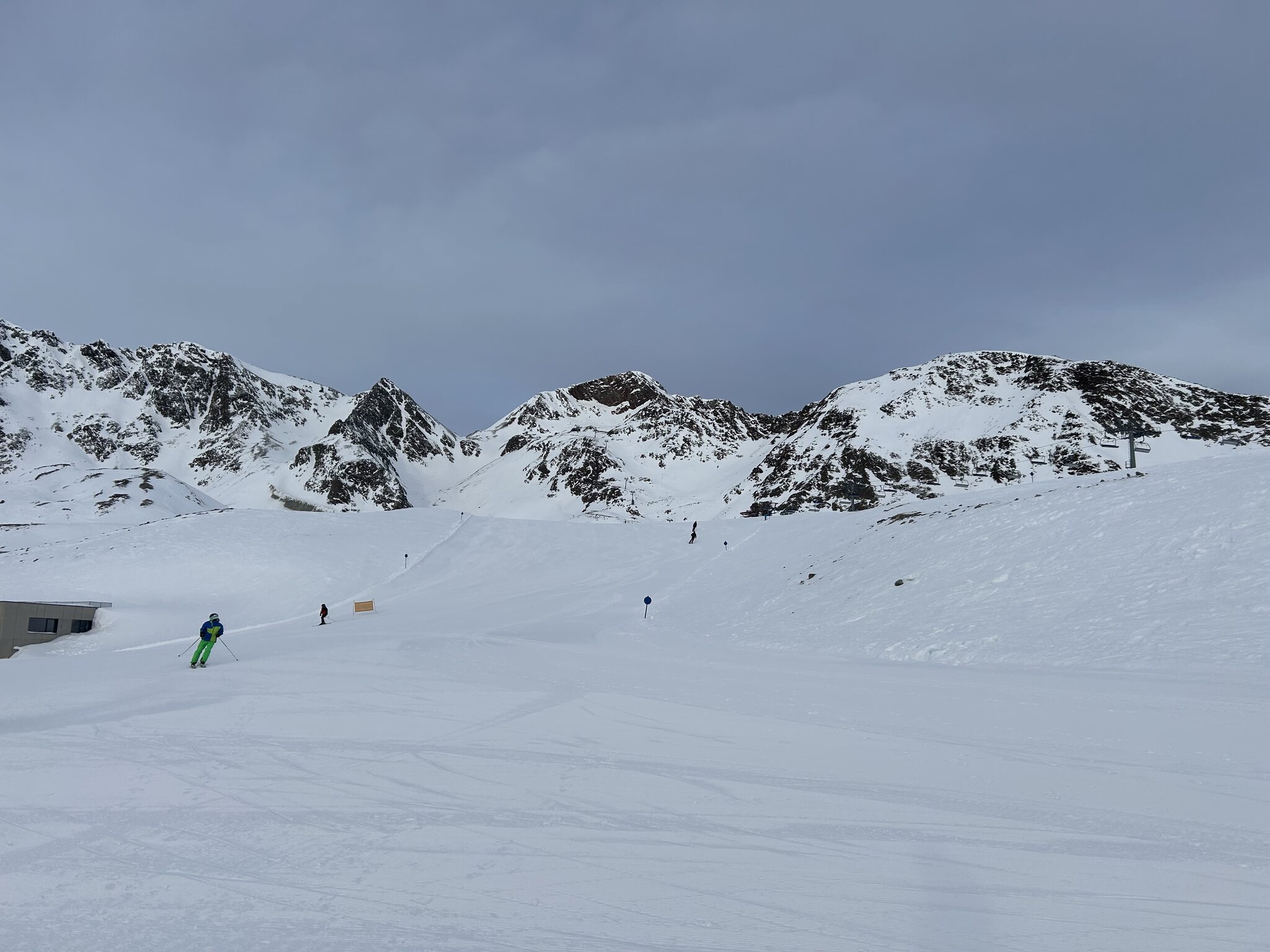 Läuft nicht rund hier. Immerhin die Sonne ist dawir fahren trotzdem woanders hin. Haben quasi nur blaue Pisten offen, das ist langweilig nach 2-3 h