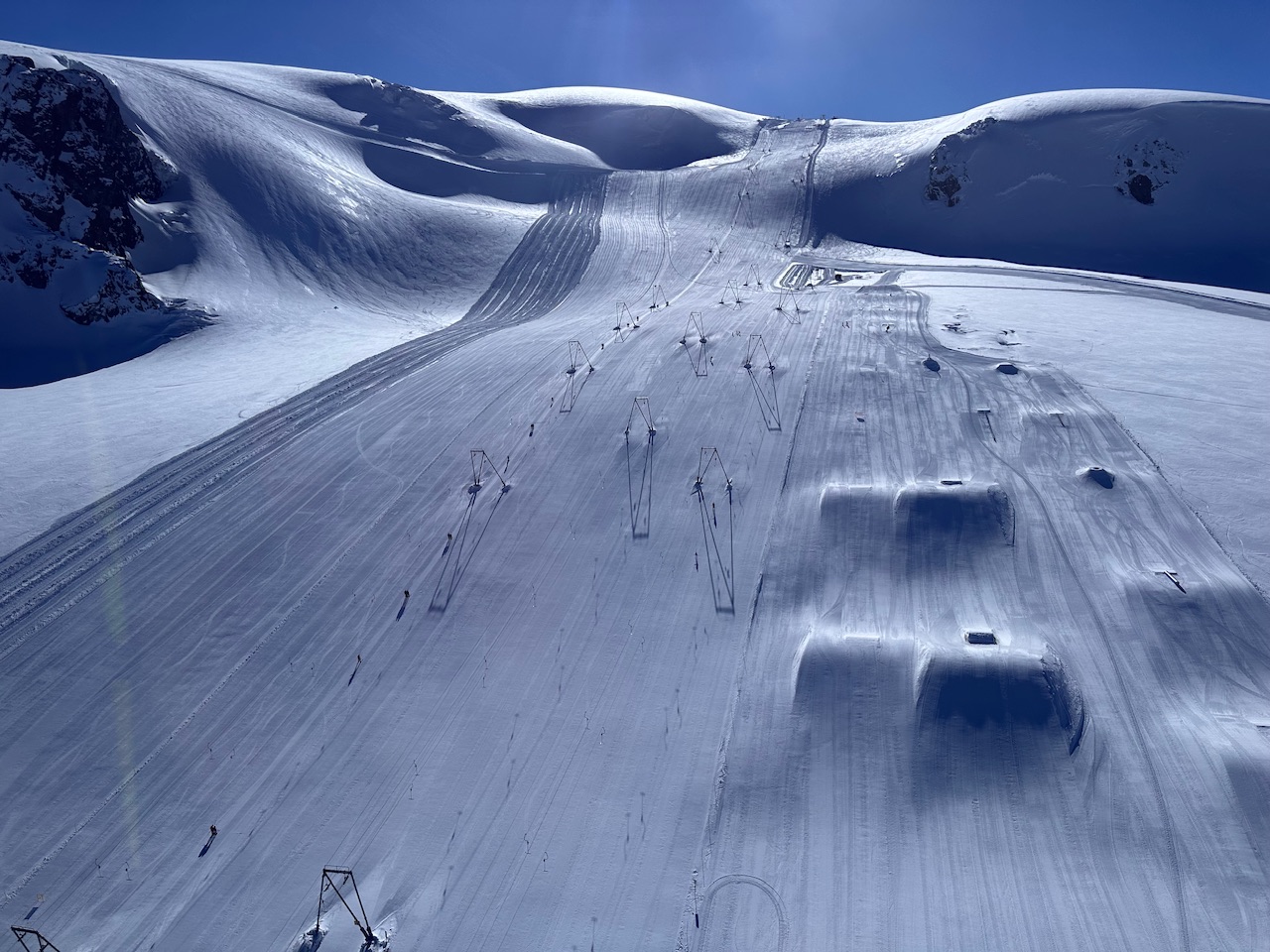 Der Hang in Sölden schmilzt nicht mehr und zu steil ist er nach den Anpassungen auch nicht mehr. Und vor allem ist der Rettenbachgletscher wesentlich weniger wetteranfällig als die Strecke am Plateau Rosa.