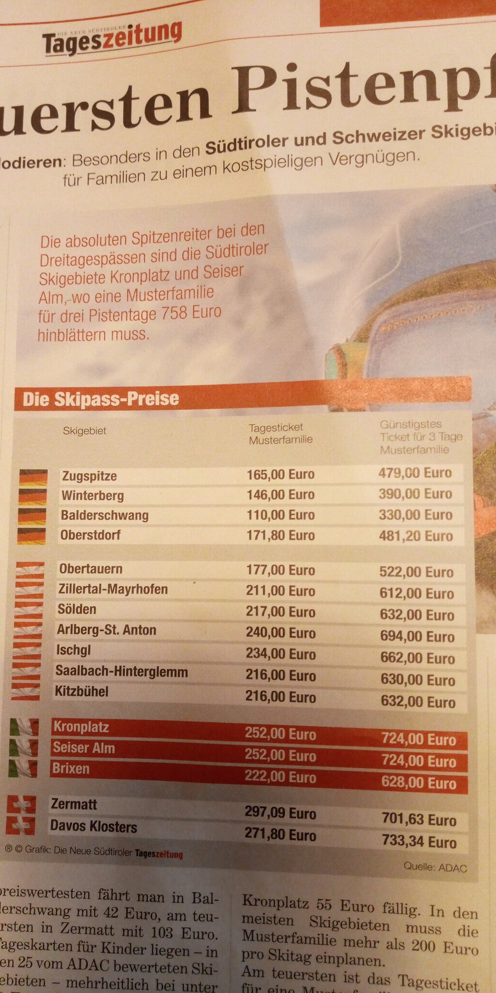 Die Preise allein sagen mir auch nichts – das Preis-Leistungs-Verhältnis ist viel wichtiger. Für mich stehen Oberstdorf und die Zugspitze dabei ganz unten auf der Liste.