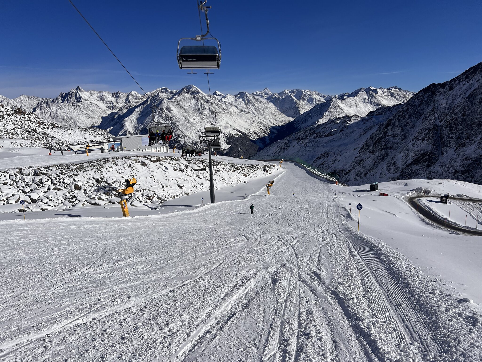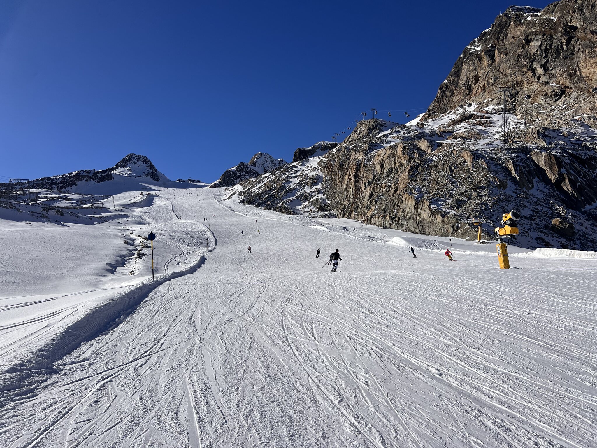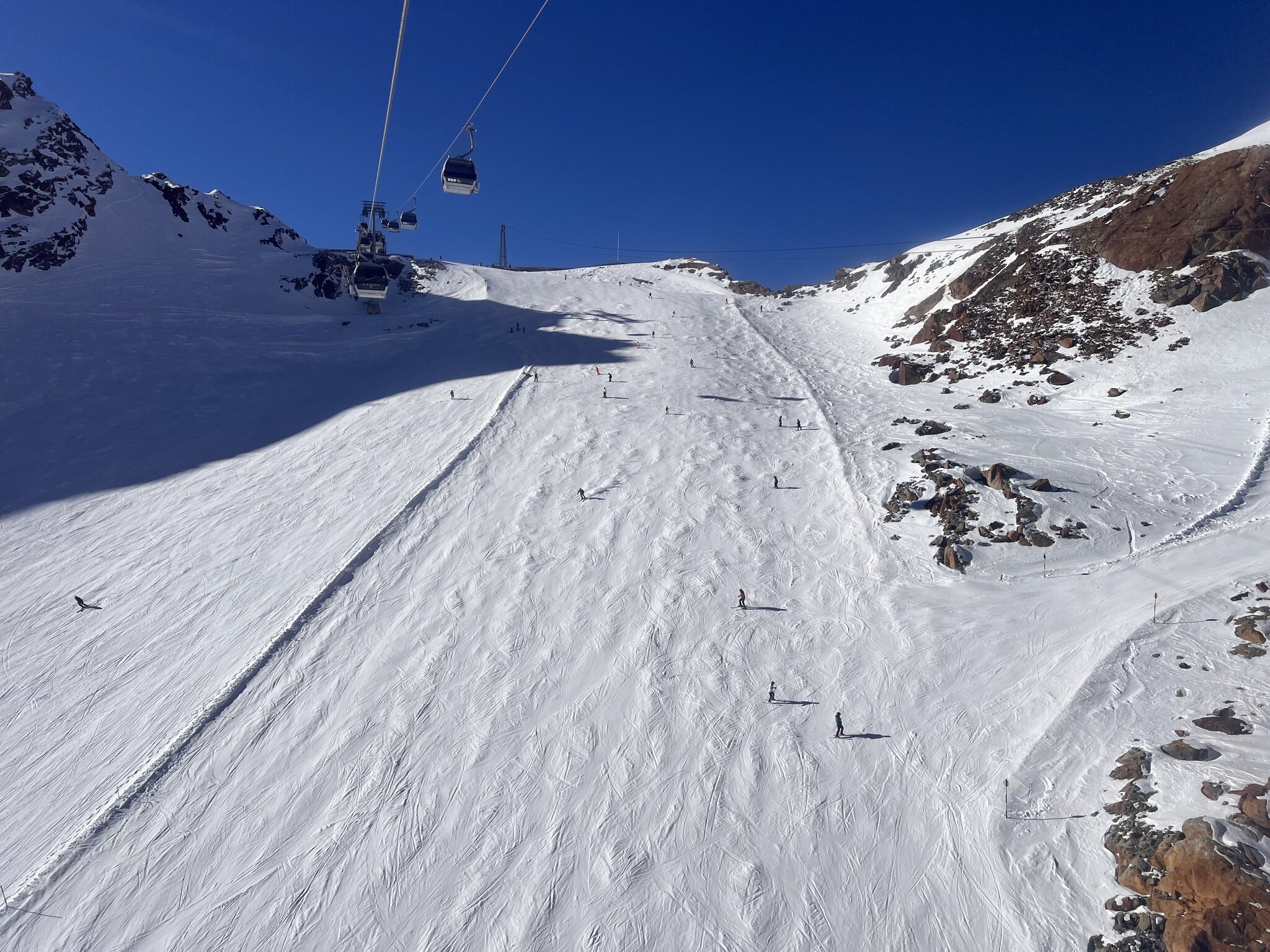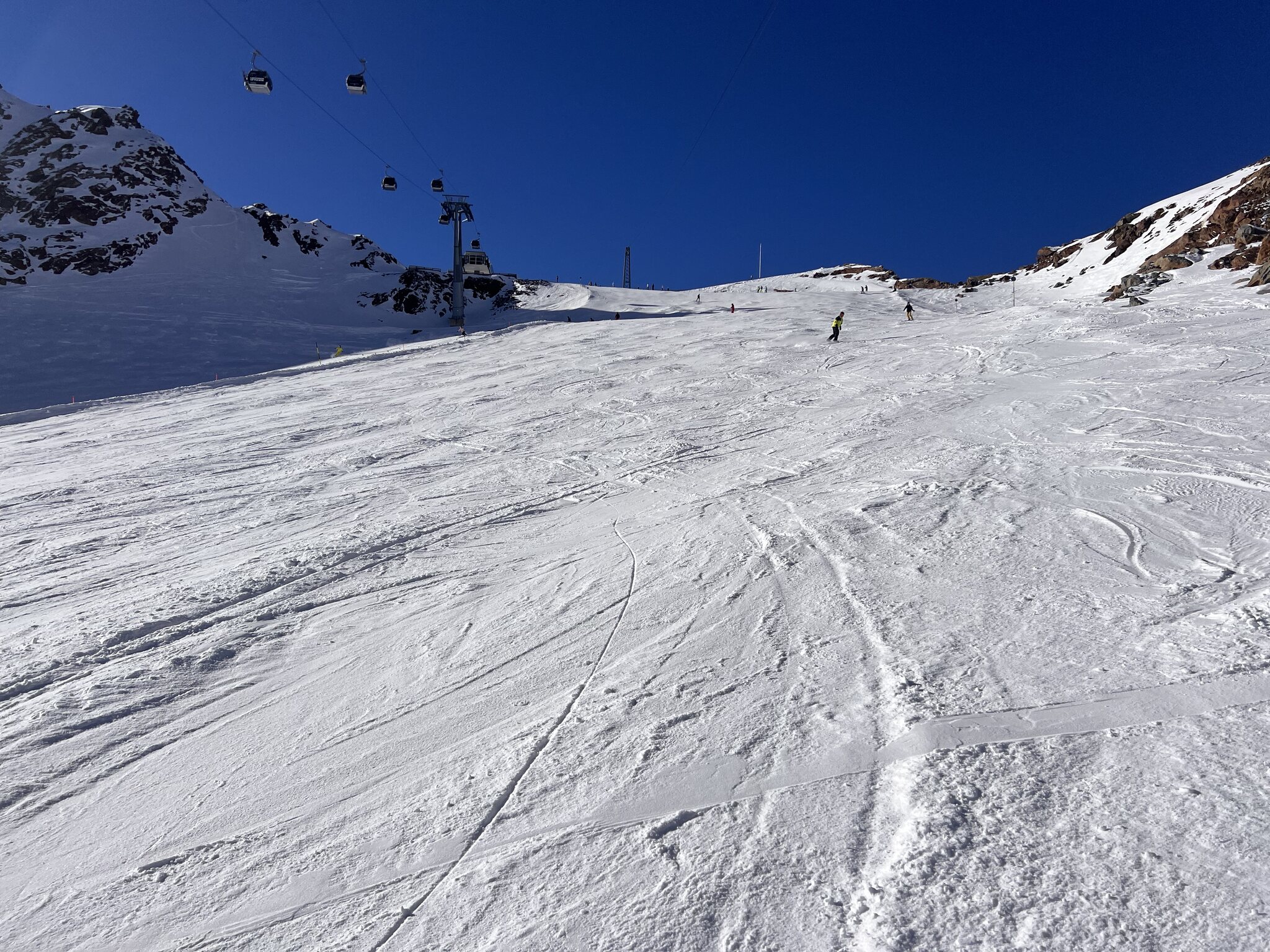 Beste Piste war demnach die blaue 24 beim 4SK Einzeiger, da hatte es bis 13 Uhr kaum Leute, weil alle weiter zum Gletscher sind
