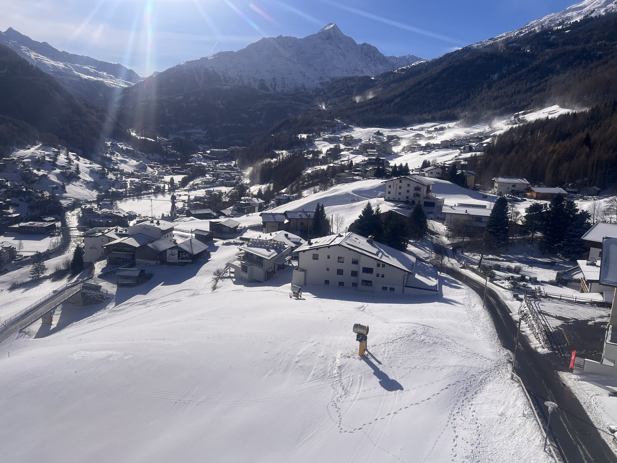Eine gegen den Boden gerichtete Kanone läuft am Gigijoch. Da war schon am Tag ein grösserer Haufen. Beim aktuellen Wind macht es wohl wenig Sinn zu beschneien. Der untere Teil der Abfahrt ist noch ziemlich braun.Stäntn hat geschrieben: 22.11.2024, 17:52 Aktuell sieht man bei -5 grad im Tal trotzdem keine Kanonen laufen, nur oben oberhalb Mittelstation brennen Lichter