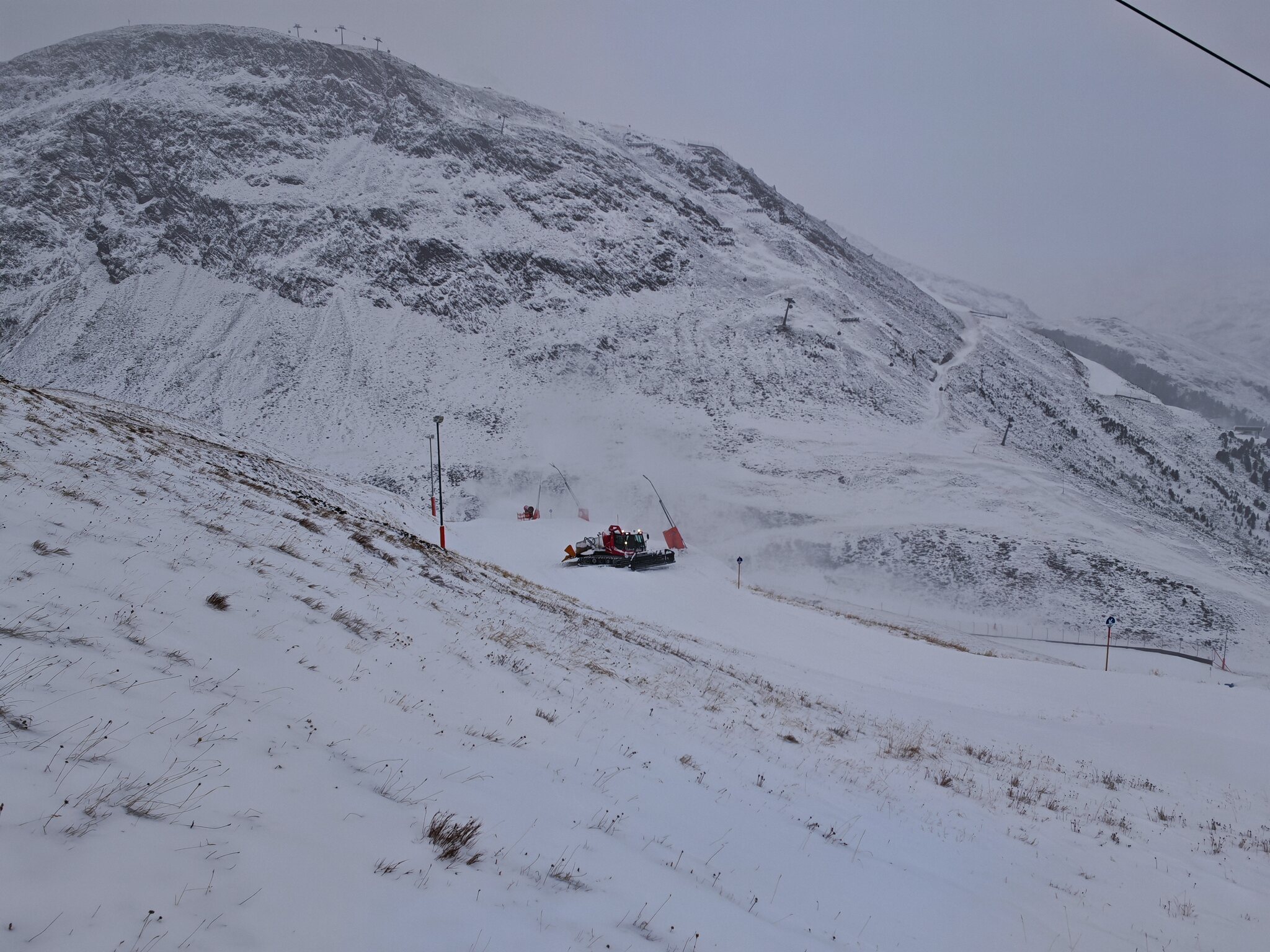 Leider wurde es nichts mit der Öffnung. Die Pistenmarkierungen wurden zwar am Morgen ausgebracht, aber geöffnet wurde noch nicht.