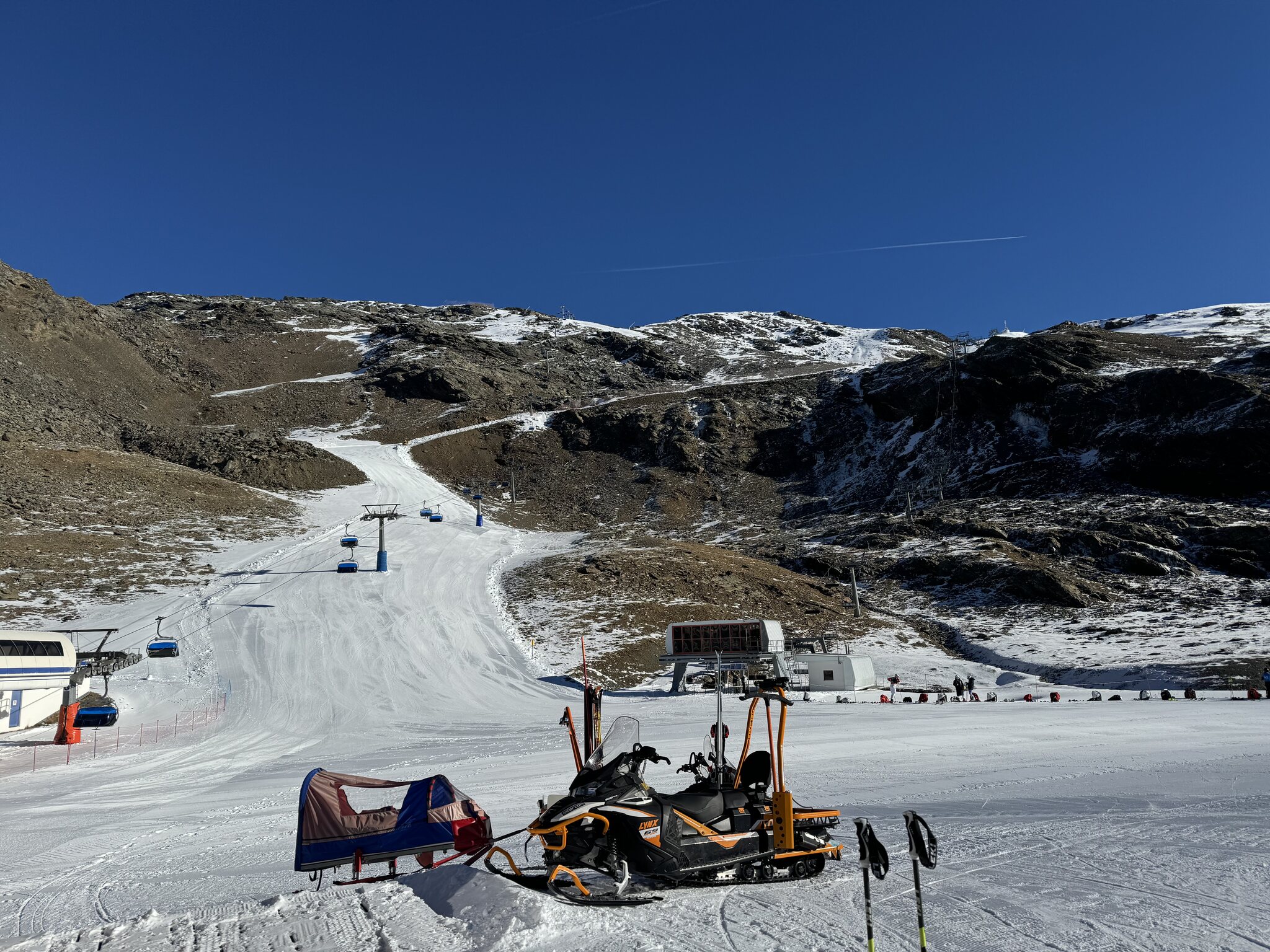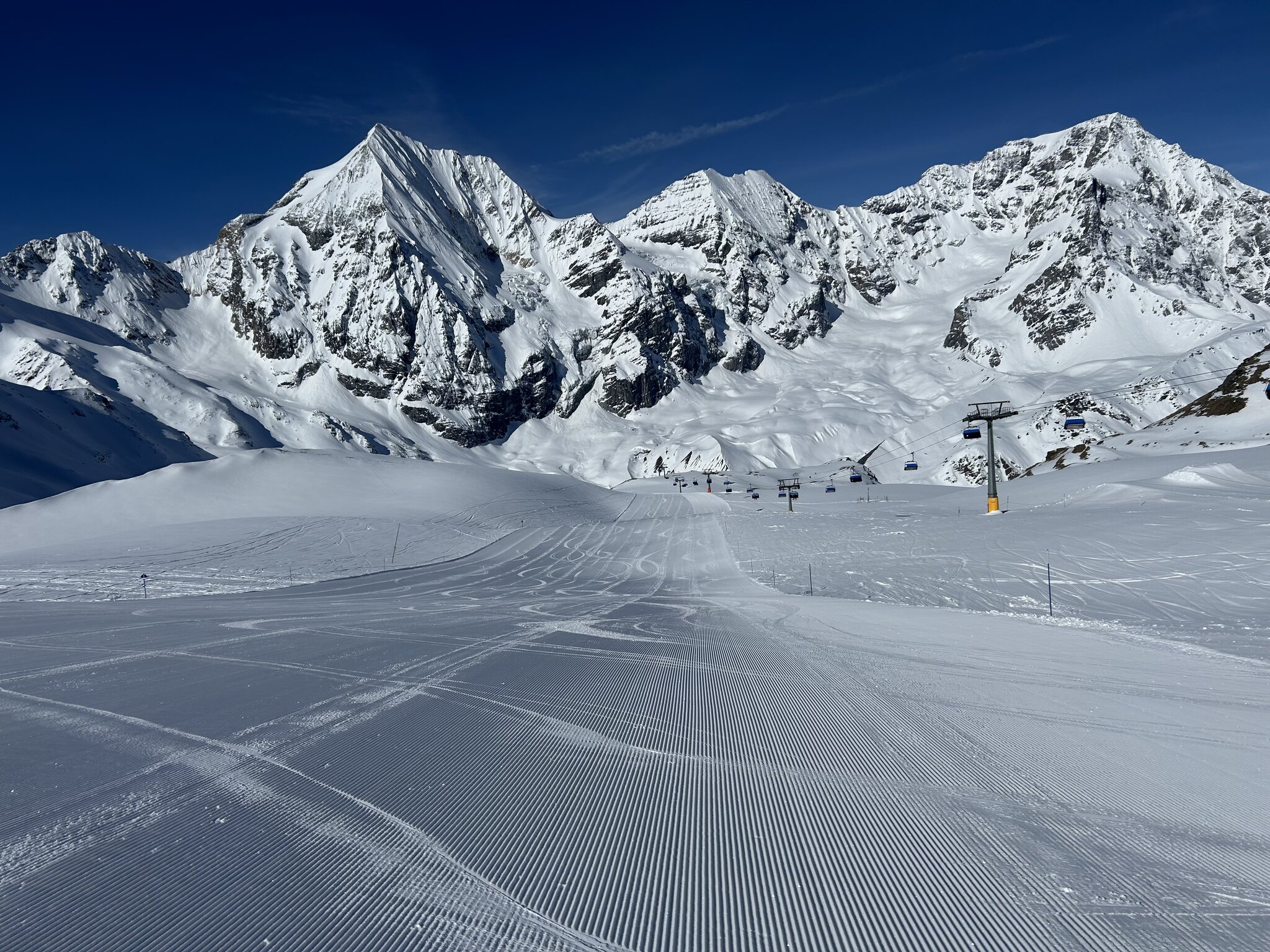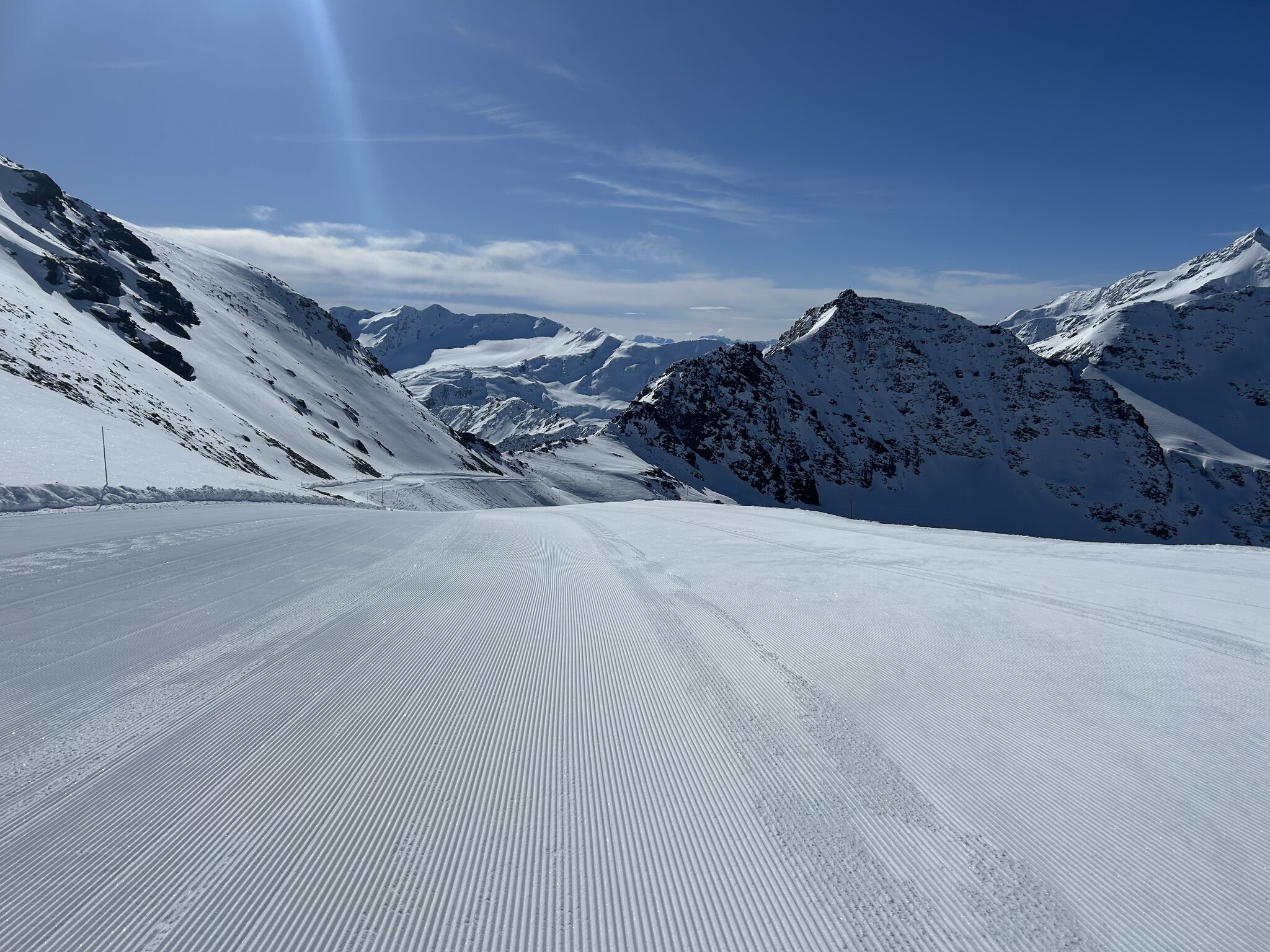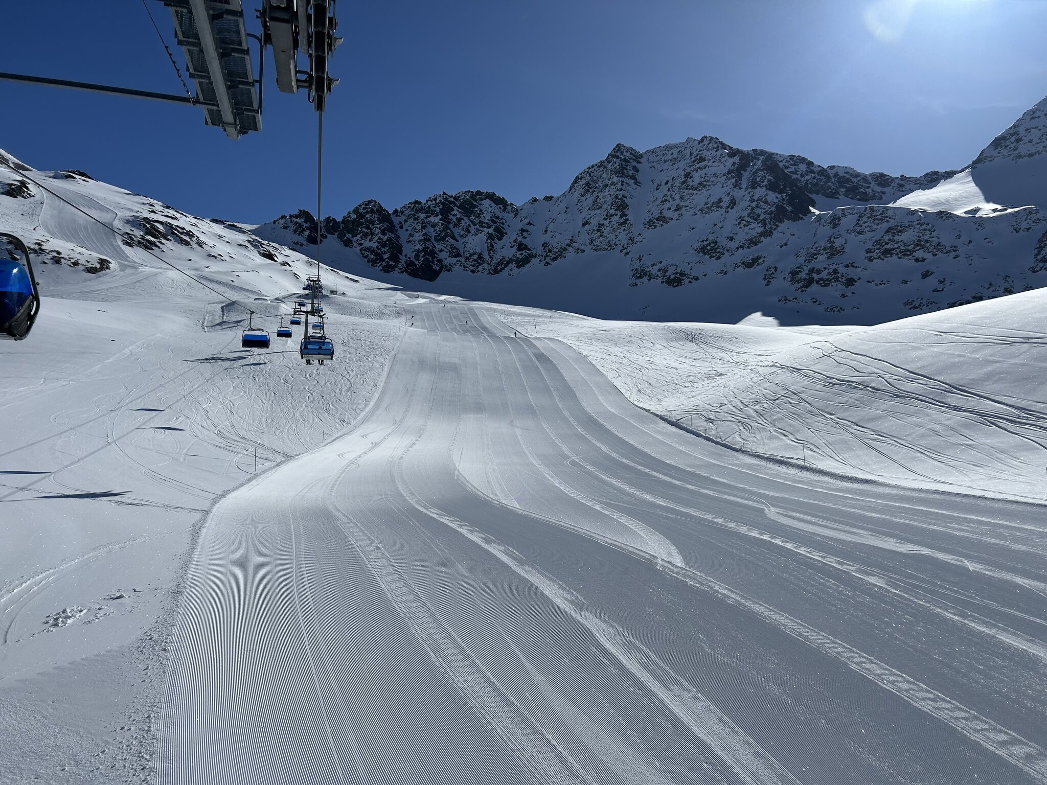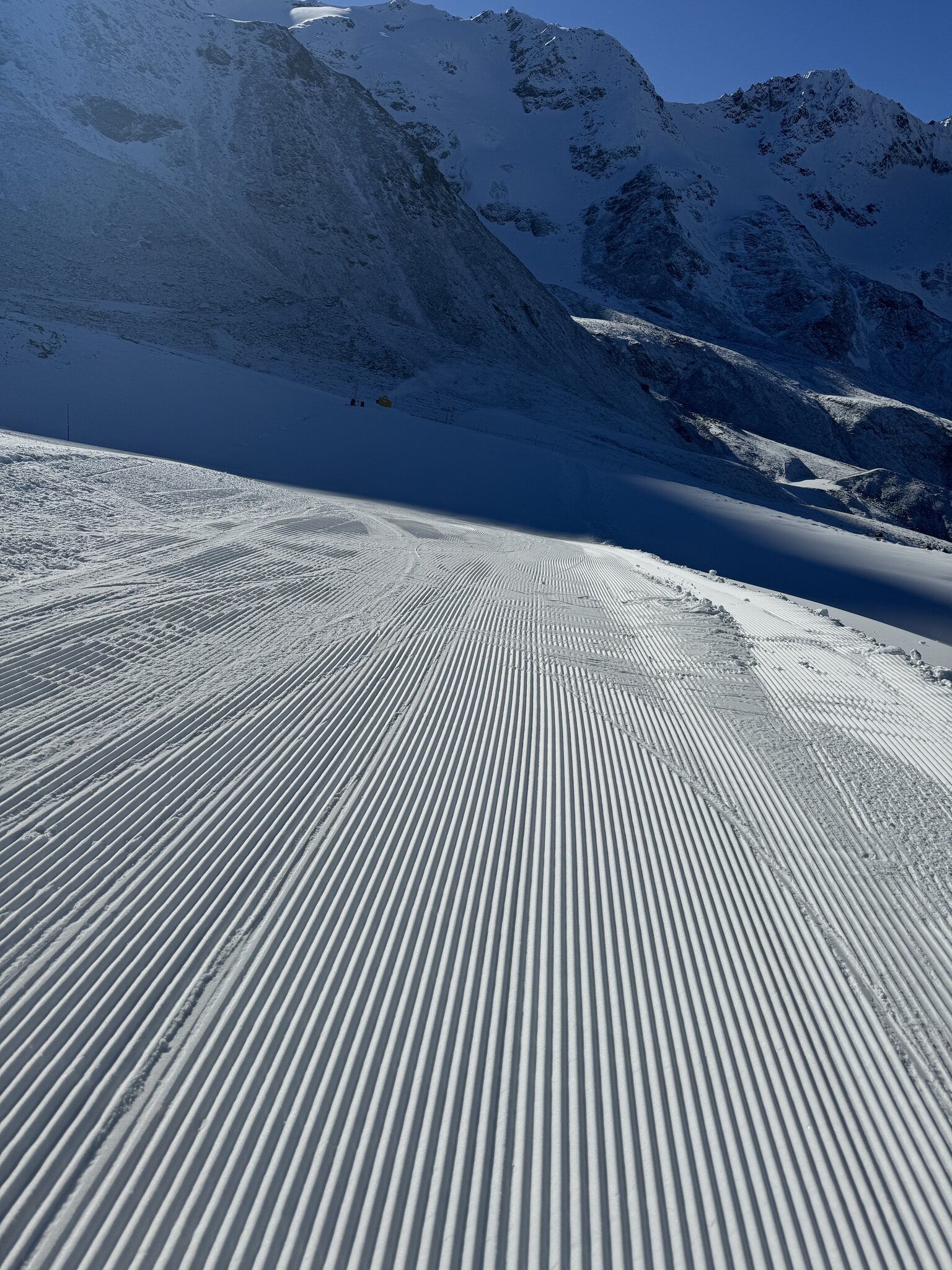 Heute die Ruhe vor dem morgigen Sturm in Sulden. Die Pisten sind grandios, trotz 100% Kunstschnee schön griffig und kaum verfahren. Bis auf 1/2 Skiclubs hat es kaum Menschen. Freie Pisten mit Sonne, toller Saisonstart!