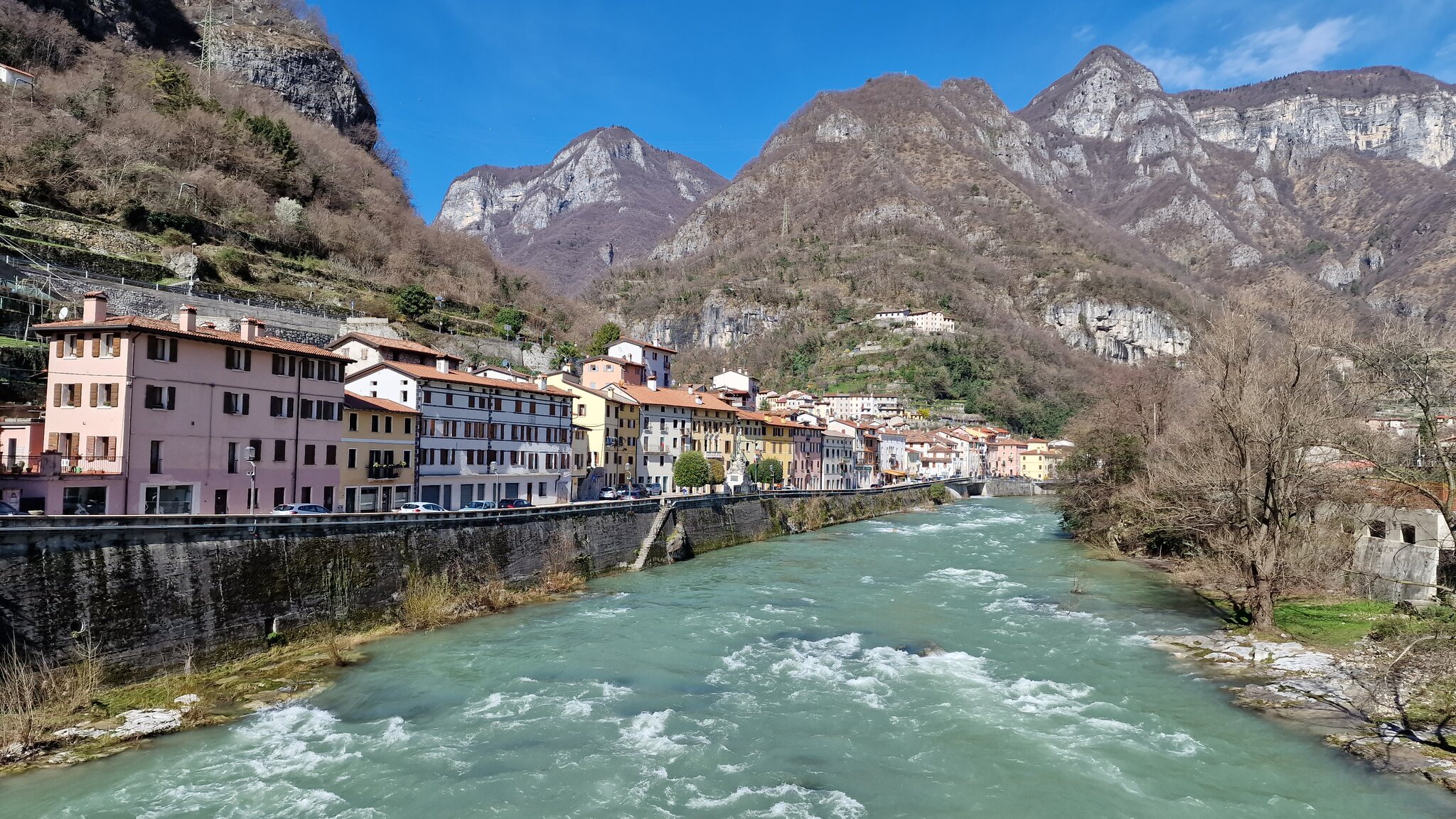 Der Ort Valstagna vermittelt kaum Winterstimmung, da die Gemeinde nur 150 Meter über dem Meeresspiegel liegt. Links führt eine schmale Strasse steil hinauf auf die Hochebene von Asiago.