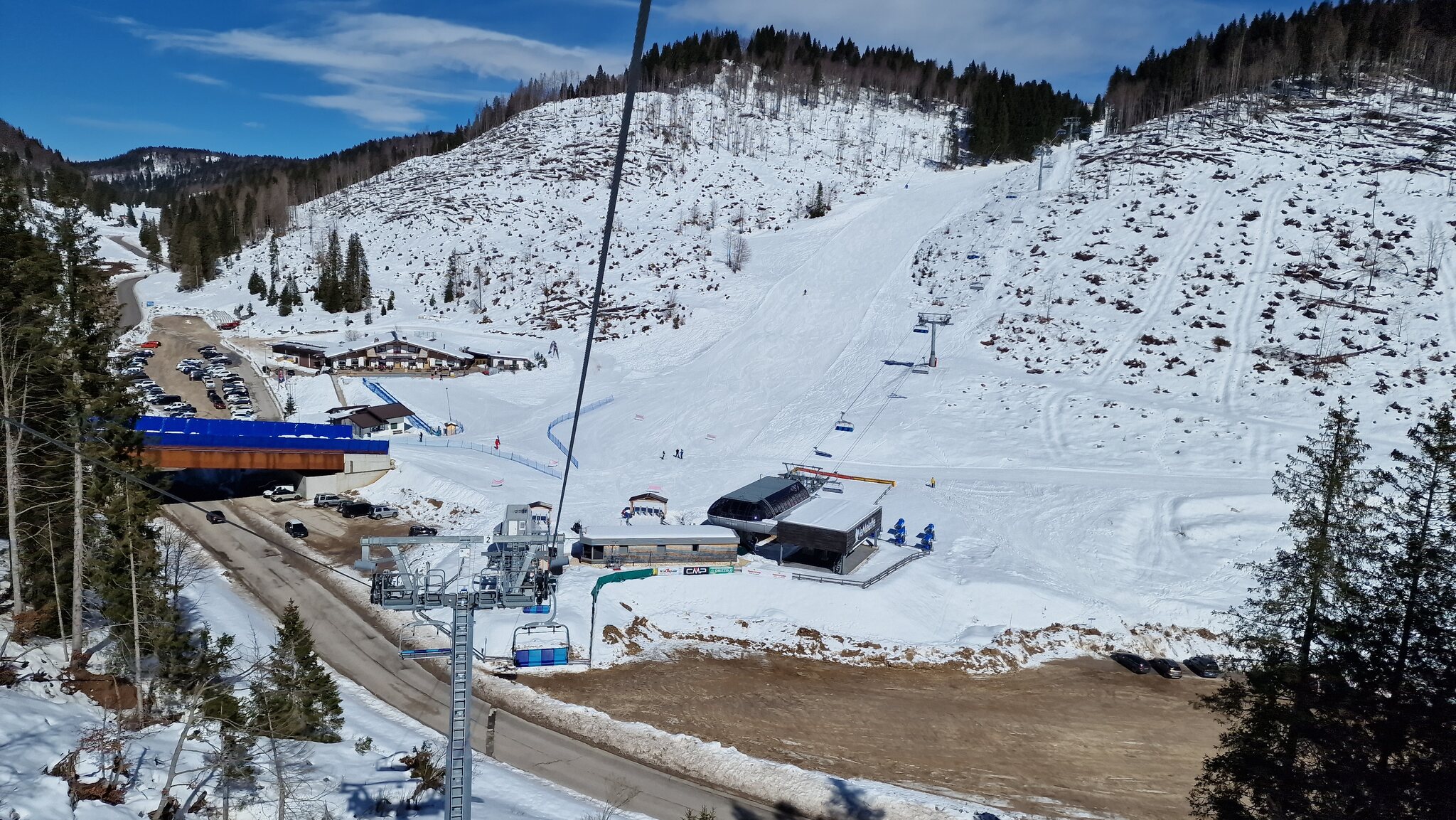 Das Skigebiet leMelette befindet sich in der Region Asiago. Über eine gut ausgebaute Strasse gelangt man von der Ortschaft Gallio aus in wenigen Minuten dorthin. Bei unserem Besuch lag bis kurz vor der Talstation kaum Schnee, was Zweifel daran aufkommen liess, ob hier überhaupt Skibetrieb möglich wäre. Doch direkt am Talstationsbereich, wo eine mächtige Skibrücke die Strasse überquert, sah es dann doch schon etwas winterlicher aus.