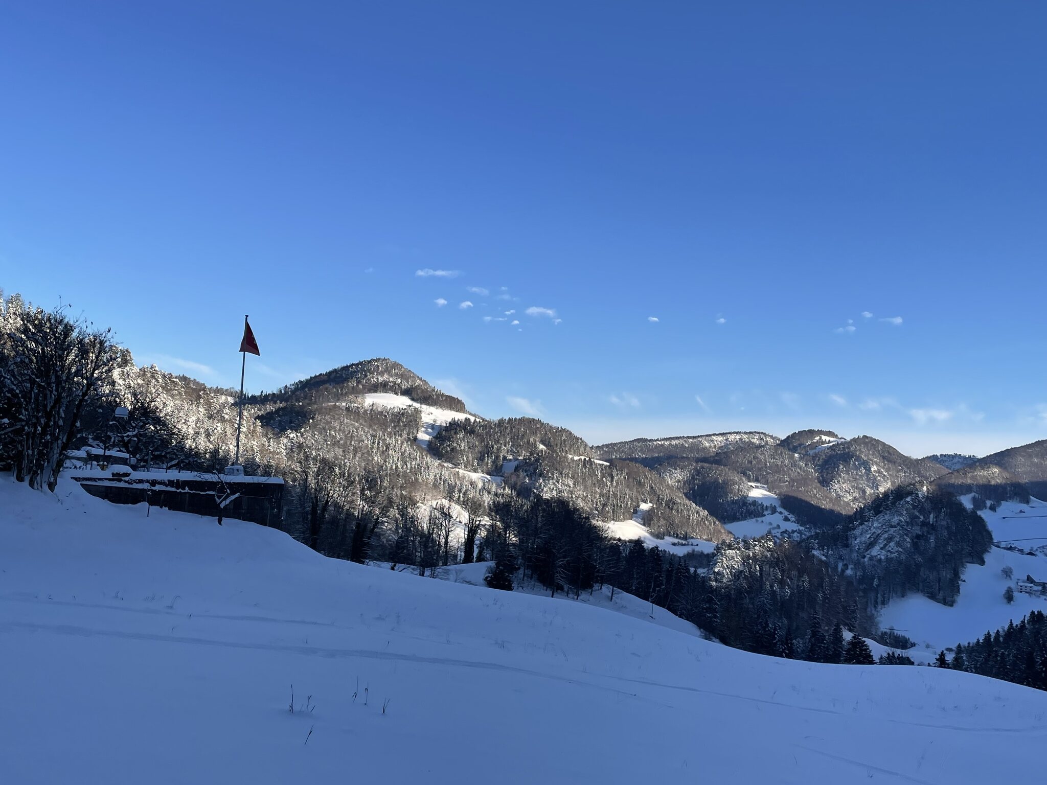 Heute auf der Hohen Winde bei kalten Temperaturen und verhältnismässig viel Schnee.
