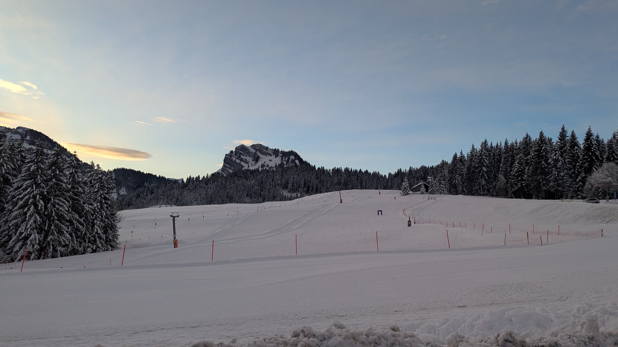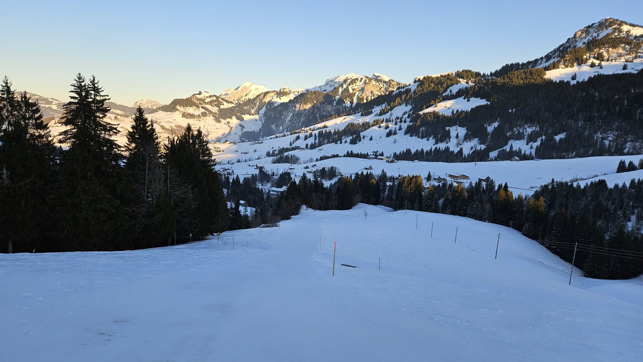 Die Anfahrt ging heute über den Sattelberg Pass um wieder einen weiteren Schweizer Pass mitnehmen zu können. Gab ein tolles Sonnenaufgangs Panorama oben und oben gibt es auch einen kurzen Schlepplift neben dem Pass Restaurant.
