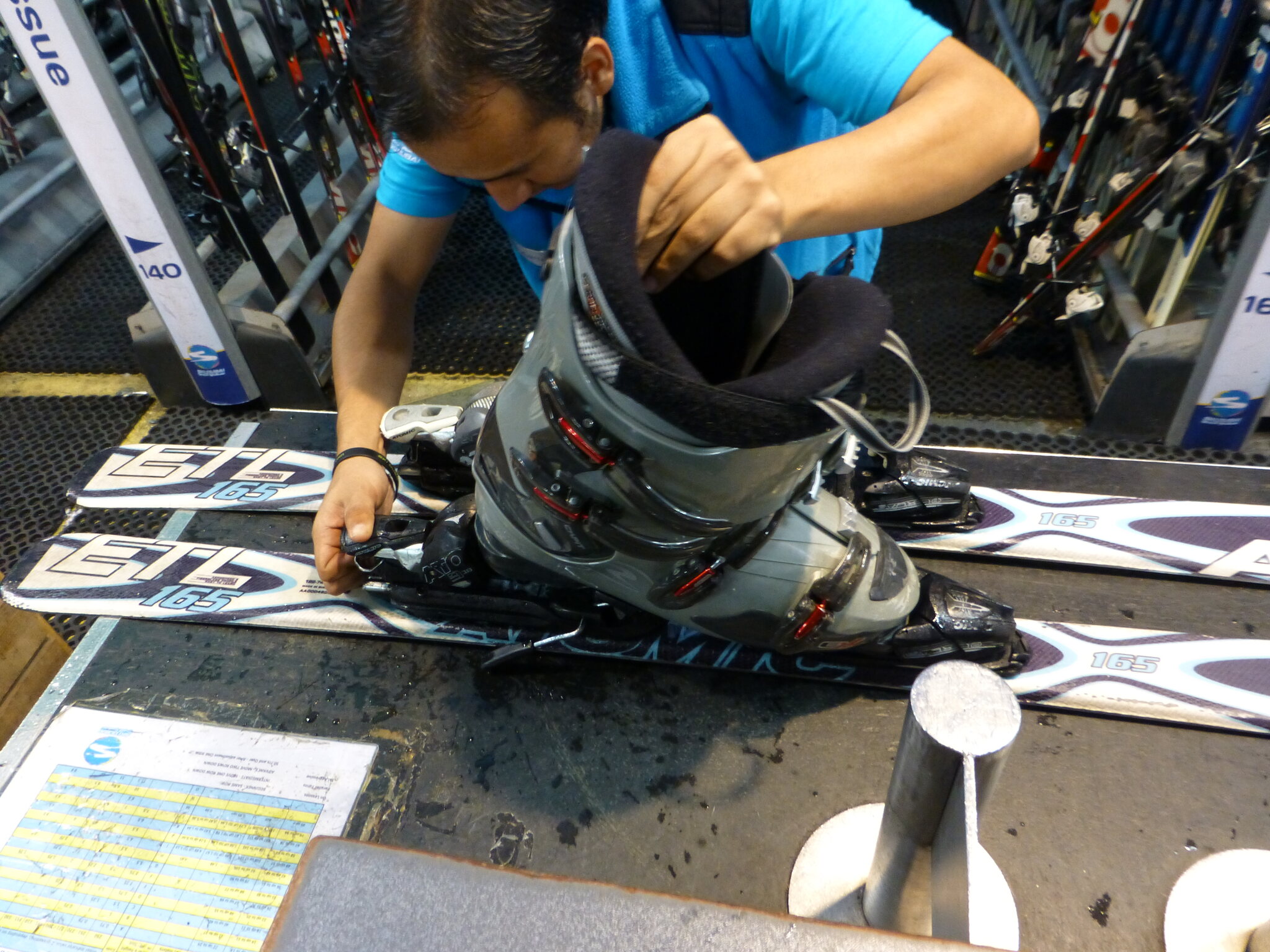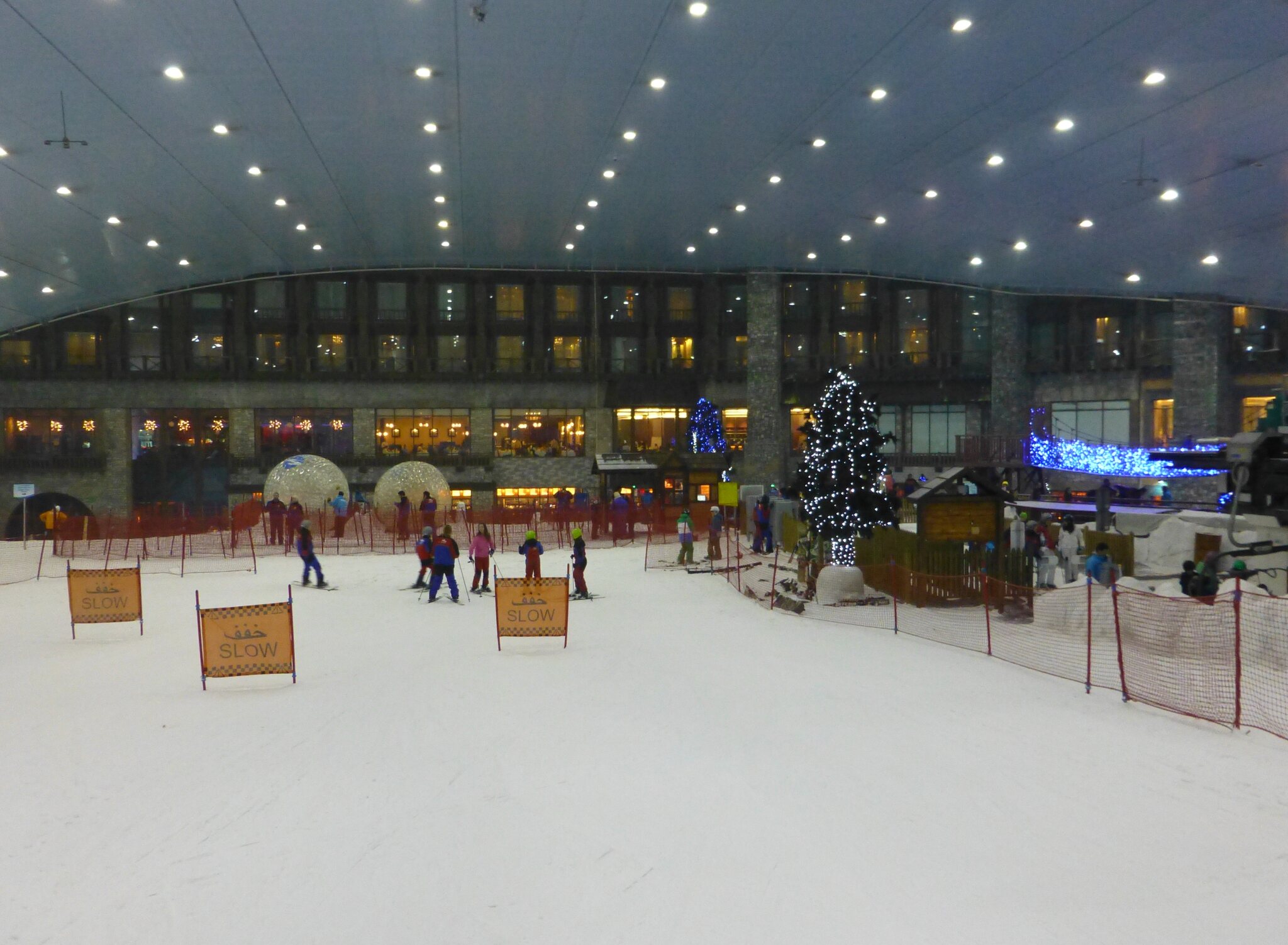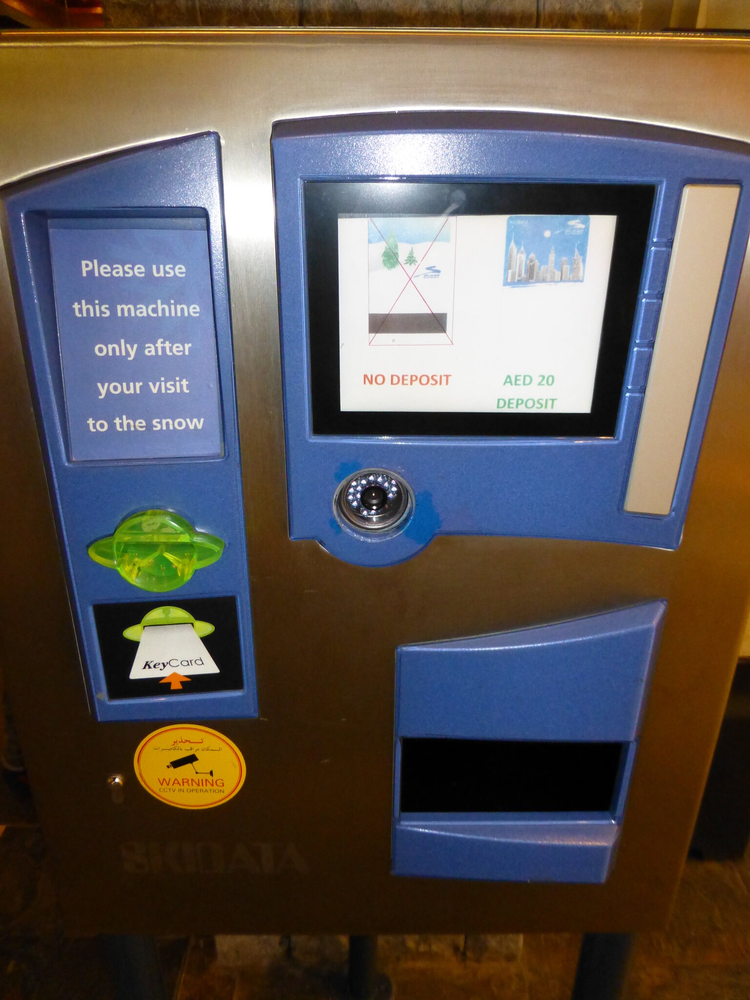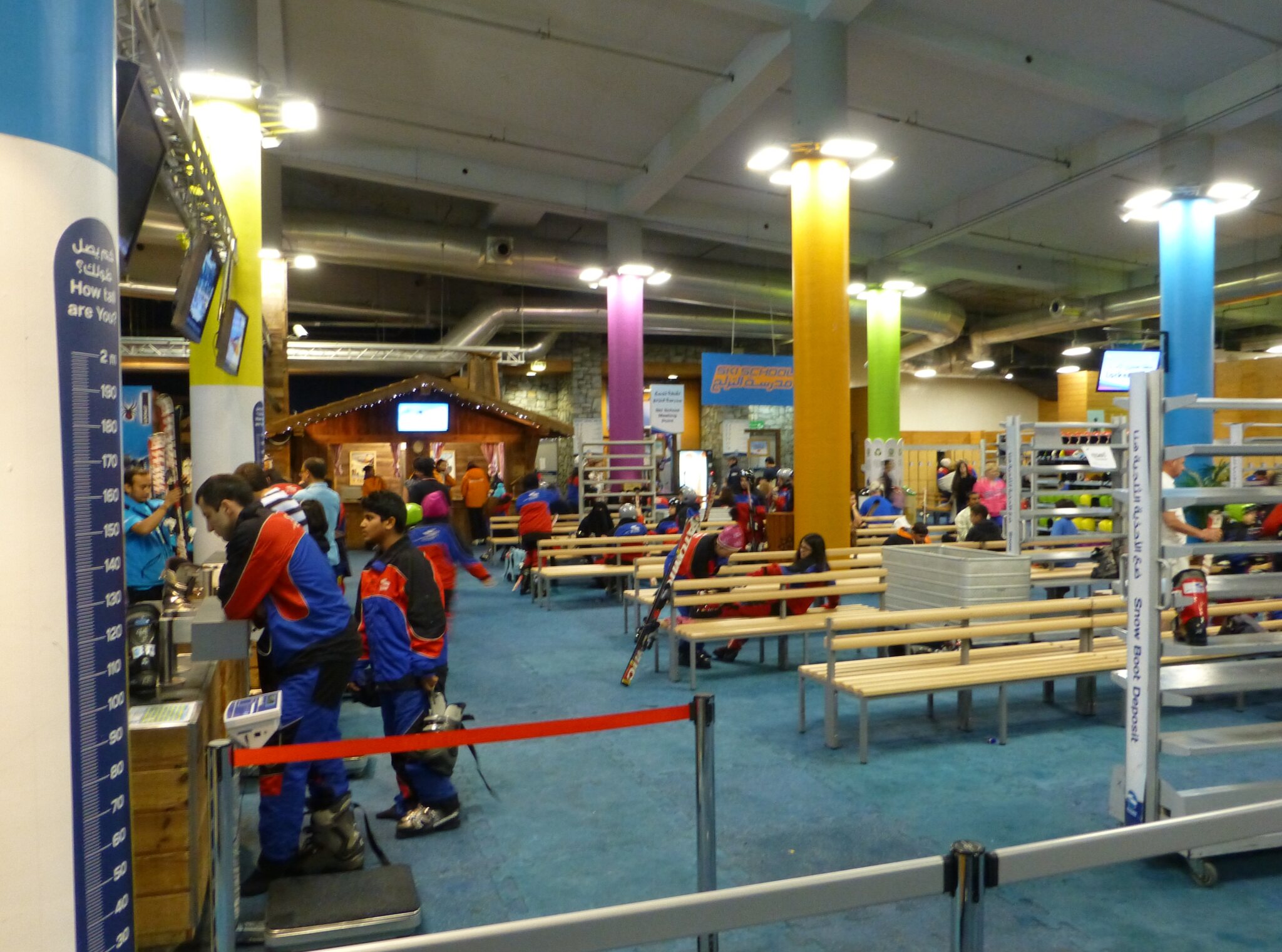 Ich habe ein Ticket für 2 h gelöst, die 220 AED entsprachen glaubs damals ca. stolzen 60-70.- CHF, aber beinhalteten wenn ich mich recht entsinne auch die Miete von Skiern und Schuhen sowie Überziehhosen-/jacke. Socken, Mütze und Handschuhe müsste man kaufen, daher hatte ich die dabei. Bzgl. Helmen bin ich nicht mehr sicher Miete, Skischuh-Anprobieren und Einstellung der Skibindungen ging ruck-zuck, dazu noch ein kurzer Schwatz mit dem netten Angestellten dort. Er sagte mir, er sei aus Kaschmir… und ich erzählte aus der Schweiz... worauf seit Fazit war, dass er mir dann nicht weiter erklären muss, wie man Ski fährt und die Anlagen benutzt.