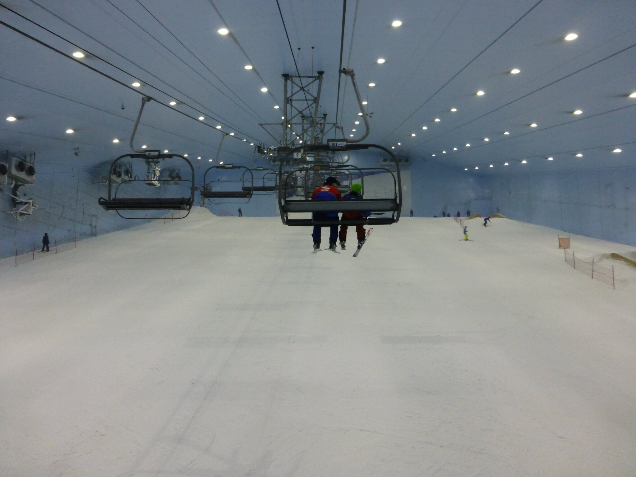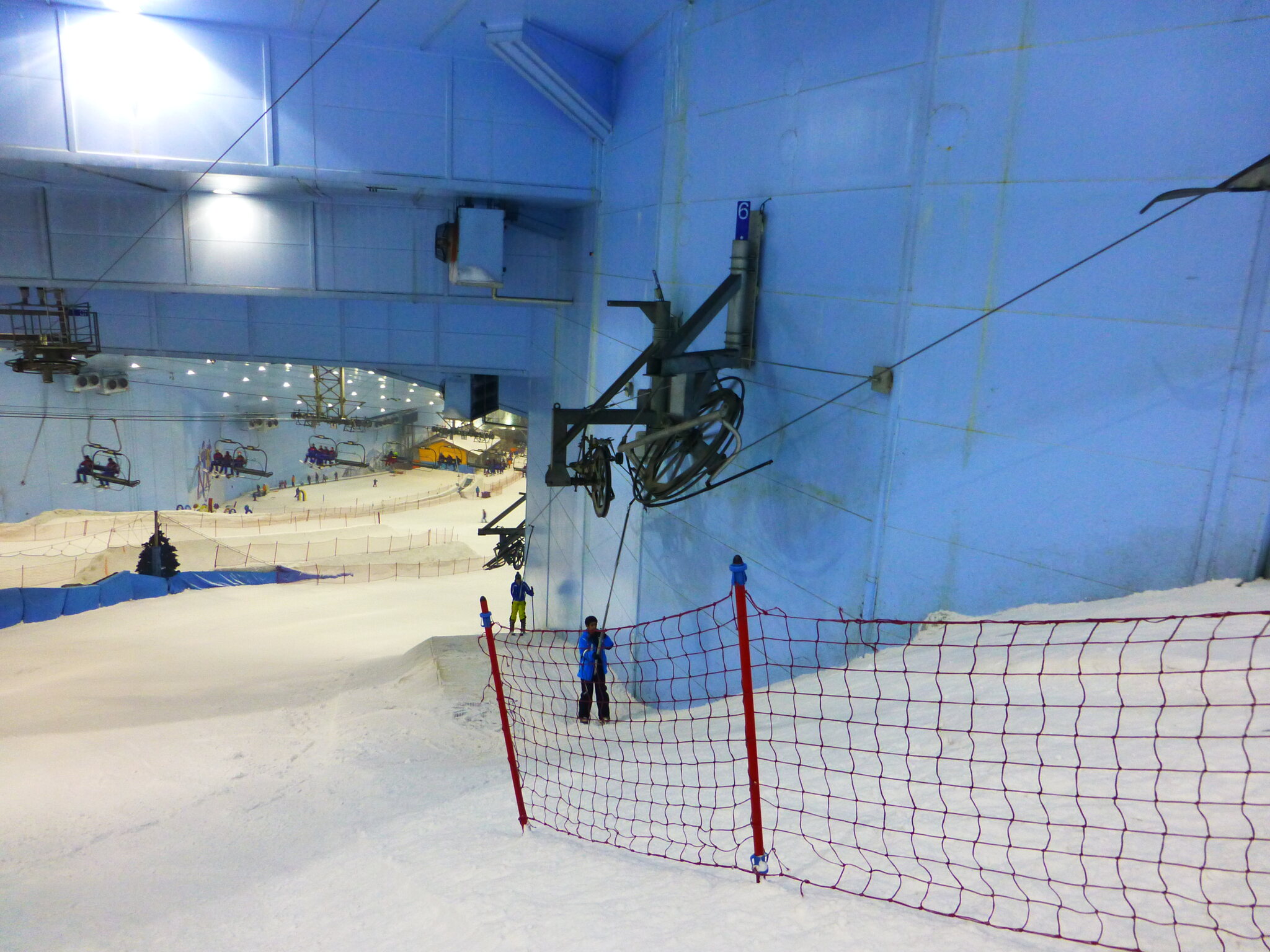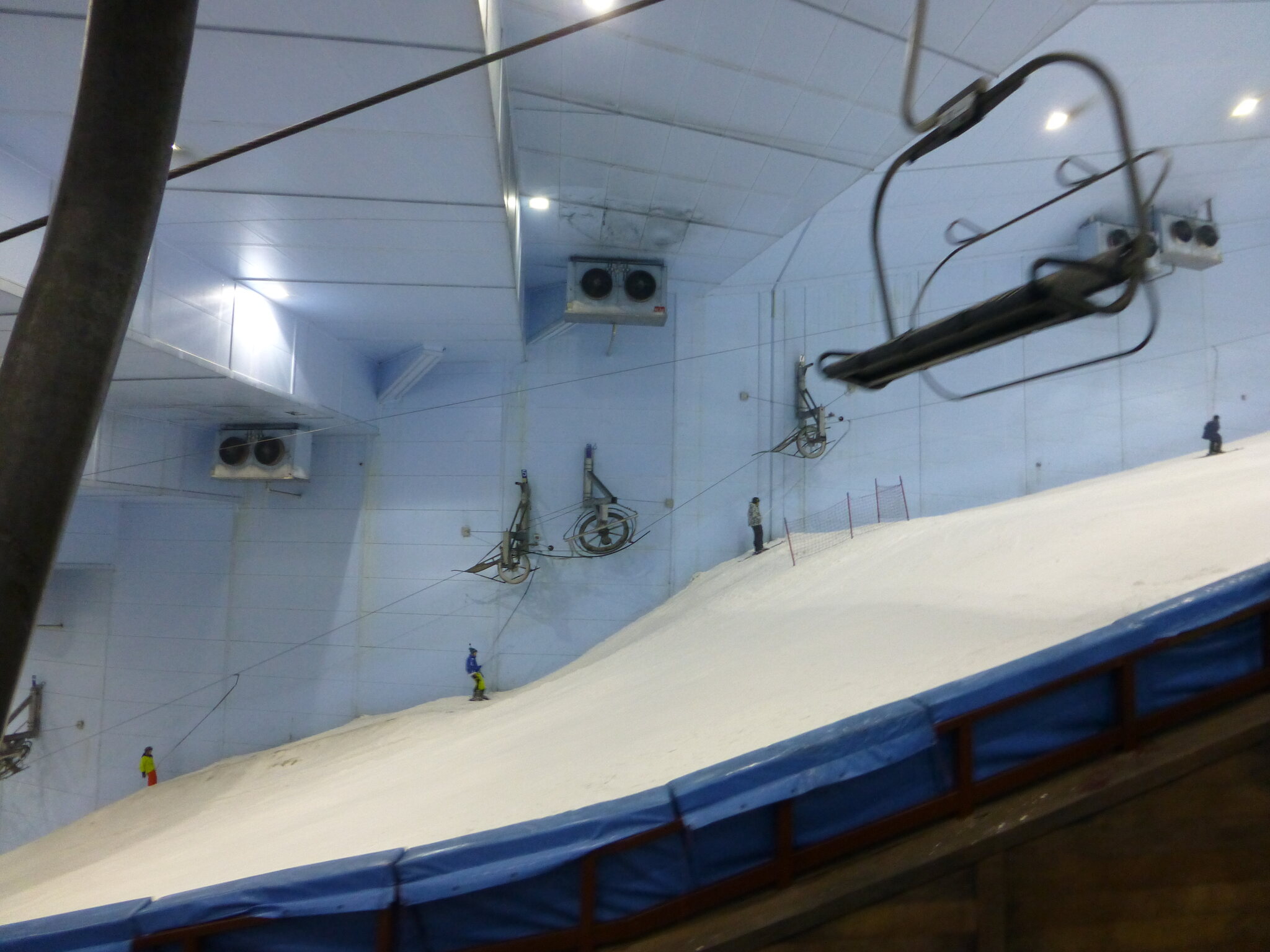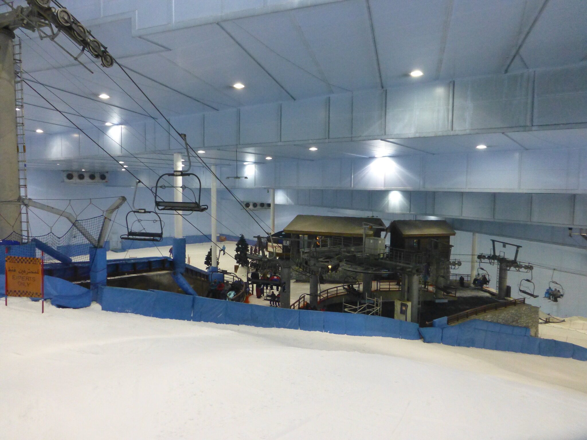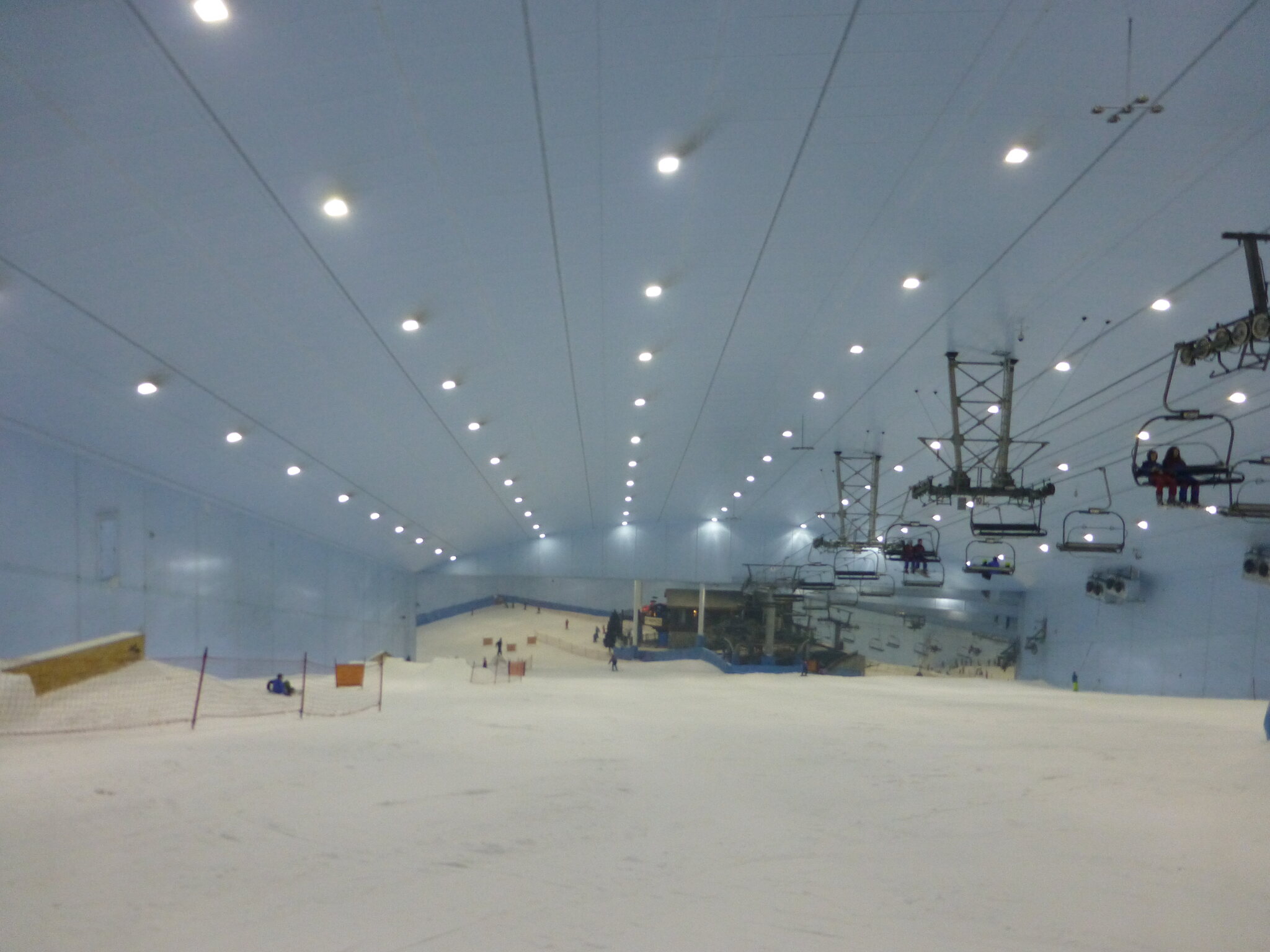 Anyway, was ich nie vergessen werde, ist meine damalige Überraschung über die hervorragend Schneequalität und Pistenpräparation in der Skihalle von Dubai. Konstante -1°C oder so waren wohl ideale Bedingungen für den Kunstschnee dort. Und die Halle scheint wohl gut gegen die Hitze draussen isoliert zu sein, da Ganzjahresbetrieb auch bei bis ca. 40°C im Sommer… und im Winter immer noch um die 25°C. Etwas negativ überrascht war ich aber von den doch ziemlich alt und abgenutzt wirkenden Anlagen (ein fixer Poma-Sessel mit Mittelstation und links an der Wand ein alter Poma-Schlepper)… v.a. wenn man denkt, wie Dubai sonst den Luxus geradezu zelebriert. Naja, bei „Pistenlängen“ von rund 250 m spielt das aber am Ende auch nicht wirklich eine Rolle. Es scheint gemäss Internet, dass die beiden Anlagen übrigens auch heute noch fast unverändert dort stehen, aber es gibt jetzt noch einen zweiten Poma-Schlepper an der rechten Wand, siehe hier: https://www.skiresort.de/skigebiet/ski- ... iftebahnen