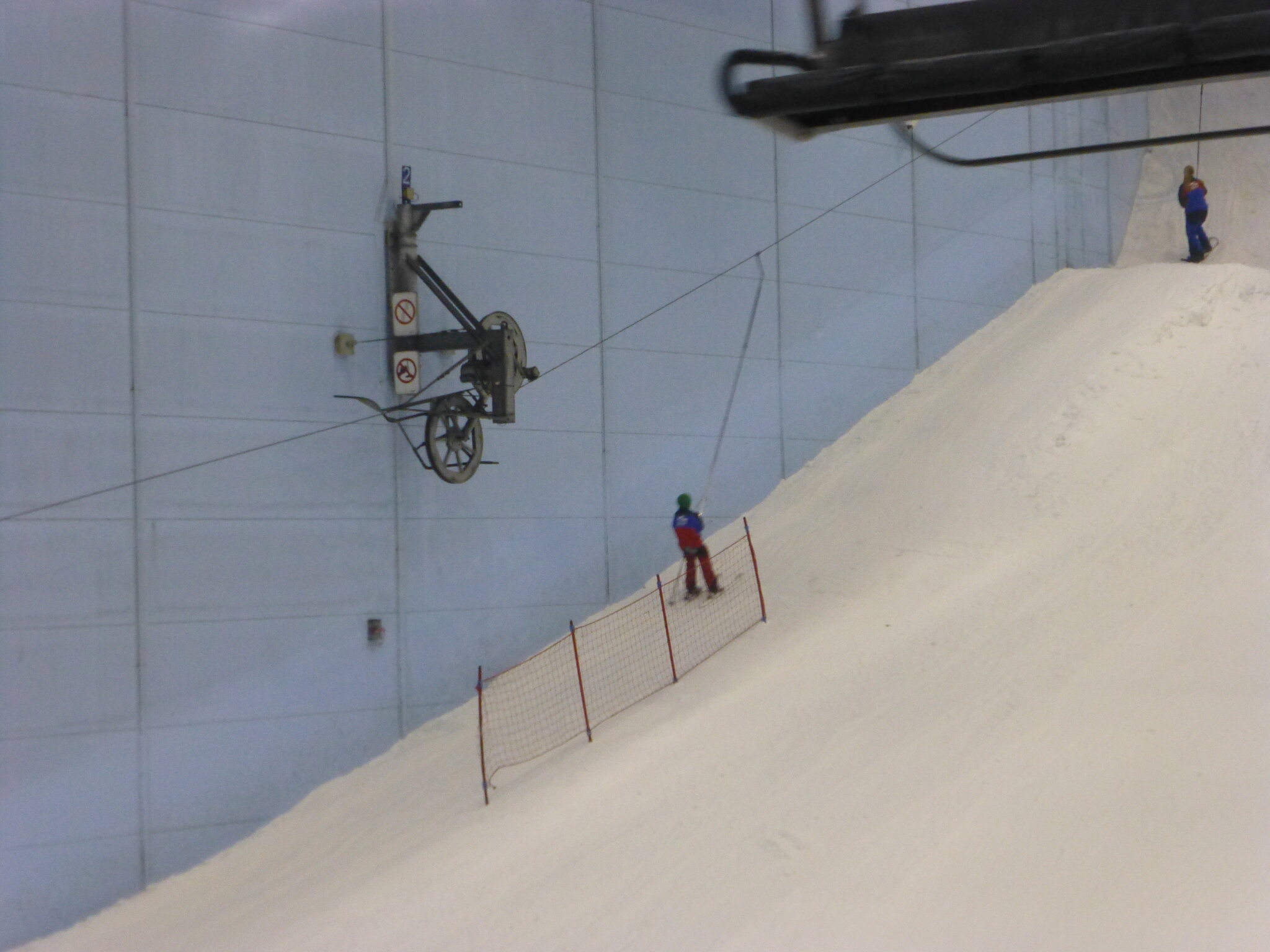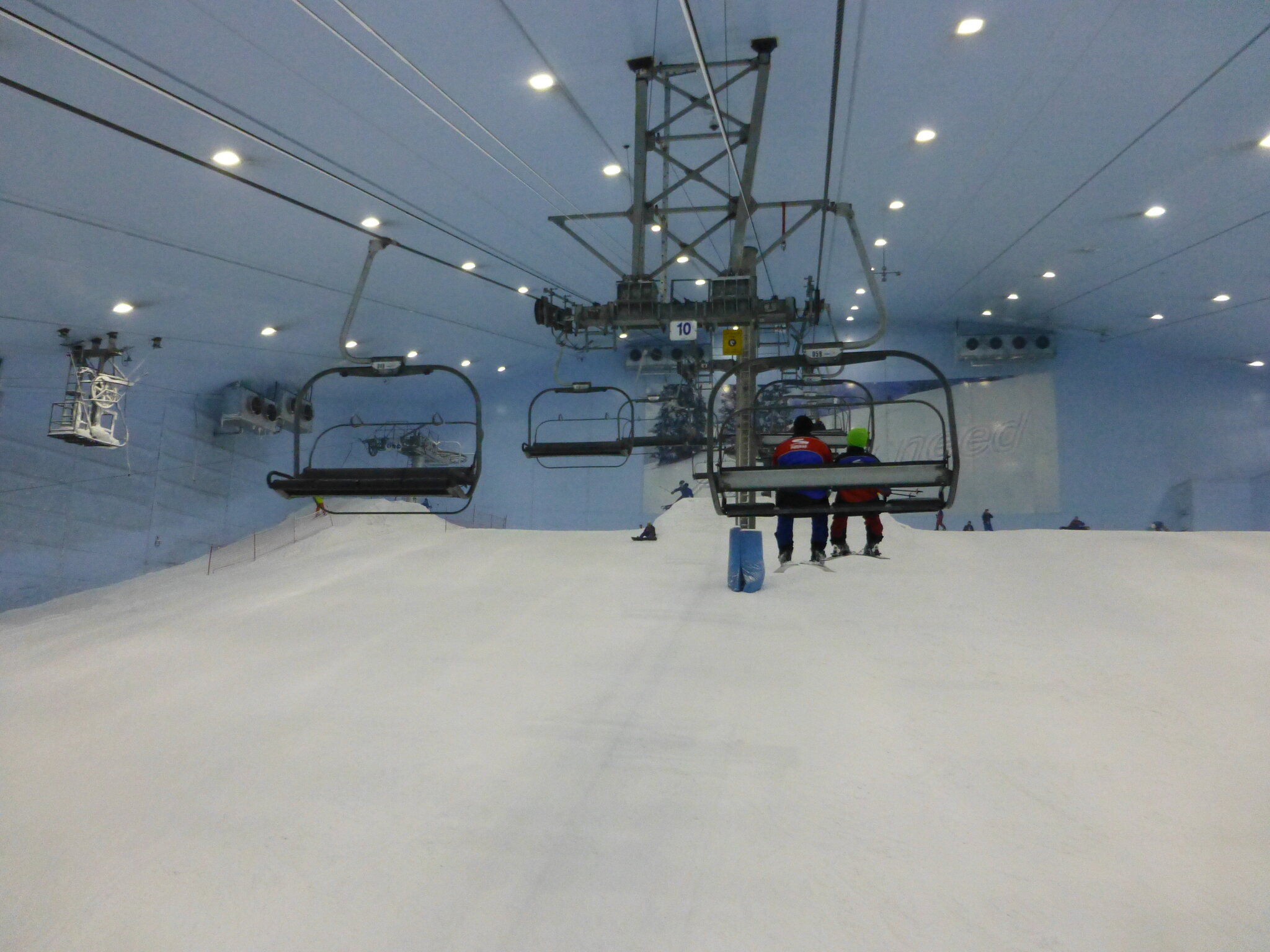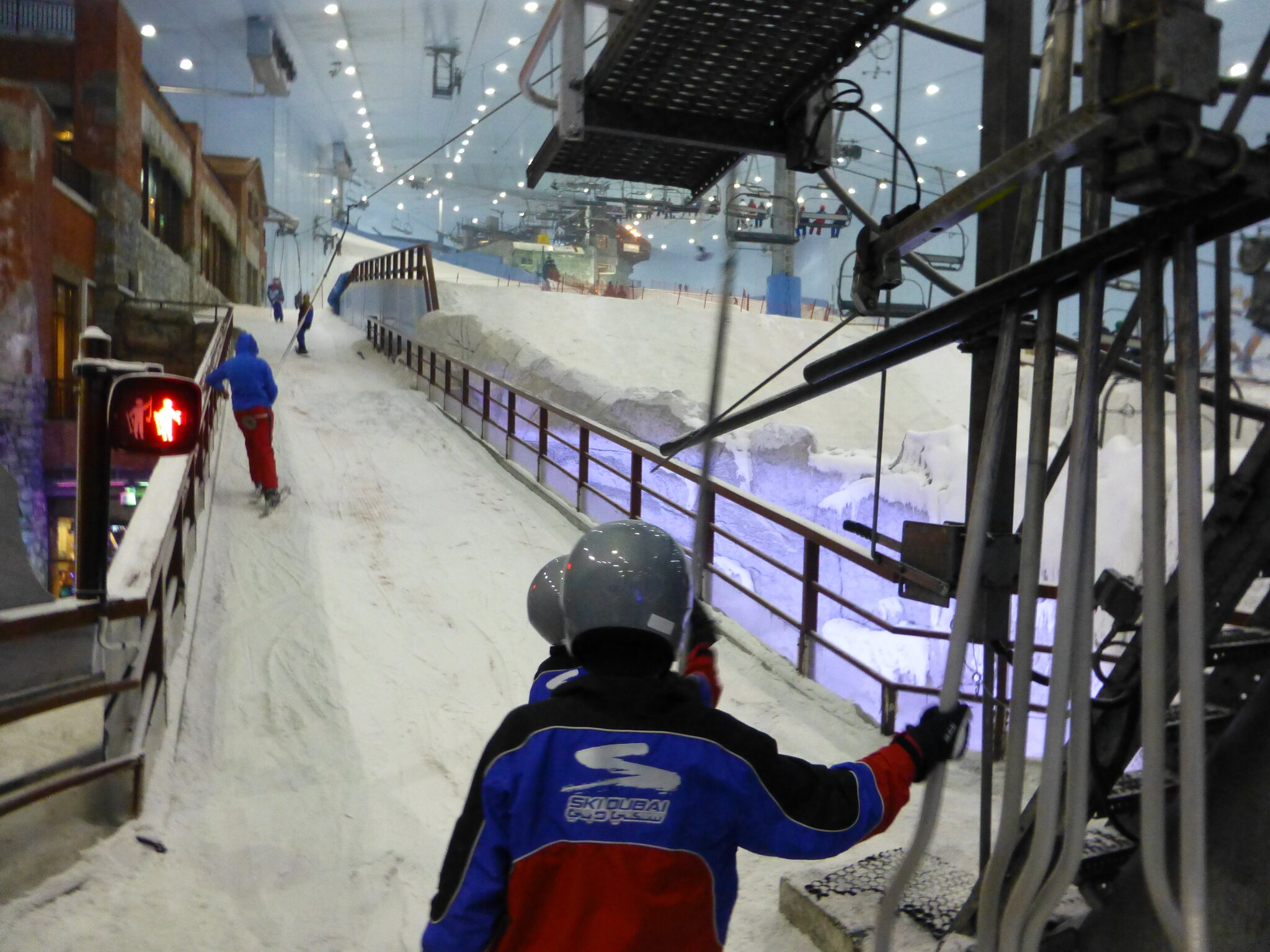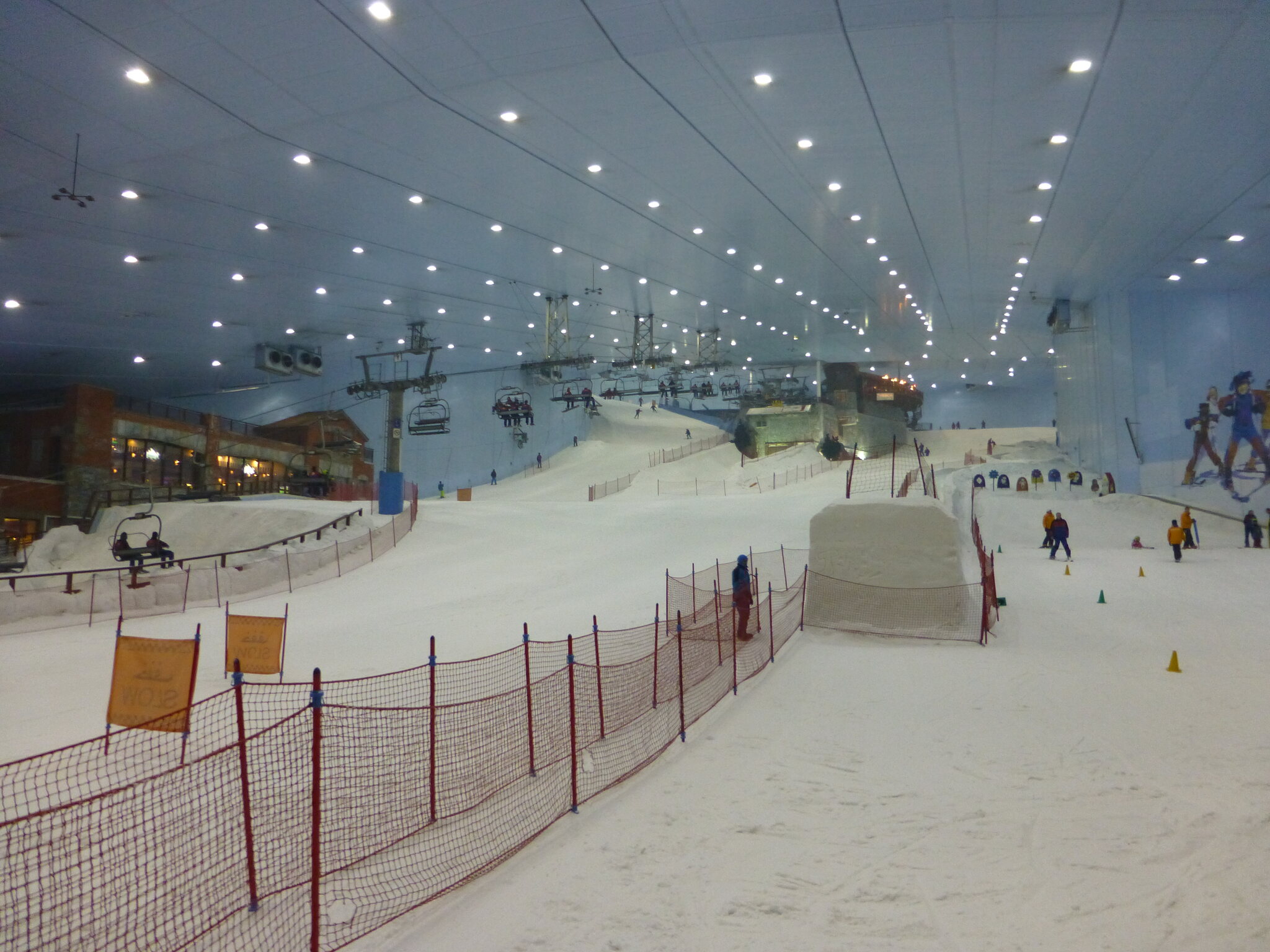 Anyway, was ich nie vergessen werde, ist meine damalige Überraschung über die hervorragend Schneequalität und Pistenpräparation in der Skihalle von Dubai. Konstante -1°C oder so waren wohl ideale Bedingungen für den Kunstschnee dort. Und die Halle scheint wohl gut gegen die Hitze draussen isoliert zu sein, da Ganzjahresbetrieb auch bei bis ca. 40°C im Sommer… und im Winter immer noch um die 25°C. Etwas negativ überrascht war ich aber von den doch ziemlich alt und abgenutzt wirkenden Anlagen (ein fixer Poma-Sessel mit Mittelstation und links an der Wand ein alter Poma-Schlepper)… v.a. wenn man denkt, wie Dubai sonst den Luxus geradezu zelebriert. Naja, bei „Pistenlängen“ von rund 250 m spielt das aber am Ende auch nicht wirklich eine Rolle. Es scheint gemäss Internet, dass die beiden Anlagen übrigens auch heute noch fast unverändert dort stehen, aber es gibt jetzt noch einen zweiten Poma-Schlepper an der rechten Wand, siehe hier: https://www.skiresort.de/skigebiet/ski- ... iftebahnen