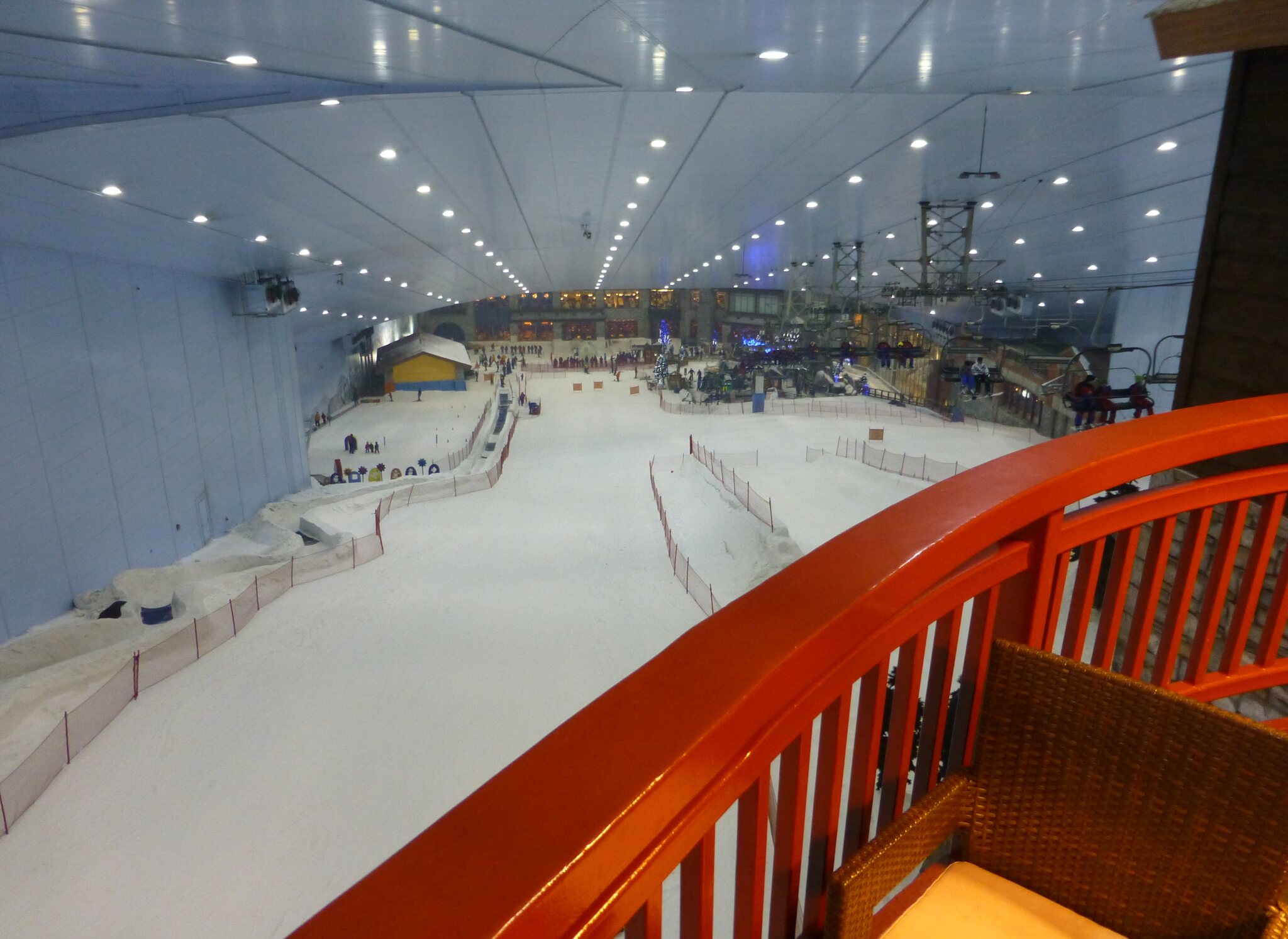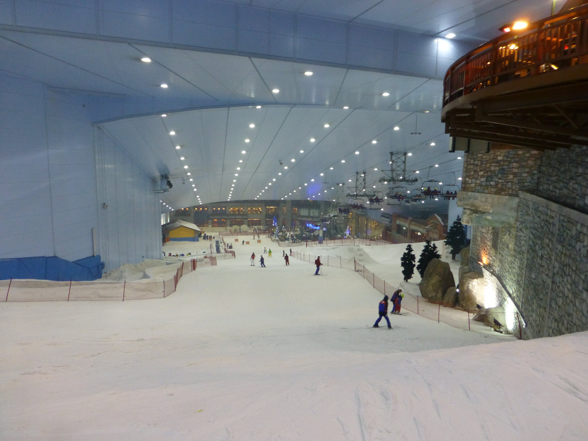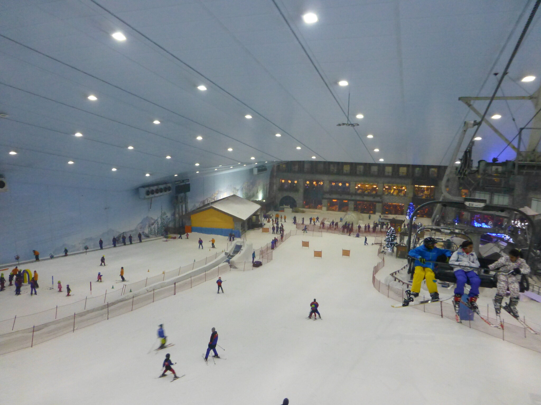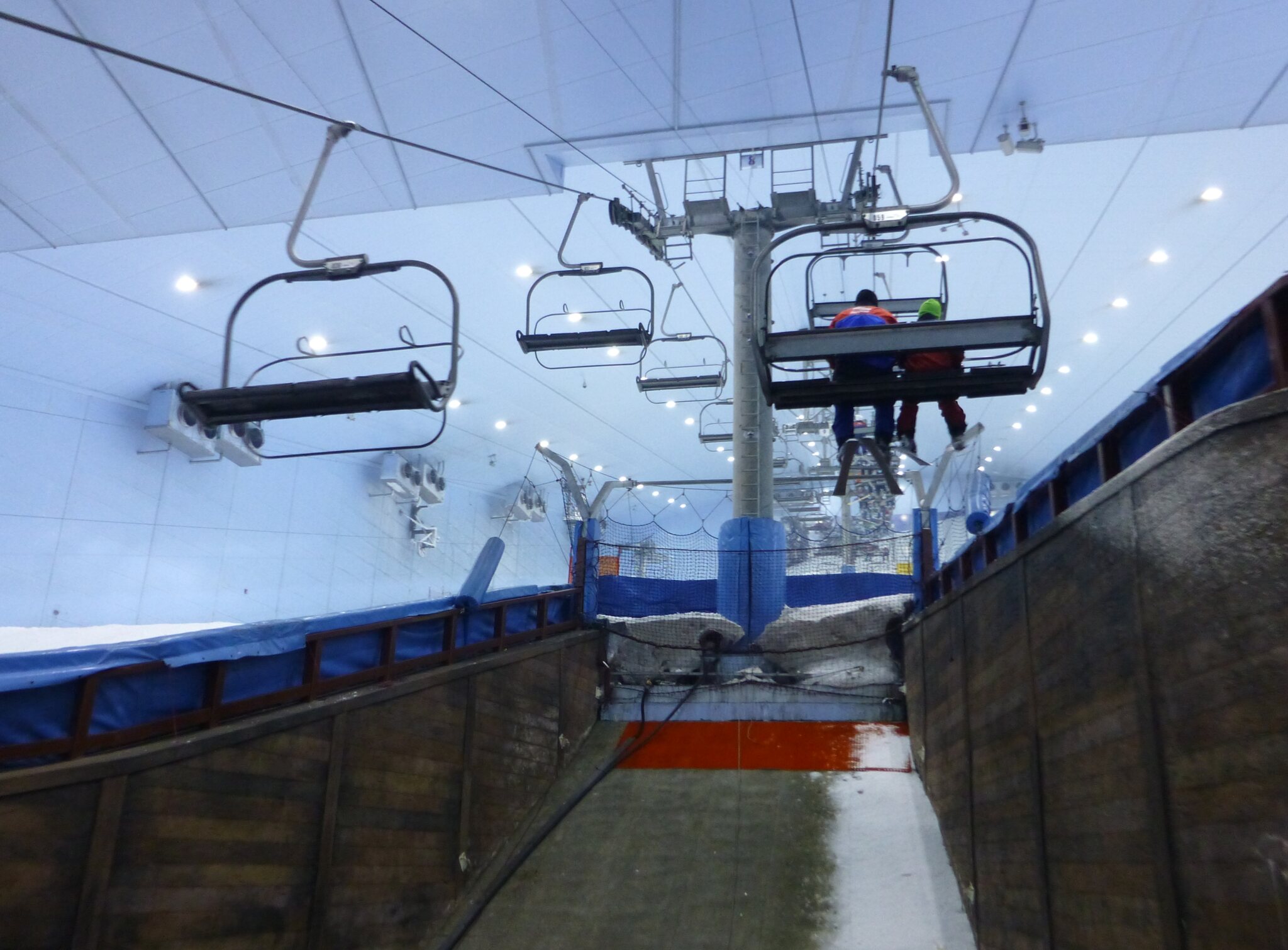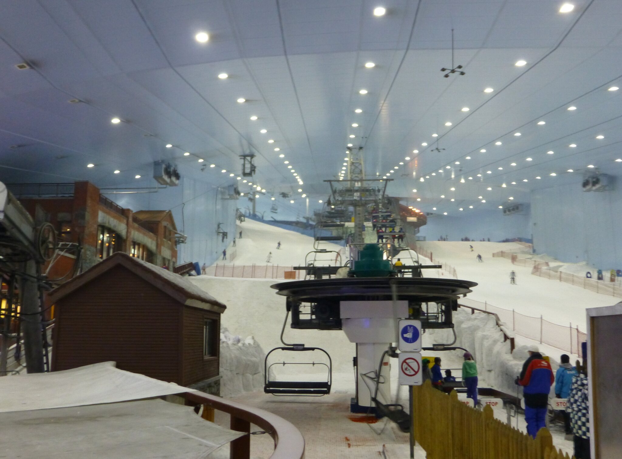 Anyway, was ich nie vergessen werde, ist meine damalige Überraschung über die hervorragend Schneequalität und Pistenpräparation in der Skihalle von Dubai. Konstante -1°C oder so waren wohl ideale Bedingungen für den Kunstschnee dort. Und die Halle scheint wohl gut gegen die Hitze draussen isoliert zu sein, da Ganzjahresbetrieb auch bei bis ca. 40°C im Sommer… und im Winter immer noch um die 25°C. Etwas negativ überrascht war ich aber von den doch ziemlich alt und abgenutzt wirkenden Anlagen (ein fixer Poma-Sessel mit Mittelstation und links an der Wand ein alter Poma-Schlepper)… v.a. wenn man denkt, wie Dubai sonst den Luxus geradezu zelebriert. Naja, bei „Pistenlängen“ von rund 250 m spielt das aber am Ende auch nicht wirklich eine Rolle. Es scheint gemäss Internet, dass die beiden Anlagen übrigens auch heute noch fast unverändert dort stehen, aber es gibt jetzt noch einen zweiten Poma-Schlepper an der rechten Wand, siehe hier: https://www.skiresort.de/skigebiet/ski- ... iftebahnen