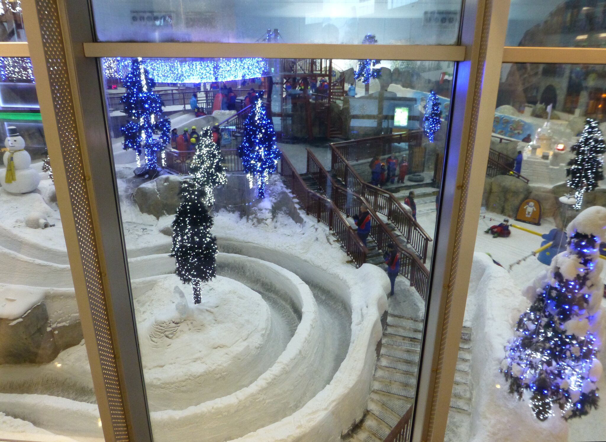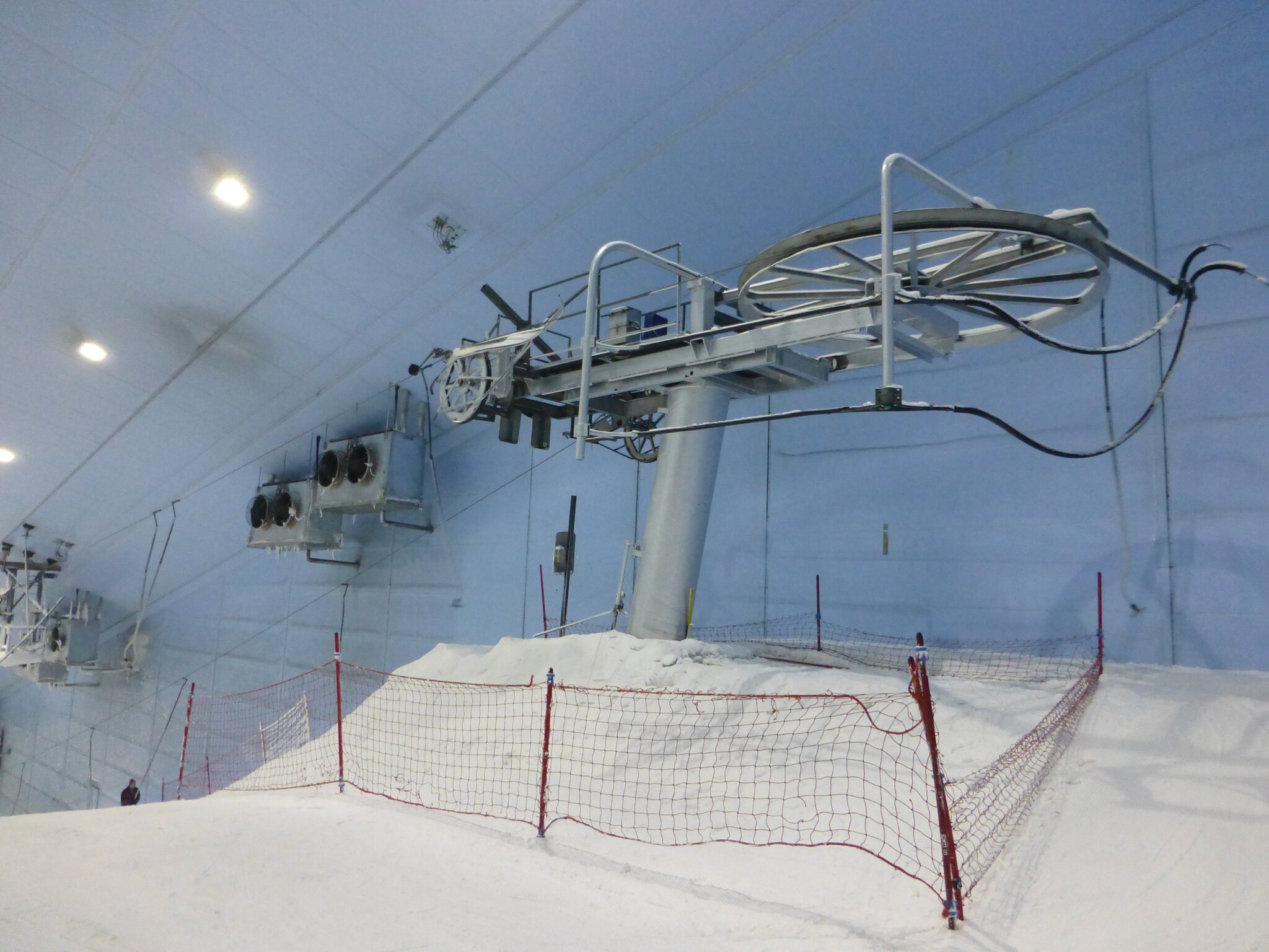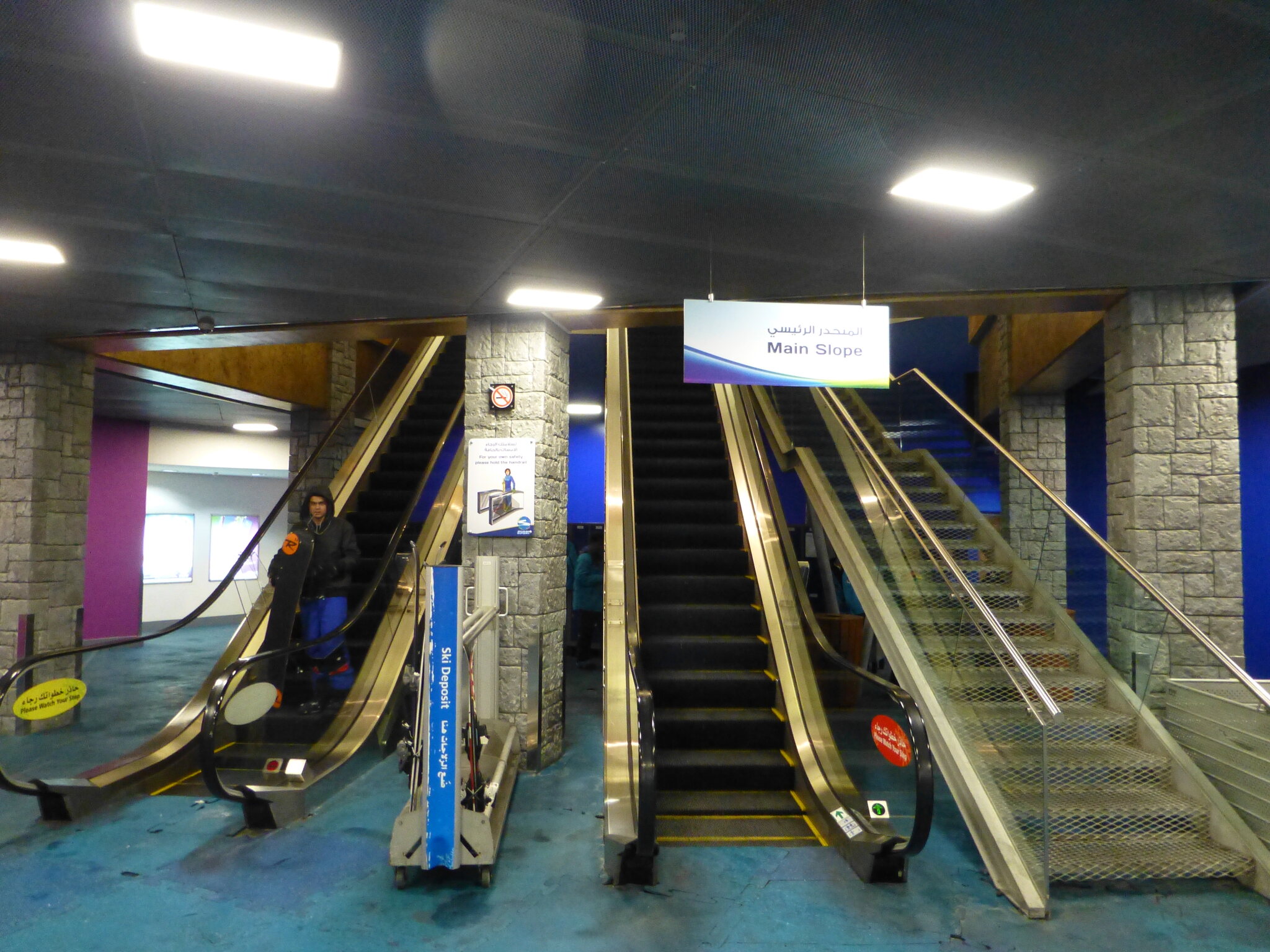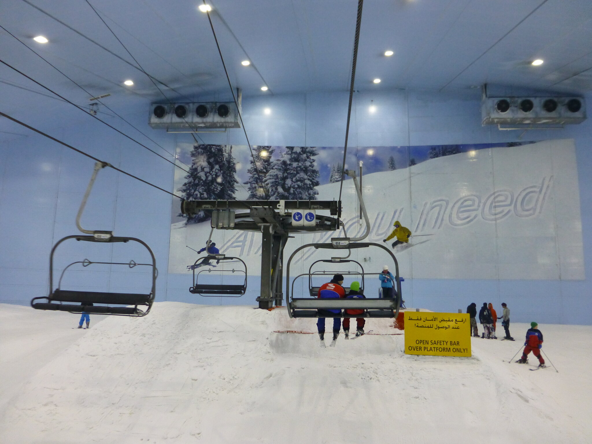 Anyway, was ich nie vergessen werde, ist meine damalige Überraschung über die hervorragend Schneequalität und Pistenpräparation in der Skihalle von Dubai. Konstante -1°C oder so waren wohl ideale Bedingungen für den Kunstschnee dort. Und die Halle scheint wohl gut gegen die Hitze draussen isoliert zu sein, da Ganzjahresbetrieb auch bei bis ca. 40°C im Sommer… und im Winter immer noch um die 25°C. Etwas negativ überrascht war ich aber von den doch ziemlich alt und abgenutzt wirkenden Anlagen (ein fixer Poma-Sessel mit Mittelstation und links an der Wand ein alter Poma-Schlepper)… v.a. wenn man denkt, wie Dubai sonst den Luxus geradezu zelebriert. Naja, bei „Pistenlängen“ von rund 250 m spielt das aber am Ende auch nicht wirklich eine Rolle. Es scheint gemäss Internet, dass die beiden Anlagen übrigens auch heute noch fast unverändert dort stehen, aber es gibt jetzt noch einen zweiten Poma-Schlepper an der rechten Wand, siehe hier: https://www.skiresort.de/skigebiet/ski- ... iftebahnen