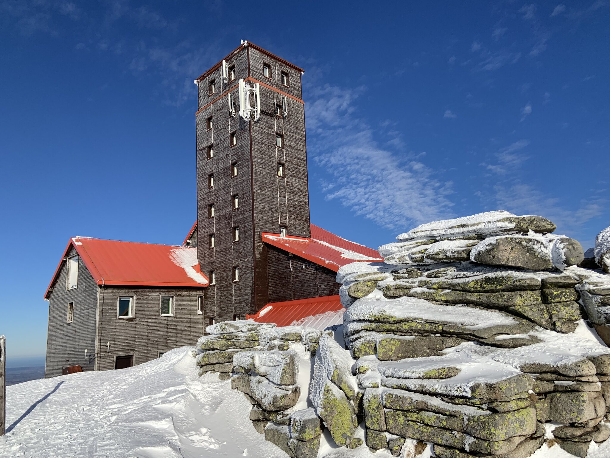 Früher eines der größten und schönsten Berghotels im Riesengebirge, heute nur noch Fernseh- und Mobilfunkstation.