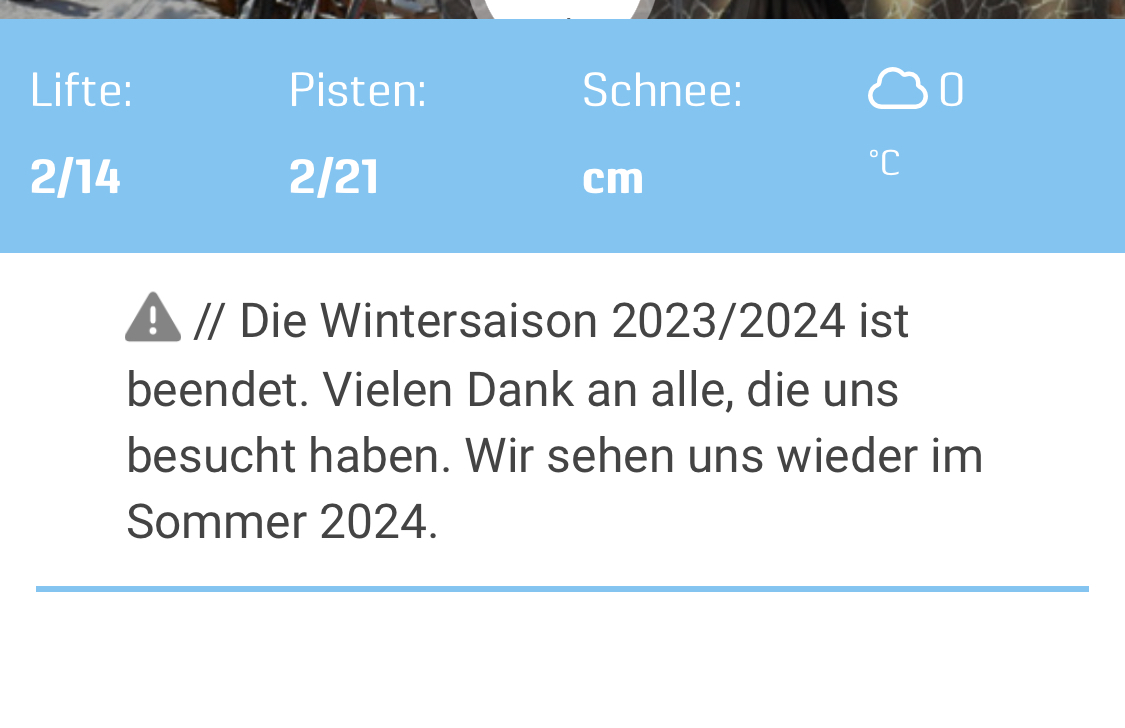 Sorry, hatte die Info hier falsch gelesen. Kanin ist 2024/25 gar nicht in Betrieb und die italienische Seite macht erst übernächstes Wochenende auf.Graubündenfan hat geschrieben: 05.12.2024, 17:43Bist du sicher? Ich dachte die Zubringerbahn auf slowenischer Seite wäre stillgelegt.sheridan hat geschrieben: 05.12.2024, 17:25 Sella Nevea fällt mir noch ein, wobei dort nur die slowenische Seite dieses Wochenende aufmacht.