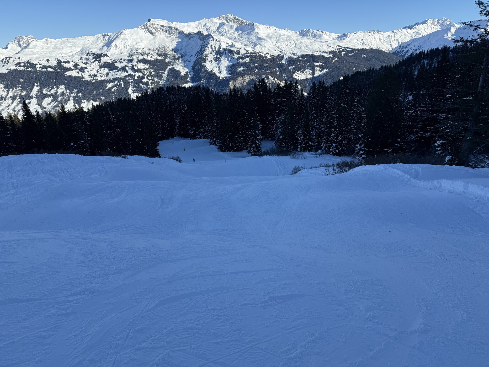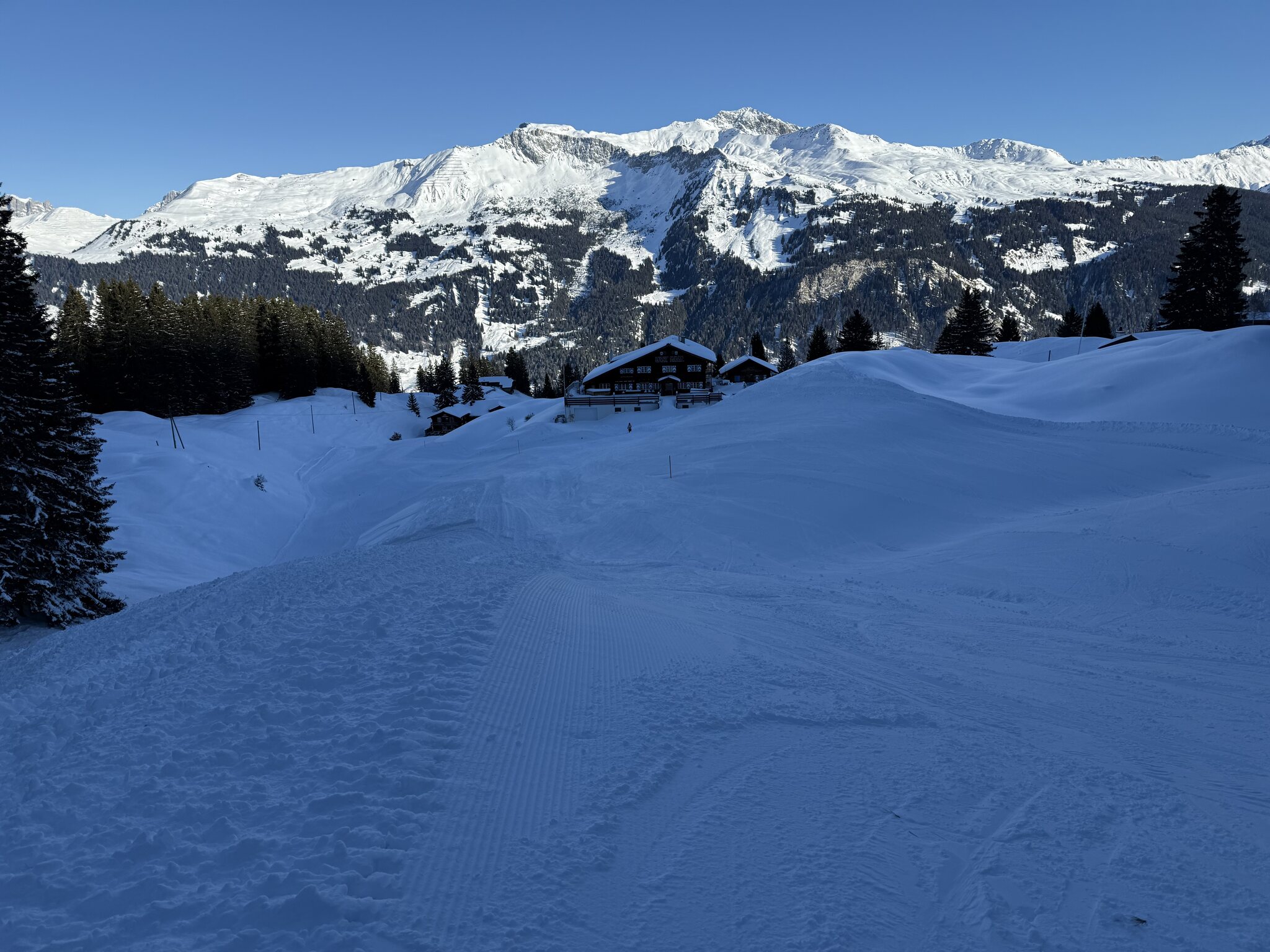 Auf der 21 (Talabfahrt Klosters) haben sie da ein Täli rausgehackt, oder? Jedenfalls geht es ohne Hocke locker durch.