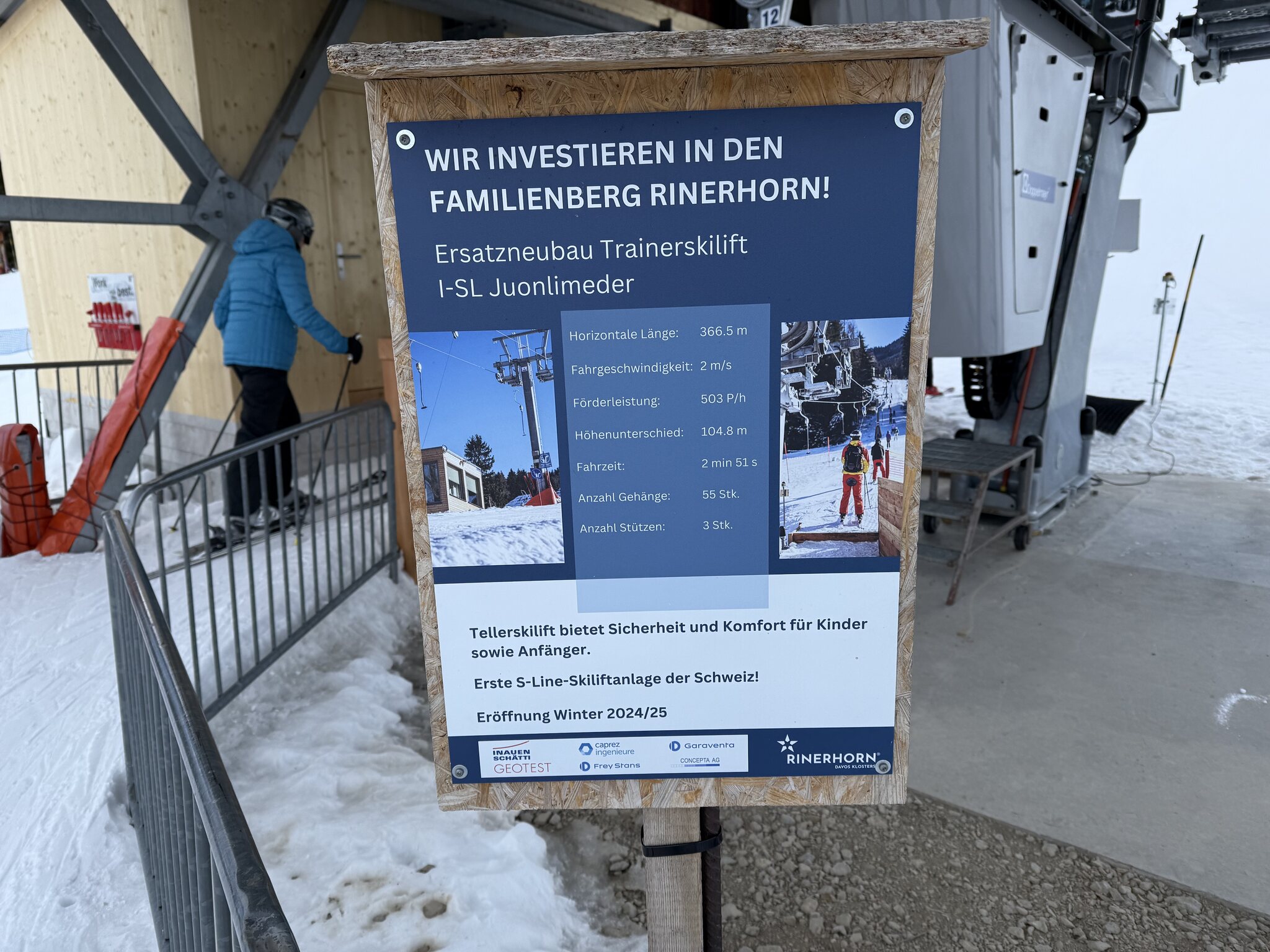Der Garaventa-Lift hat eine Länge von 366 Metern und hat mit einer Förderleistung von 503 Personen pro Stunde mehr Kapazität als der alte Bügellift. Es ist die erste S-Line-Skiliftanlage der Schweiz.