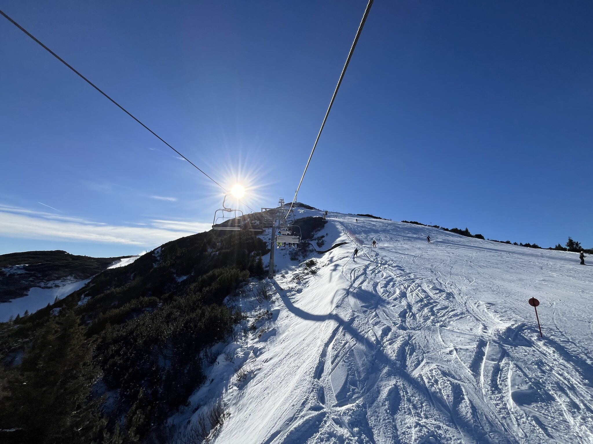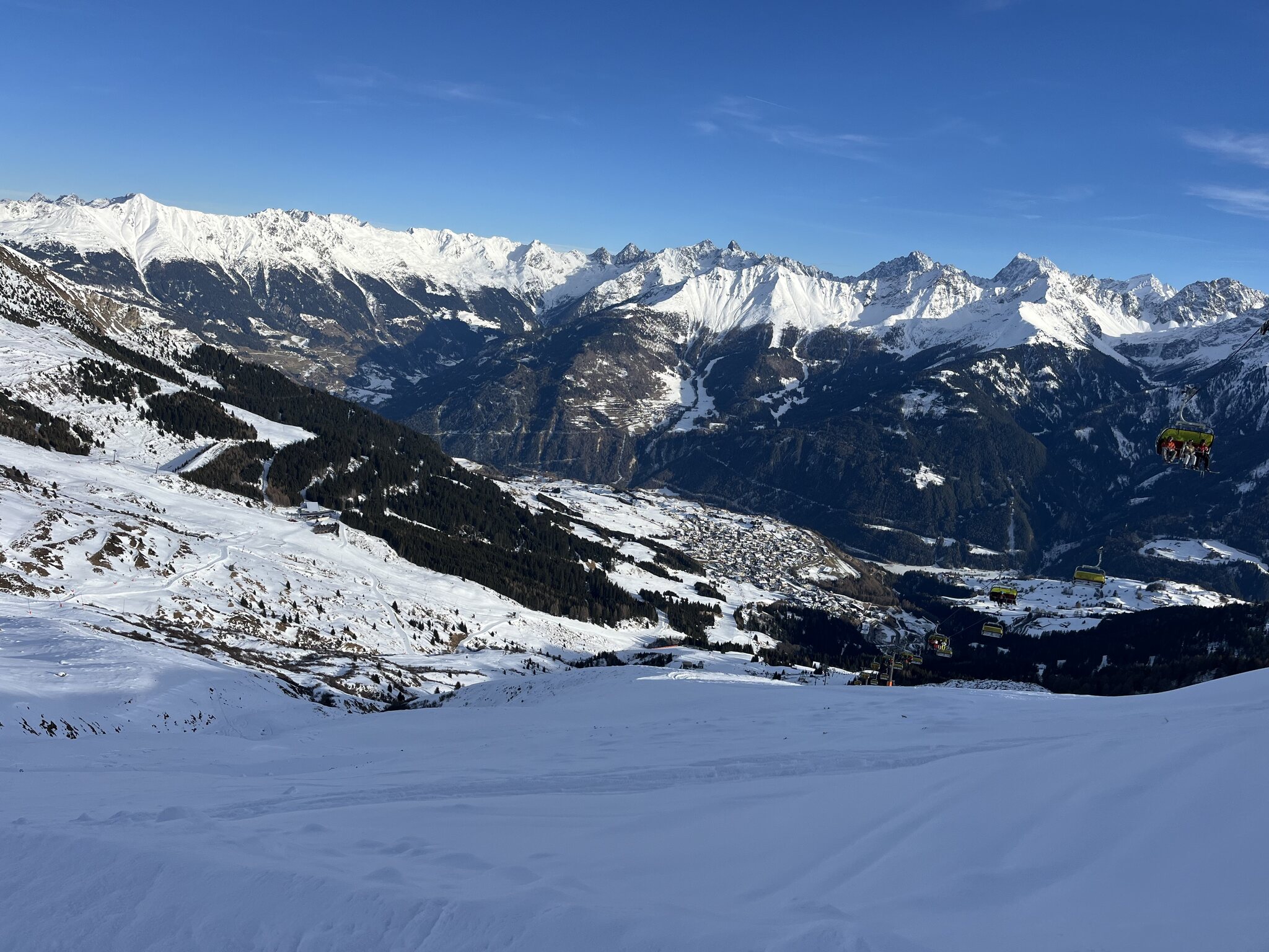 Das Panorama ist einfach sensationell hier. Zum Ausruhen mal die 4SB. Sonst sind alle Lifte superschnell hier. Edit 13.30 Uhr: