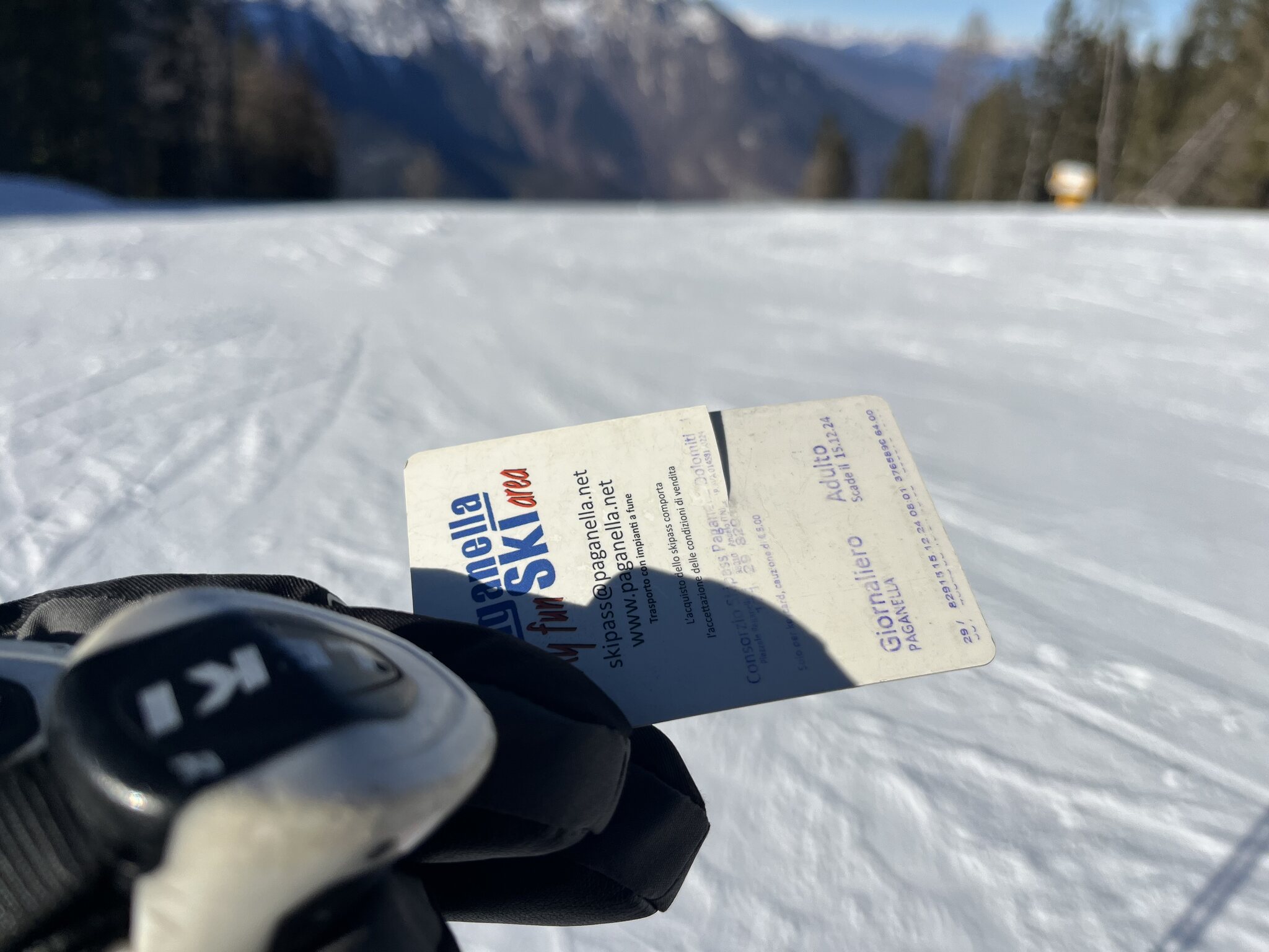 Etwas unerfreulich war diese Story: Bei einem Drehkreuzdurchgang touchierte ich es mit meinem linken Arm, worauf es merkbar knackte. Resultat: mit der Folge, dass die Leser die Karte nicht mehr erkennen konnten. Also fuhr ich zur Talstation und liess mir Ersatz ausstellen. Für die gebrochene Karte wollte sie 5.-, womit ich nicht einverstanden war. Für die längere Diskussion reichte mein Italienisch dann nicht mehr und ich wechselte auf Englisch. Vermutlich war dies dann der Trick, dass die Kassiererin doch noch einlenkte und auf die 5.- verzichtete.