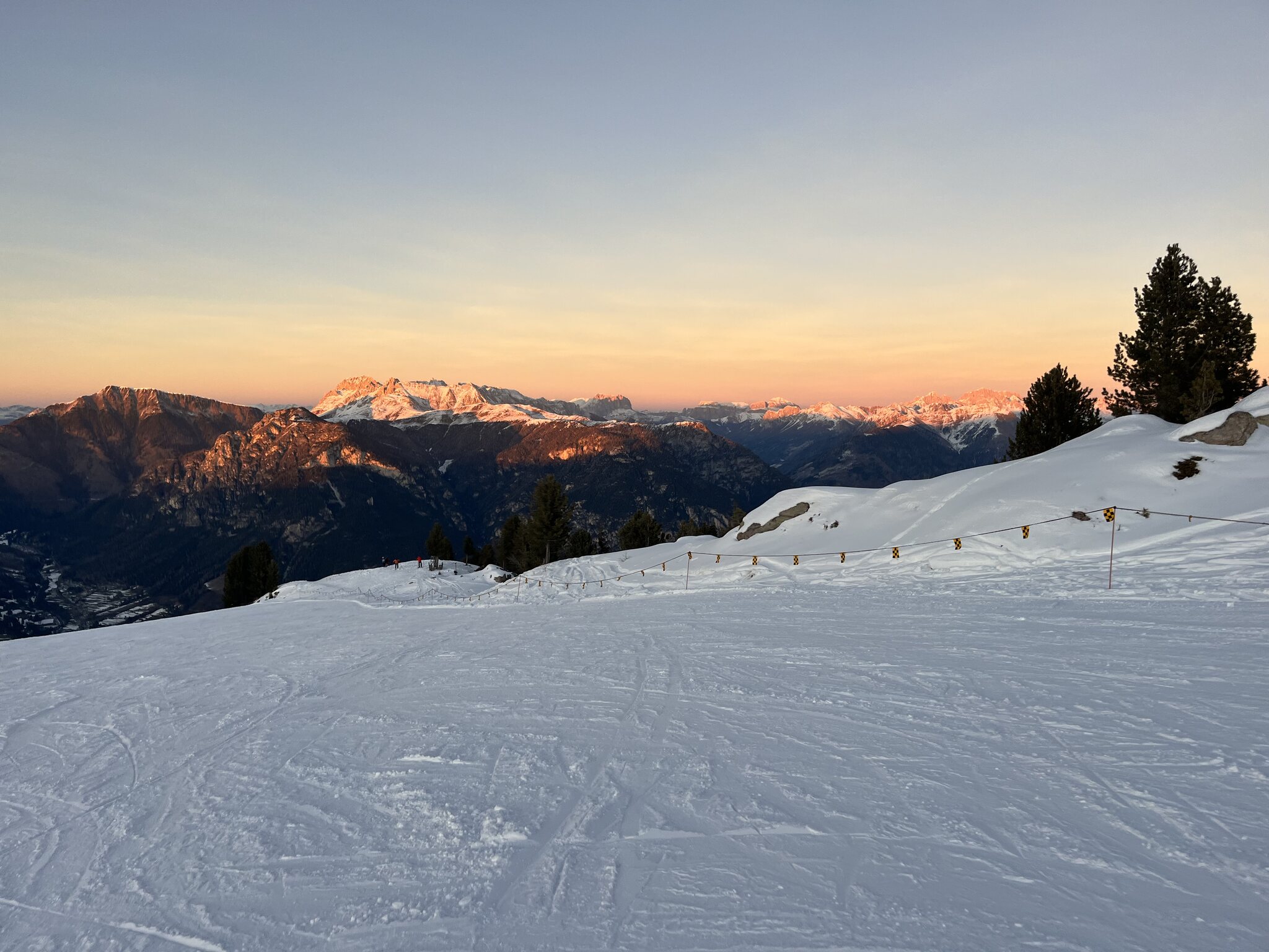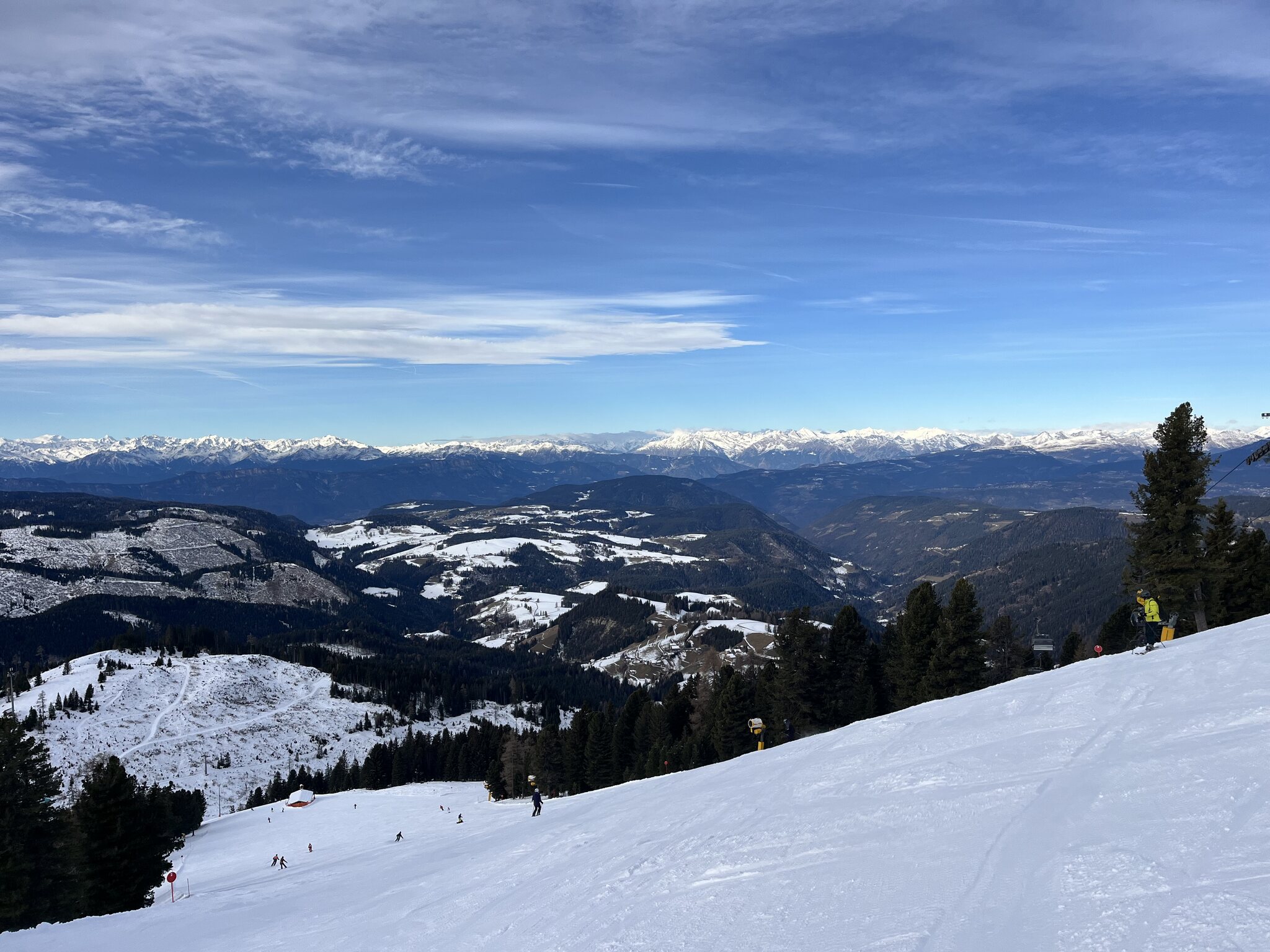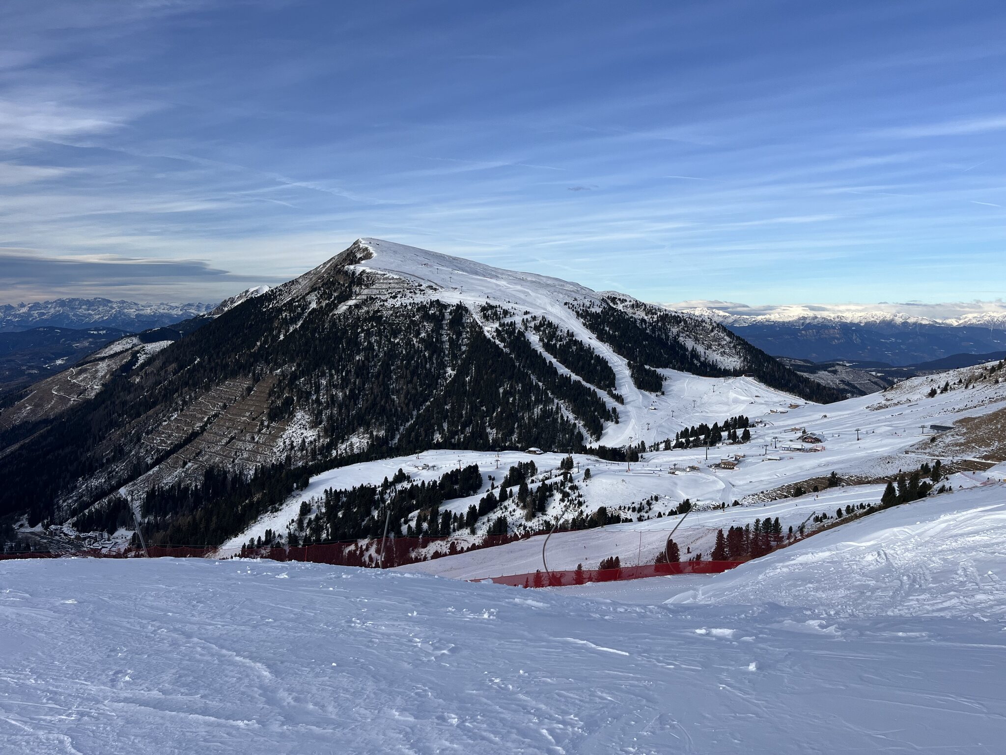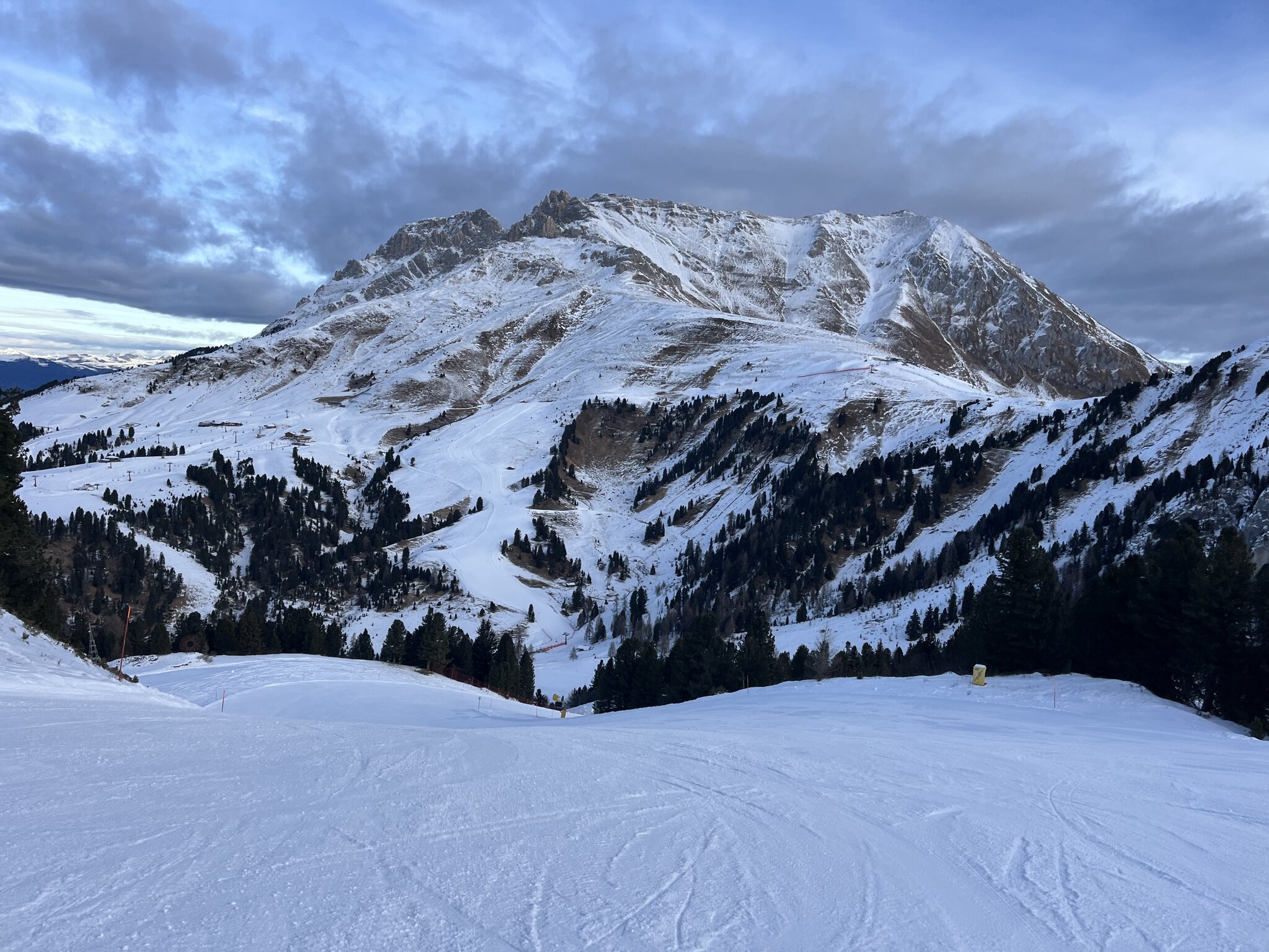 Schon ein krasser Unterschied nach den zwei Tagen auf planierten, perfekt präparierten Pisten Italiens nun hier auf hügelige, geländegeformte und nur gut präparierte Pisten zu stossen. Irgendwann muss ich mir doch mal eine Dolomiti-Saisonkarte besorgen