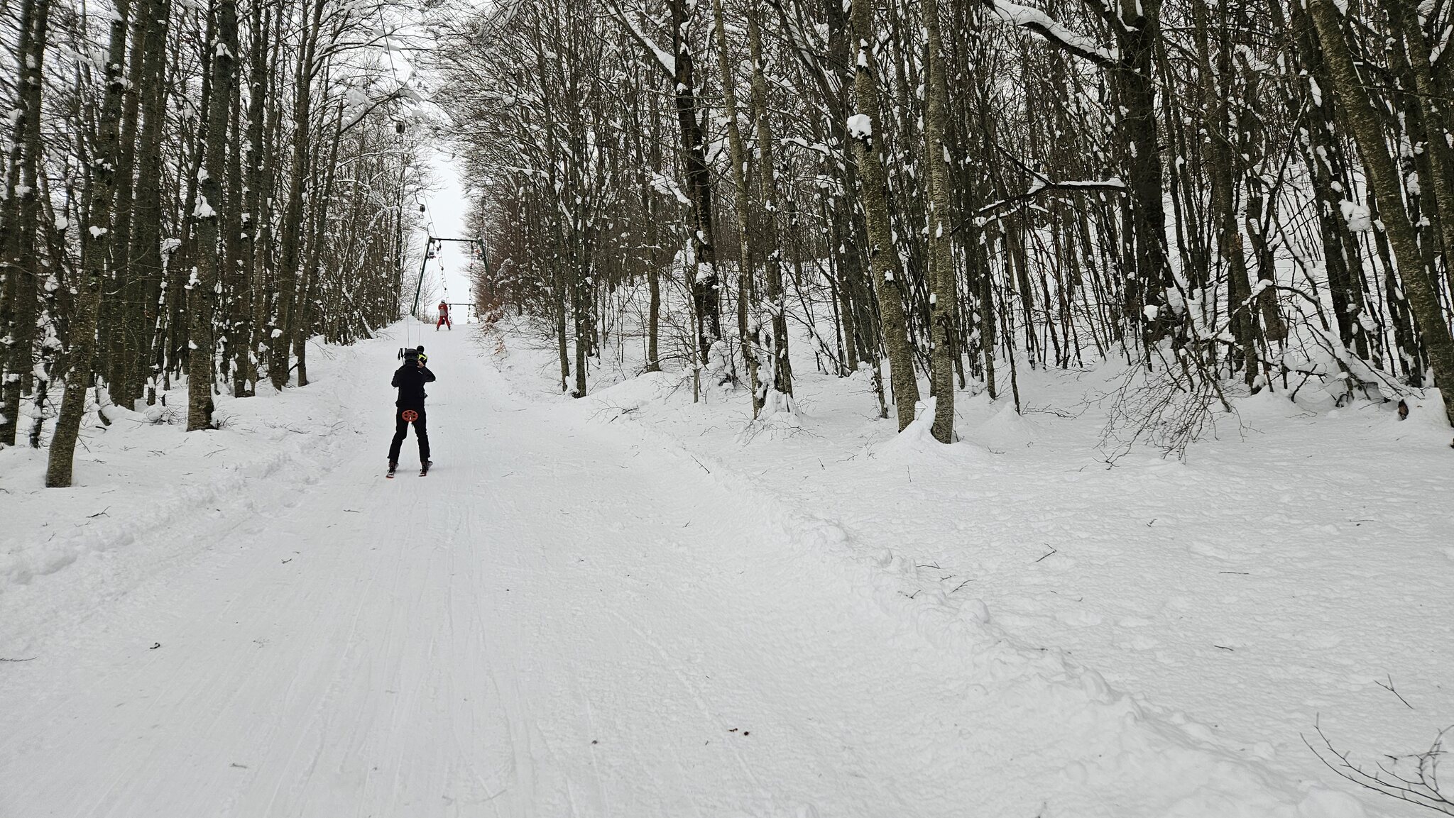Ein langer steiler Tellerlift, welcher unzählige Varianten im dichten Wald erschliesst.