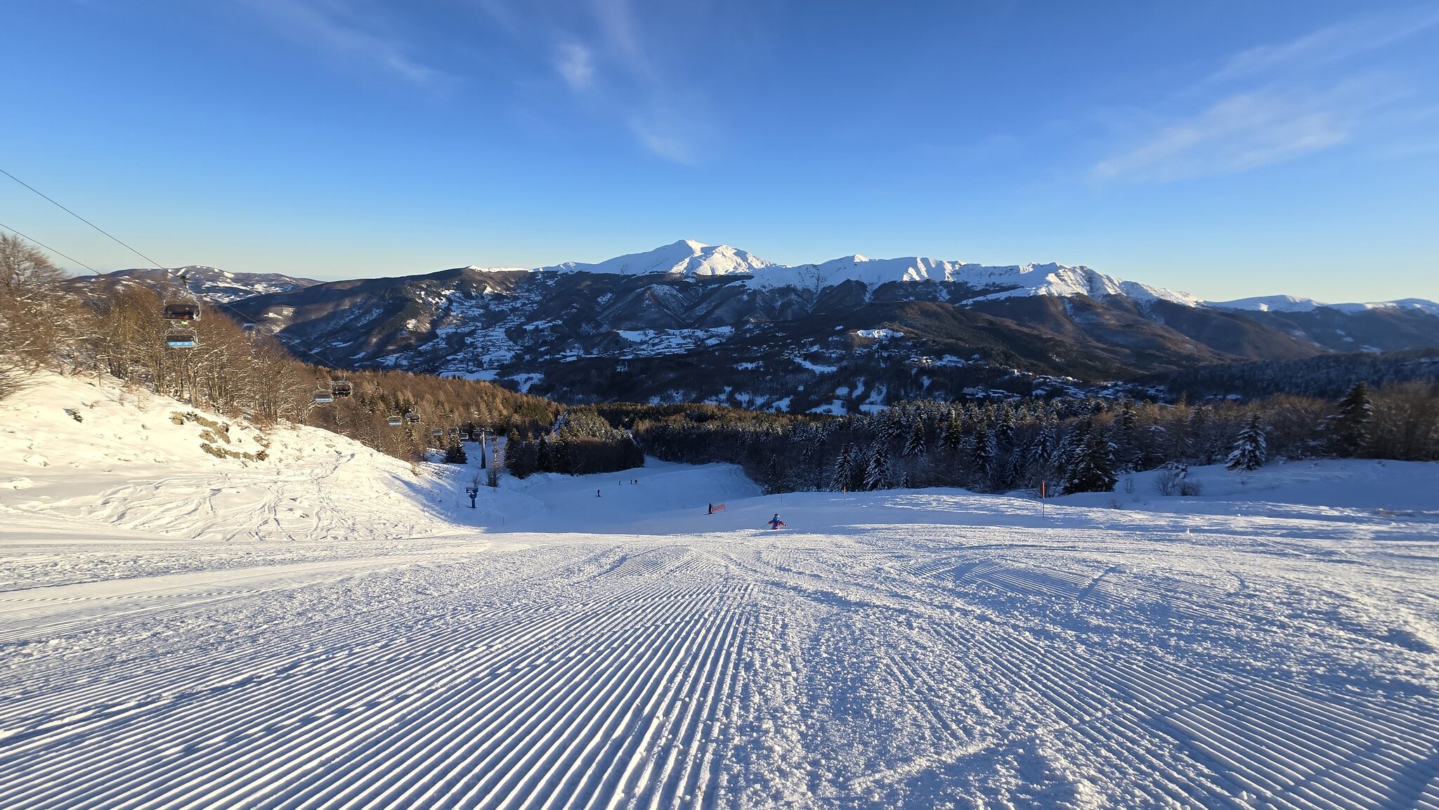 Heute haben wir einen traumhaften Skitag in den Skigebieten Abetone und Docanaccia verbracht. Trotz des hervorragenden Wetters war der Andrang überraschend gering. In Abetone sind die östlichen Liftanlagen noch geschlossen und in Docanaccia ist der obere Skilift nur bis zur Mitte in Betrieb. Dies scheint jedoch weniger am angegebenen Schneemangel zu liegen als vielmehr an fehlender Bereitschaft, die Anlagen vollständig zu öffnen – denn die Pisten wären in beiden Gebieten einsatzbereit gewesen. Dennoch war es ein grossartiger Skitag mit beeindruckendem Blick auf das Mittelmeer. Ein ausführlicher Bericht folgt.