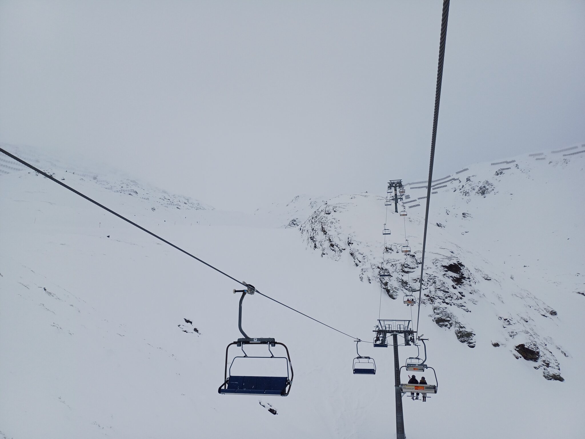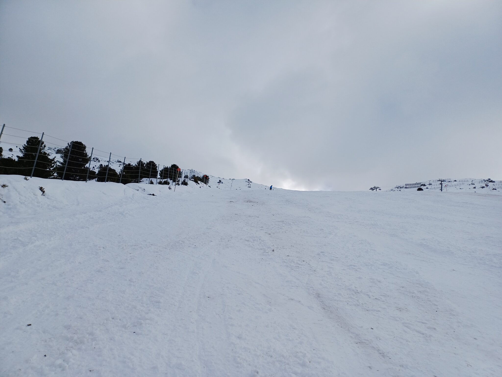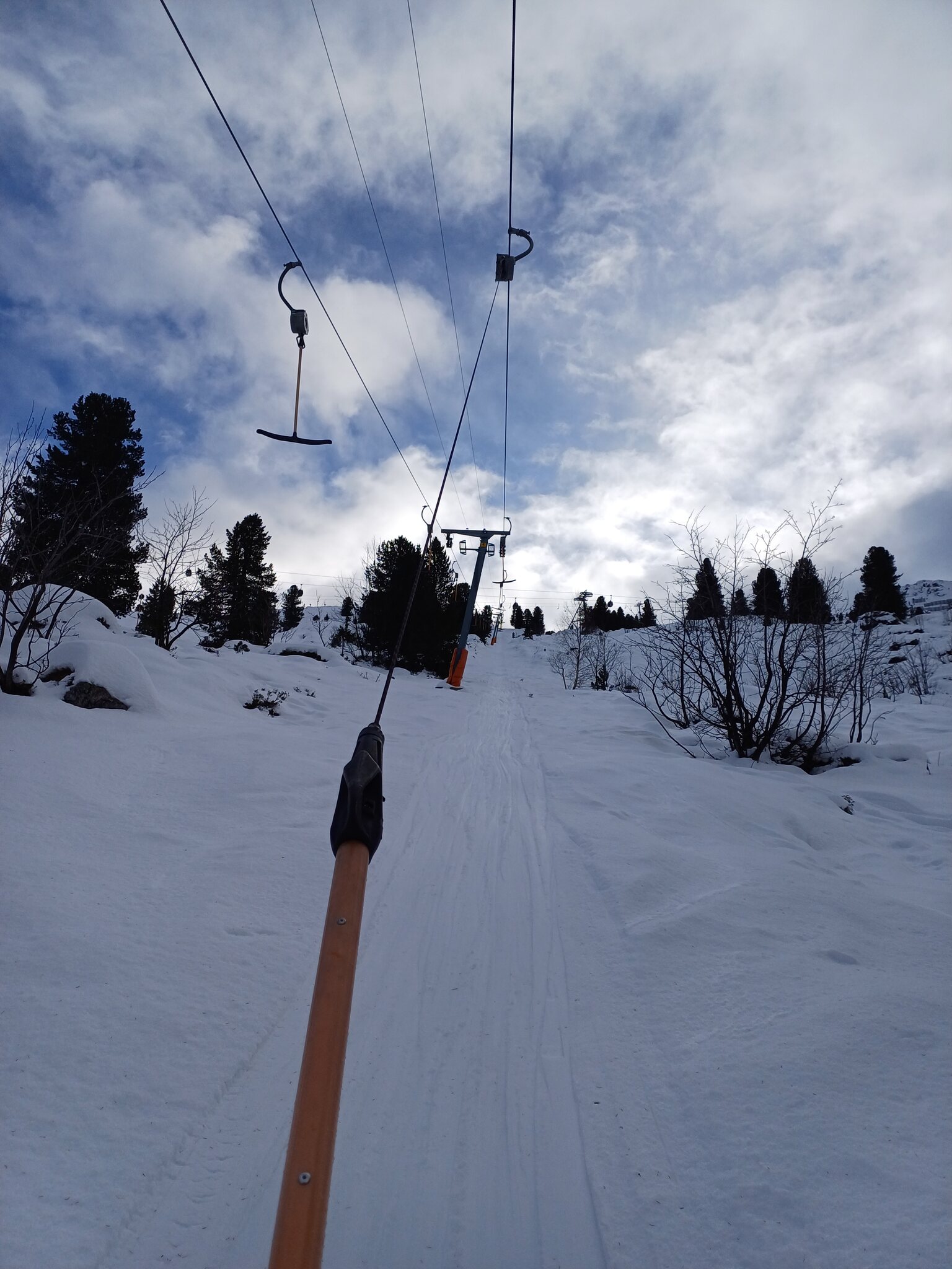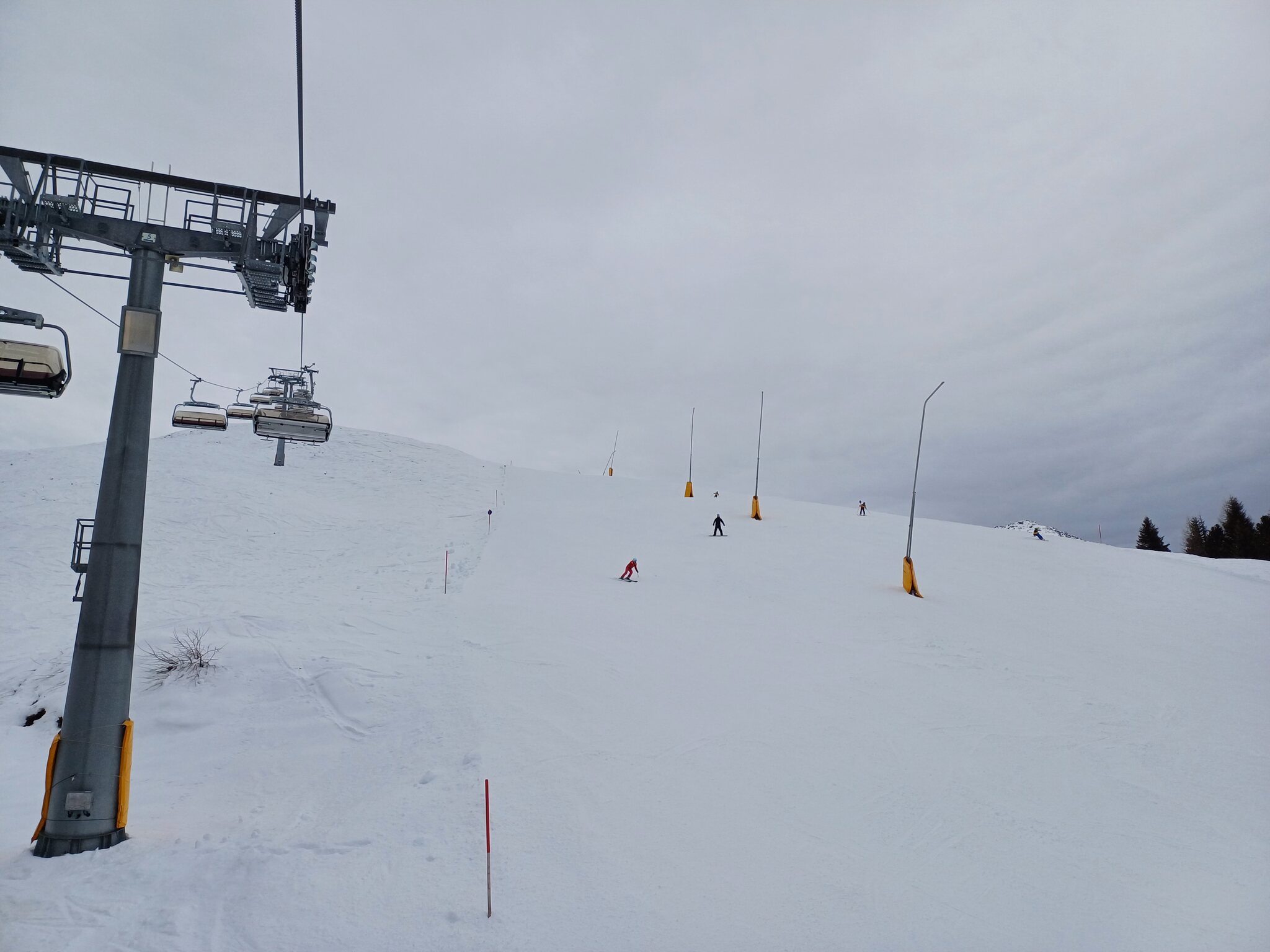 Bisher ist wirklich nichts los. Leider hat es auf die wohl sehr gut präparierten Pisten ca. 5cm Pappschnee drauf gehauen. Gut dass nicht mehr los ist.