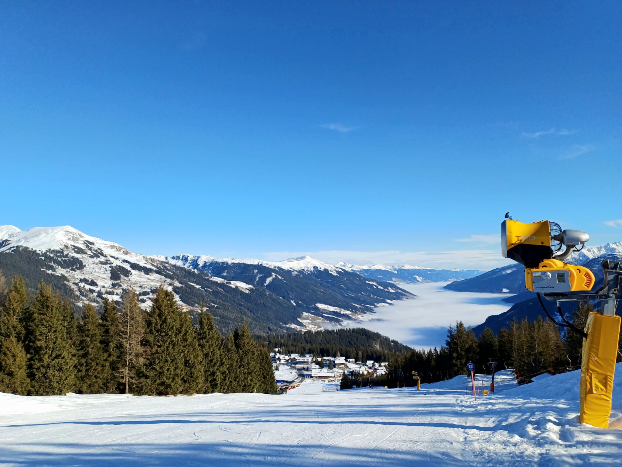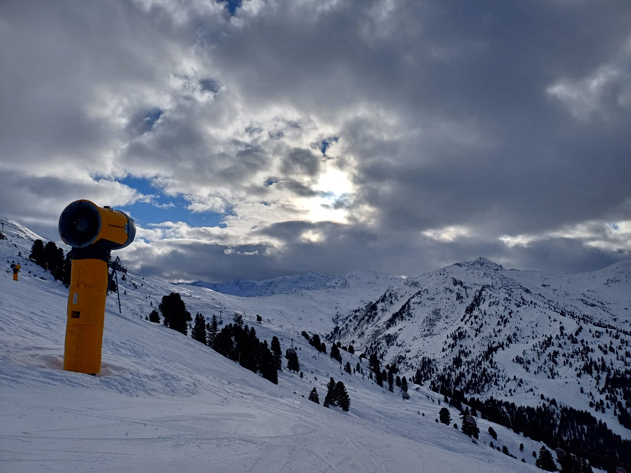 Hässlicher Lanzenwald an der Eggalm. Ohne die maschinelle Schneeerzeugung würde aktuell in Tirol wohl kein vernünftiges Skifahren möglich sein, nicht mal auf den Gletschern und wir schreiben den 18. Dezember. Deshalb bin ich absolut pro Beschneiung bzw. "Kunstschnee".