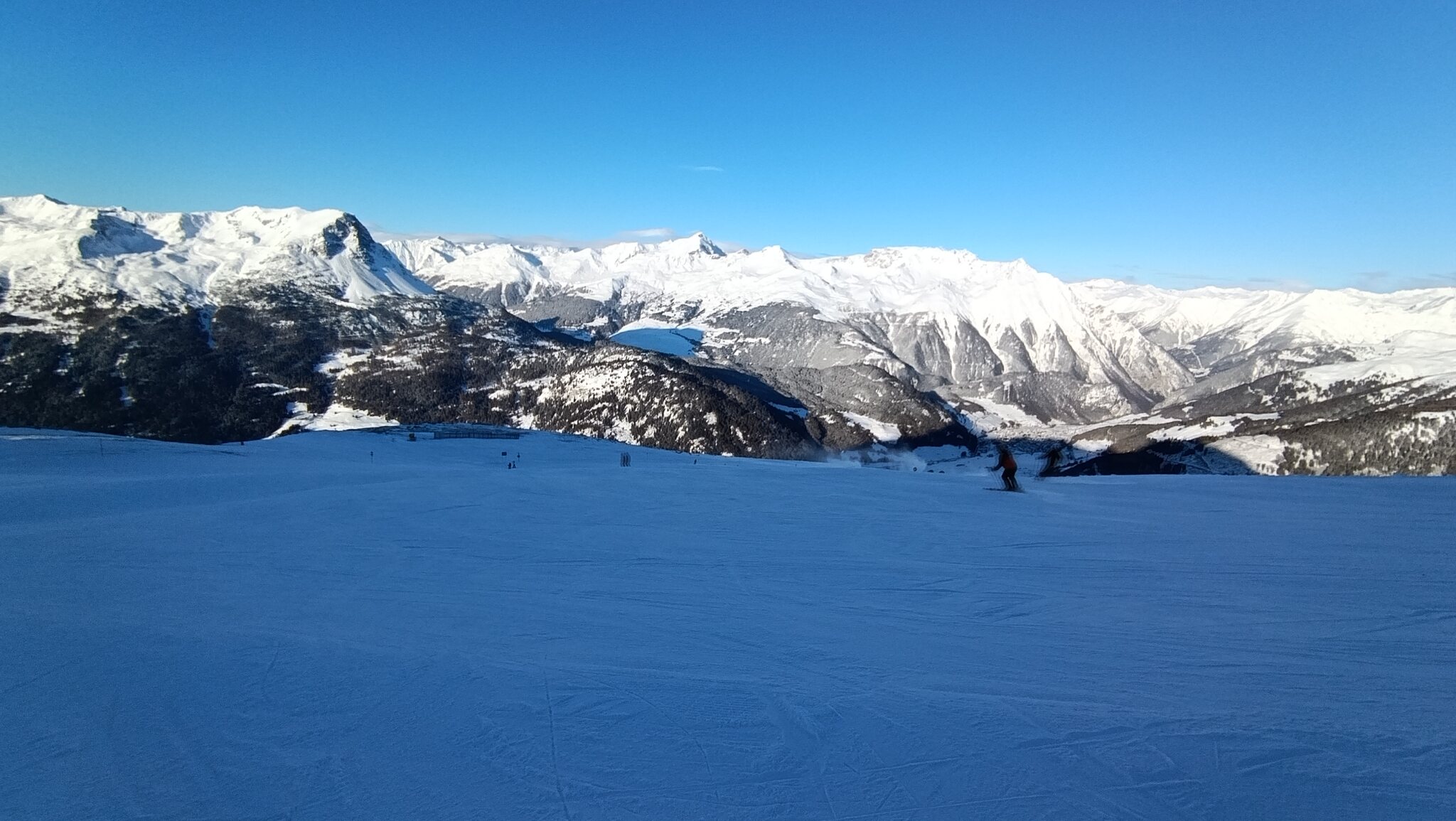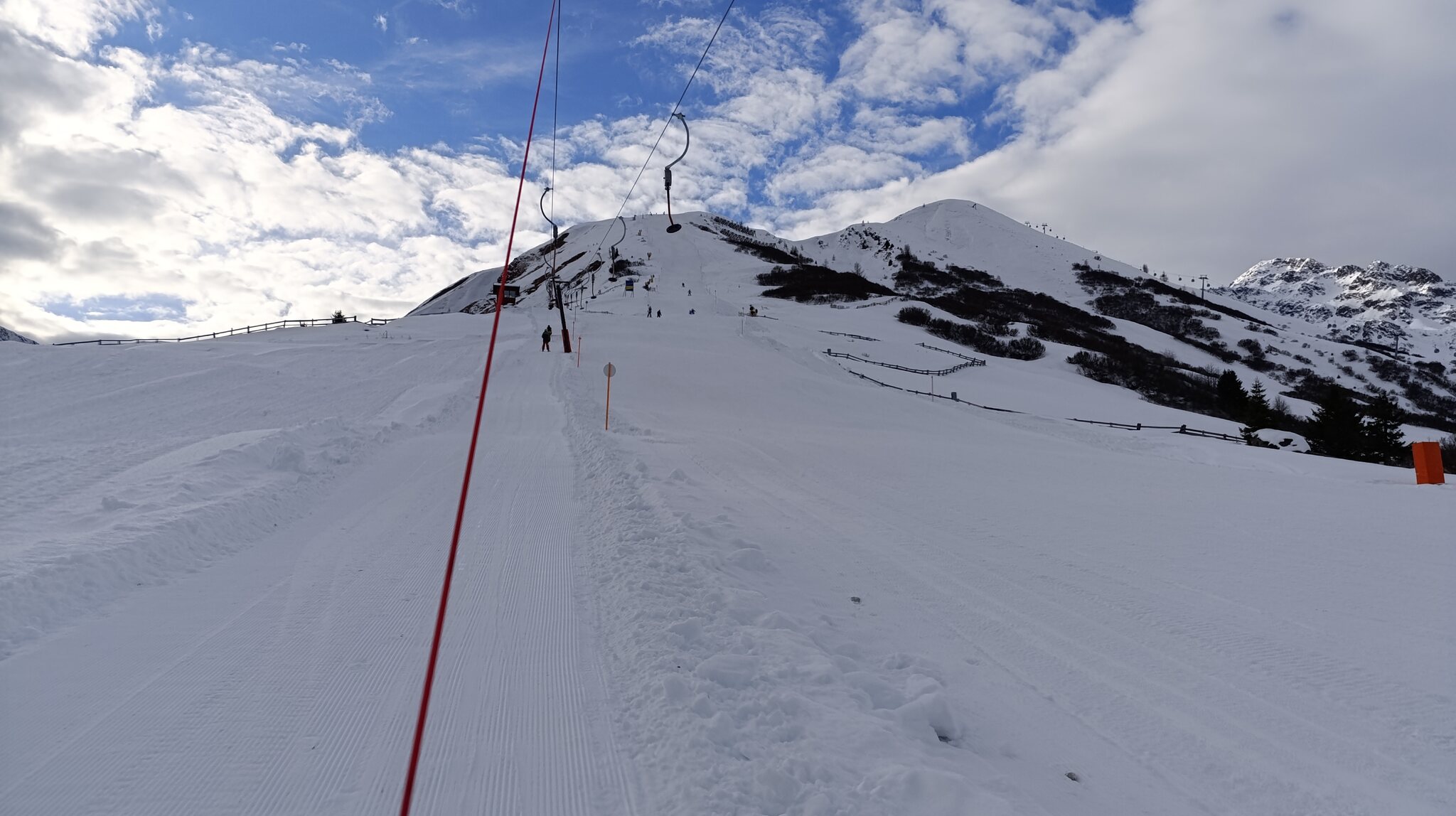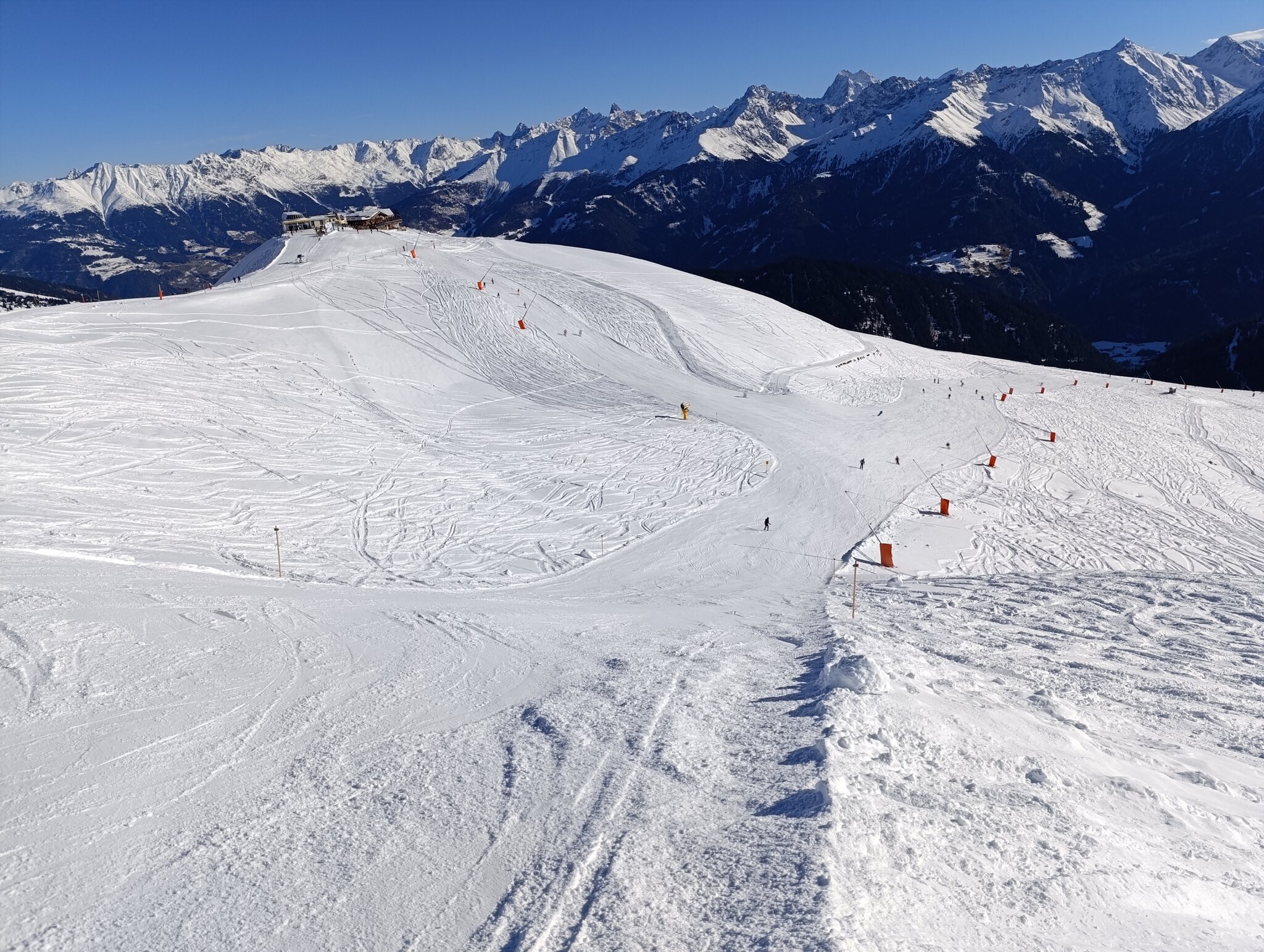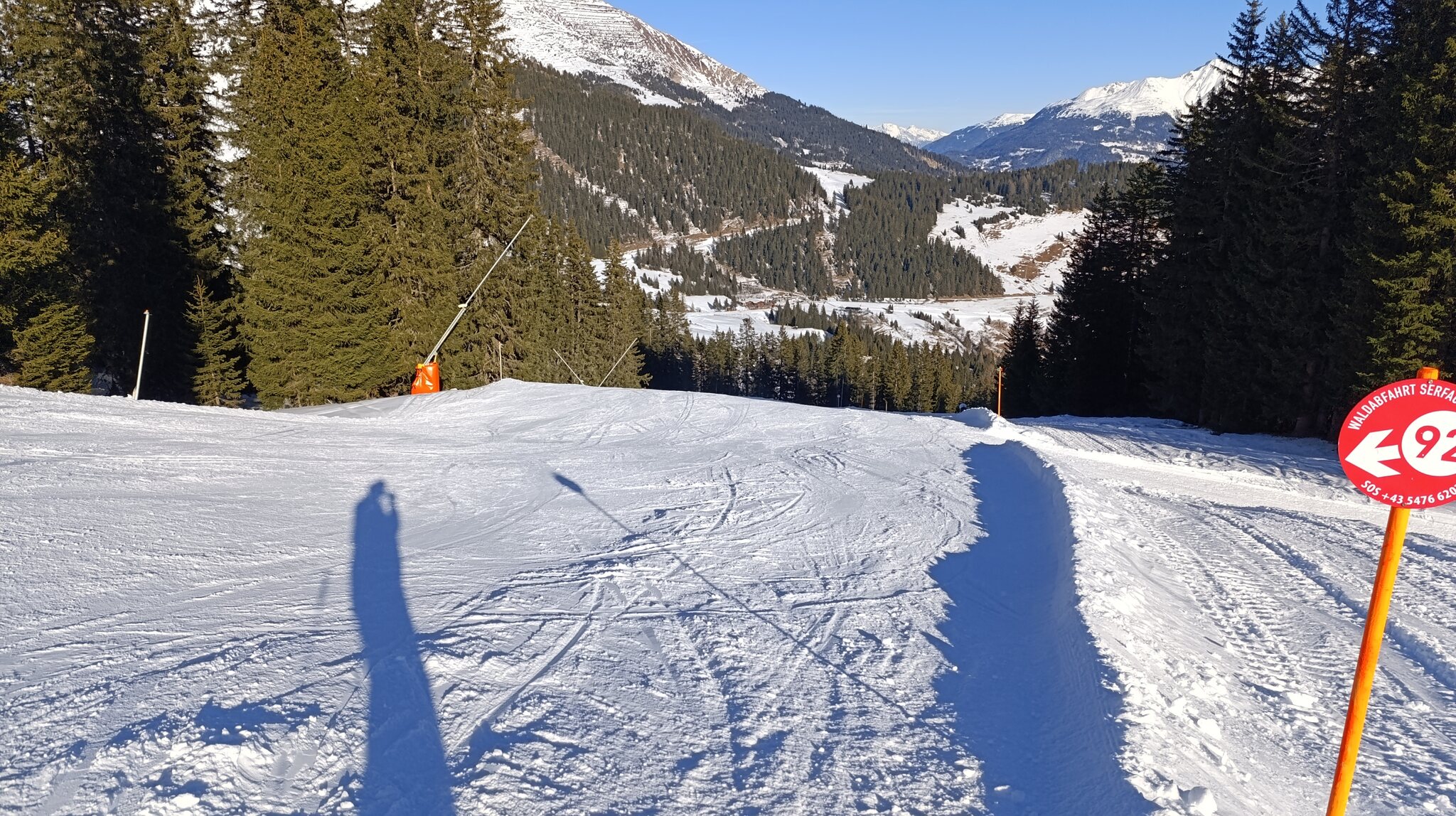 Heute perfekter Sonnenschein. Pistenbhart, Präbarierung: quick and dirty. Wahrscheinlich aufgrund Personalmangel..