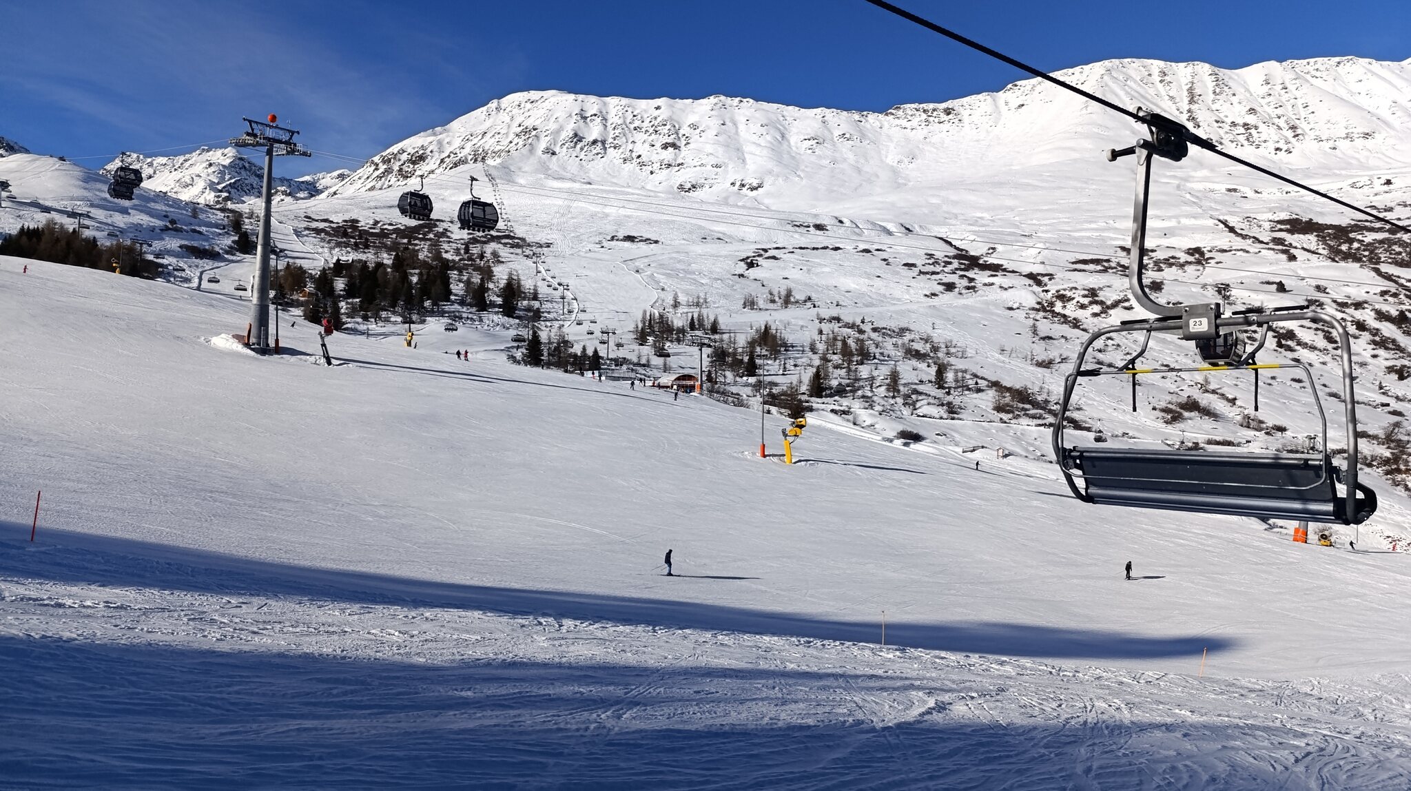 Mit relevanten Pisten meinte ich die schwarzen am Lazid, Pezid. Alle zu. Verbindungen sind aber offen.