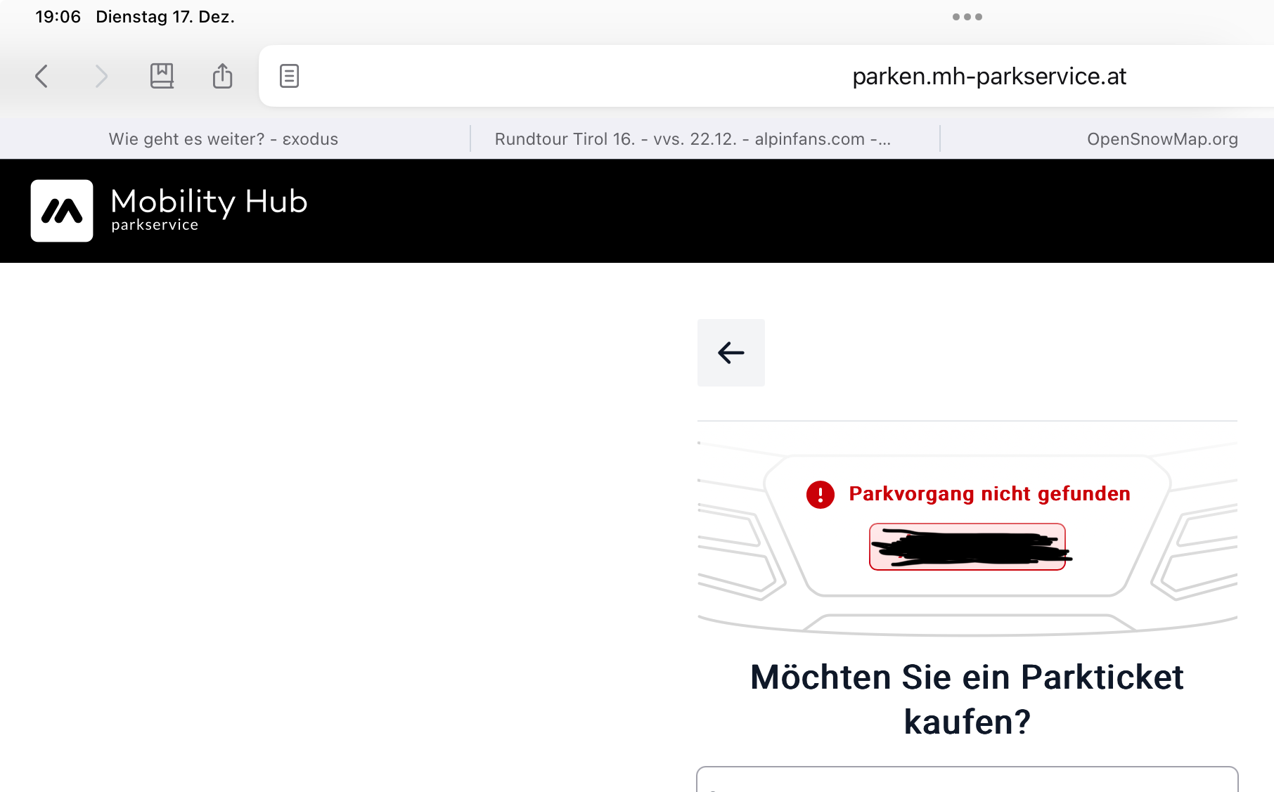 Was nun? Wie soll ich den Montag zahlen, wenn kein Parkvorgang gefunden wurde? Eine Kontaktmöglichkeit ist auf der Webseite auch nicht angegeben…