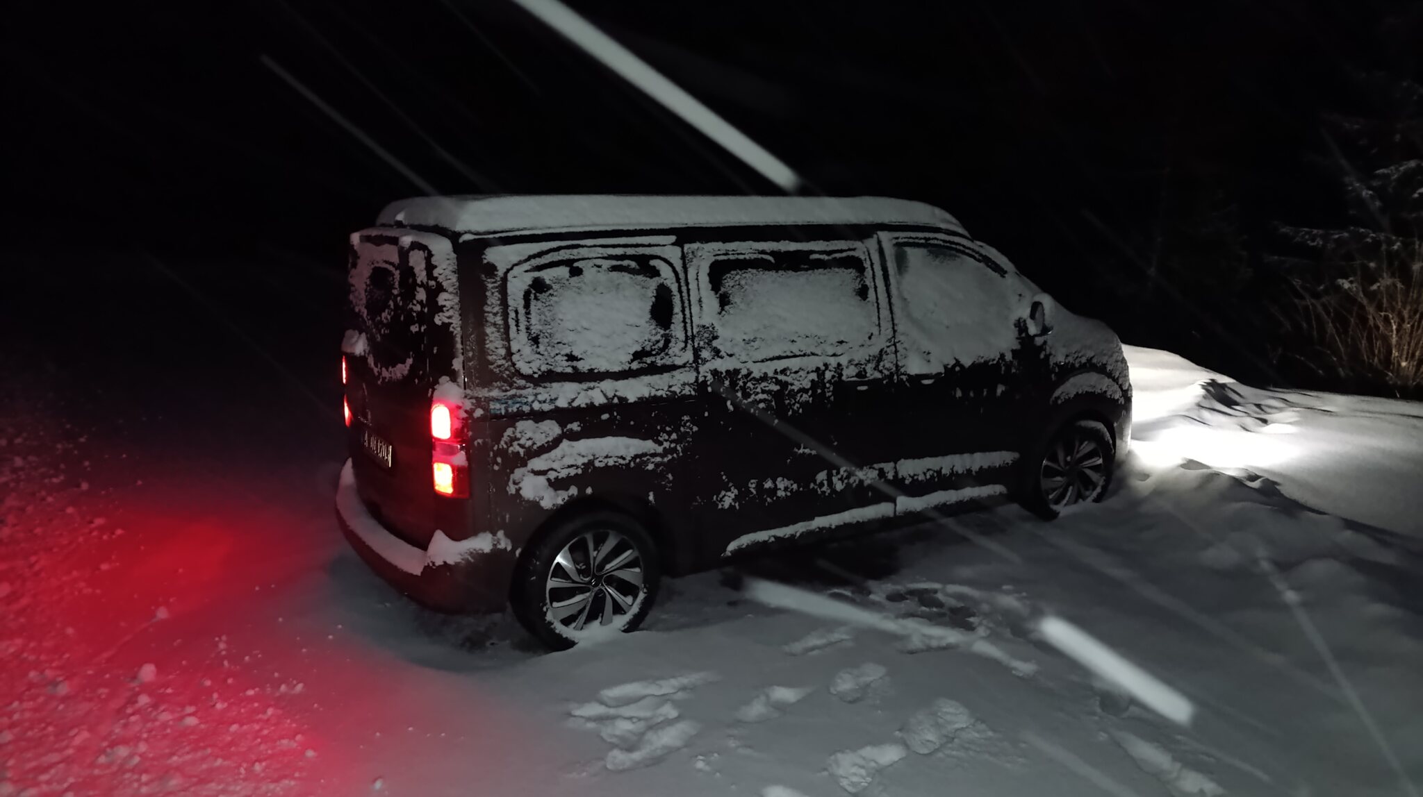 Erste Nacht bei Schneefall im Camper..