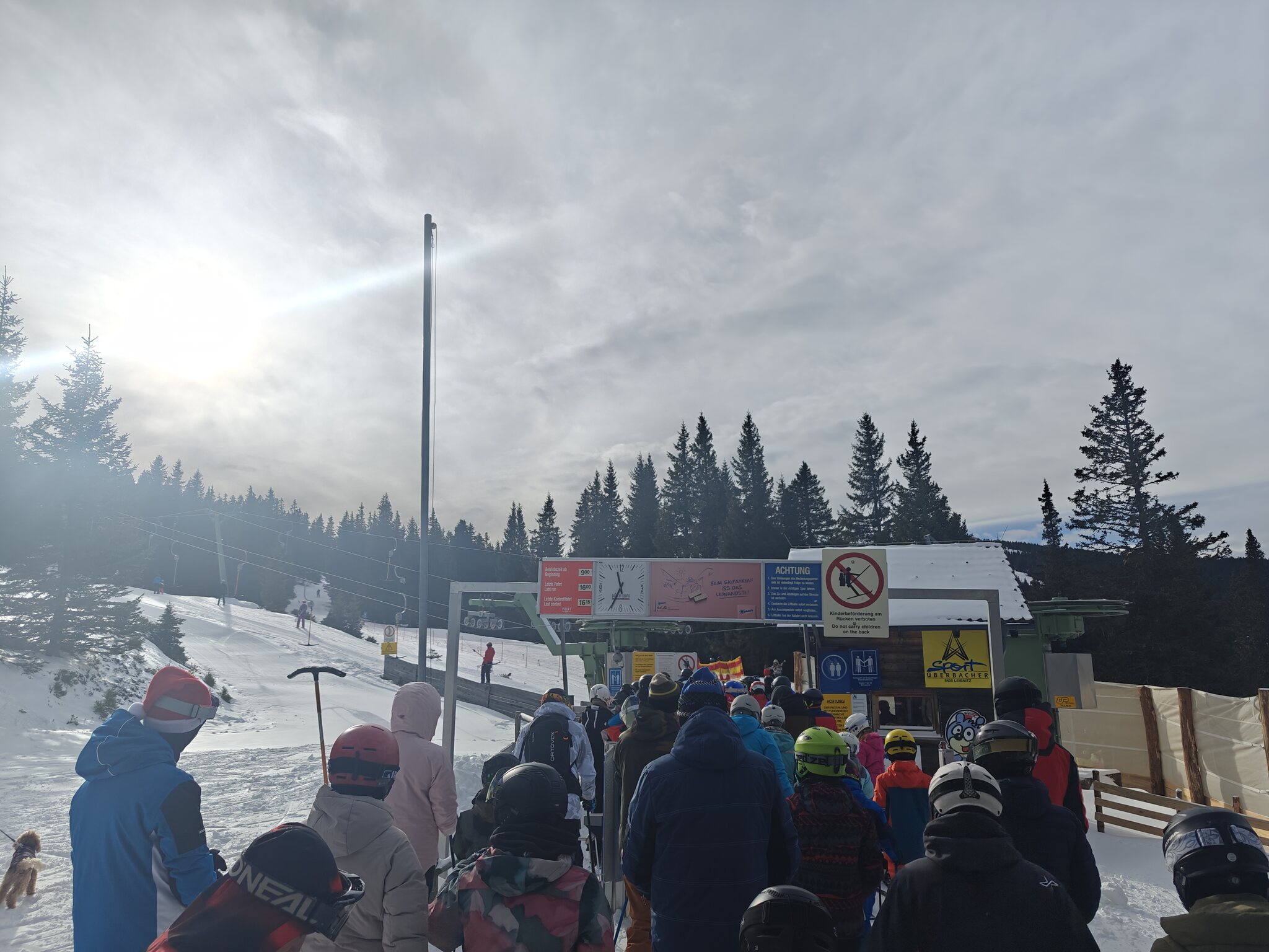 ^ Bei den Weinofenliften ein kleiner Schock. Hier ist es ja voll. Der zweite Lift wird gerade in Betrieb genommen.