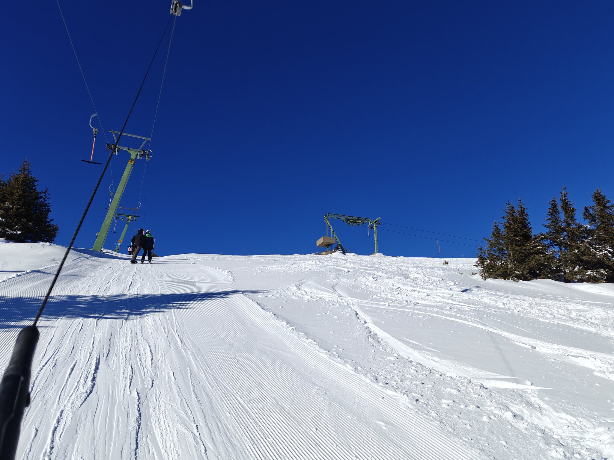 ^ Am Göslerlift liegt wie überall genügend Schnee auf Piste und Lifttrasse. Daneben gibt es nur ein wenig Kosmetik.