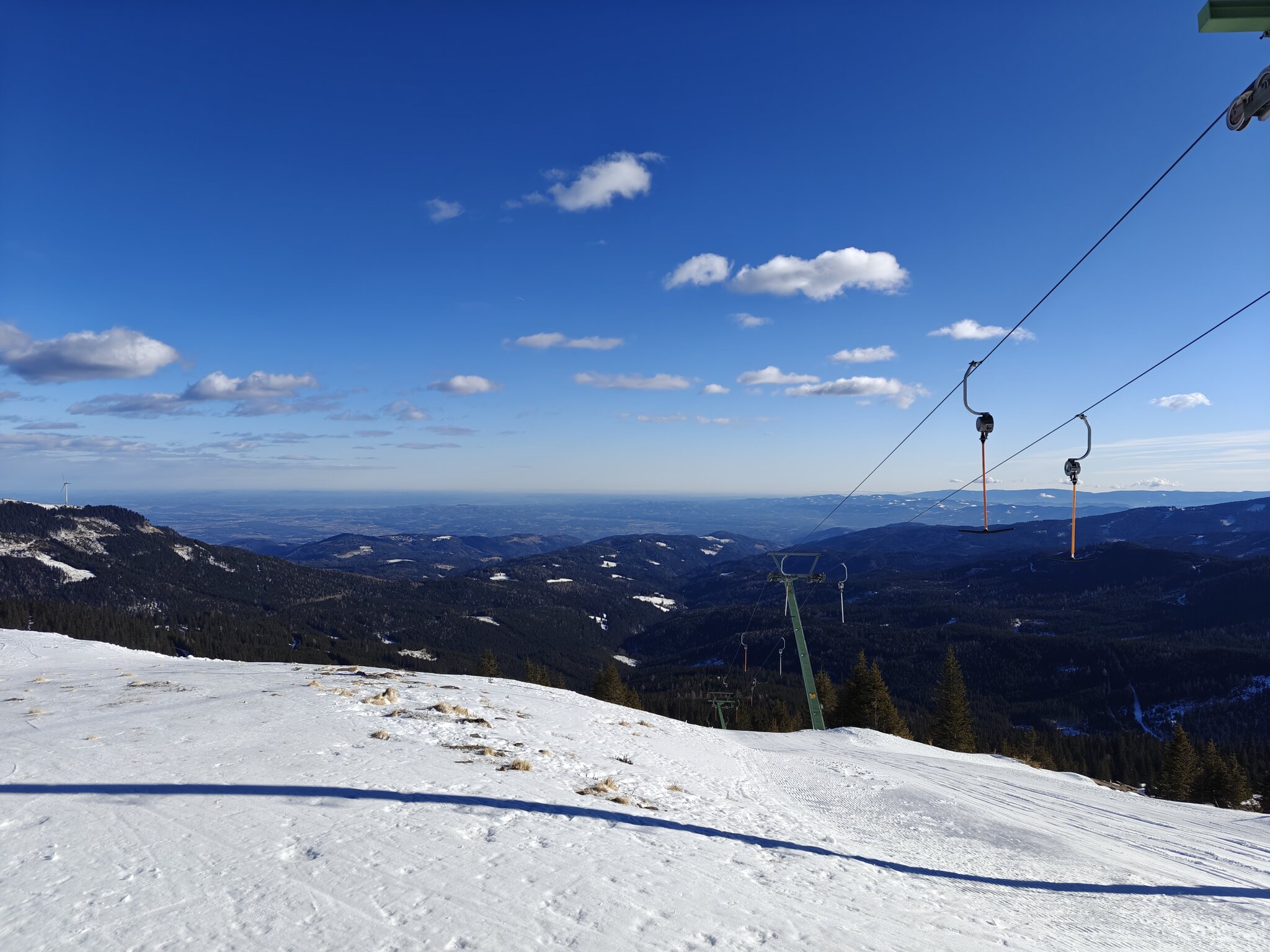 ^ Schneelochlift und Panorama ins Flachland.