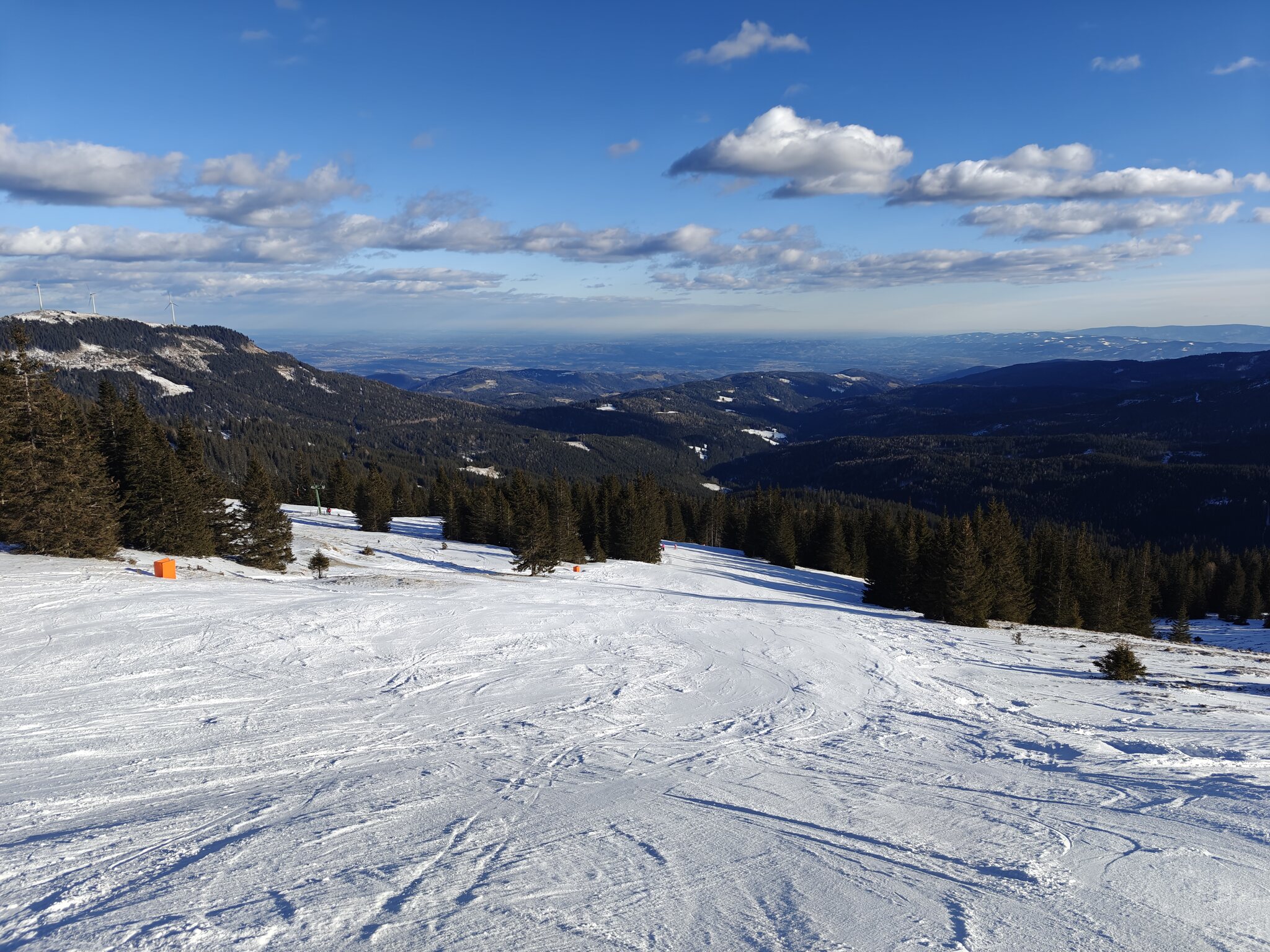 Heute geht es nochmal auf die Weinebene. Seit dem letztem Besuch sind der Schneelochlift und dessen zugehörige Pisten dazugekommen.