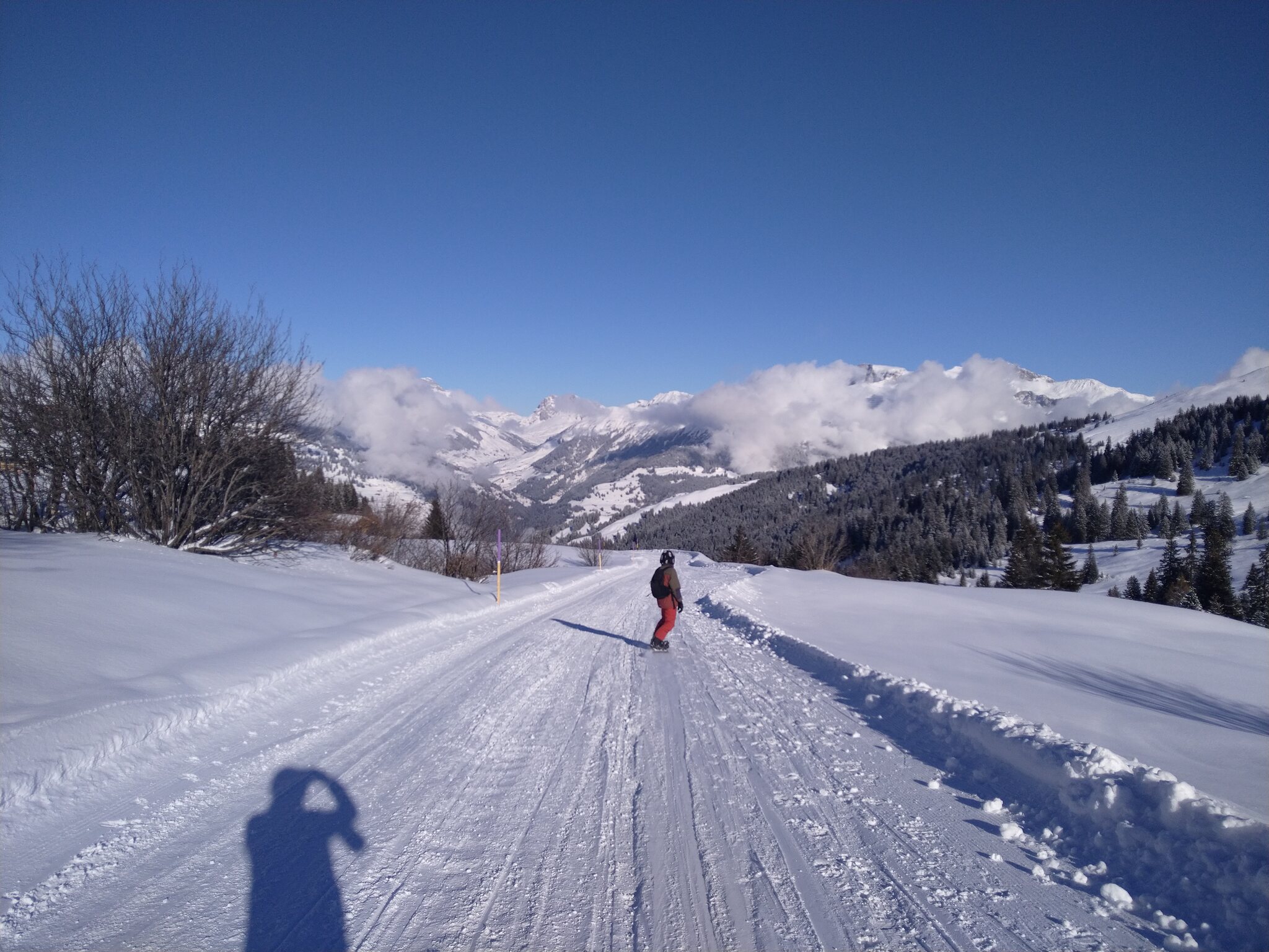 Wow, top Bedingungen, die ich die ganze Woche nie hatte, schön griffig, es ist ein Traum. Dazu wenig Leute und fast die Pisten alleine für uns.