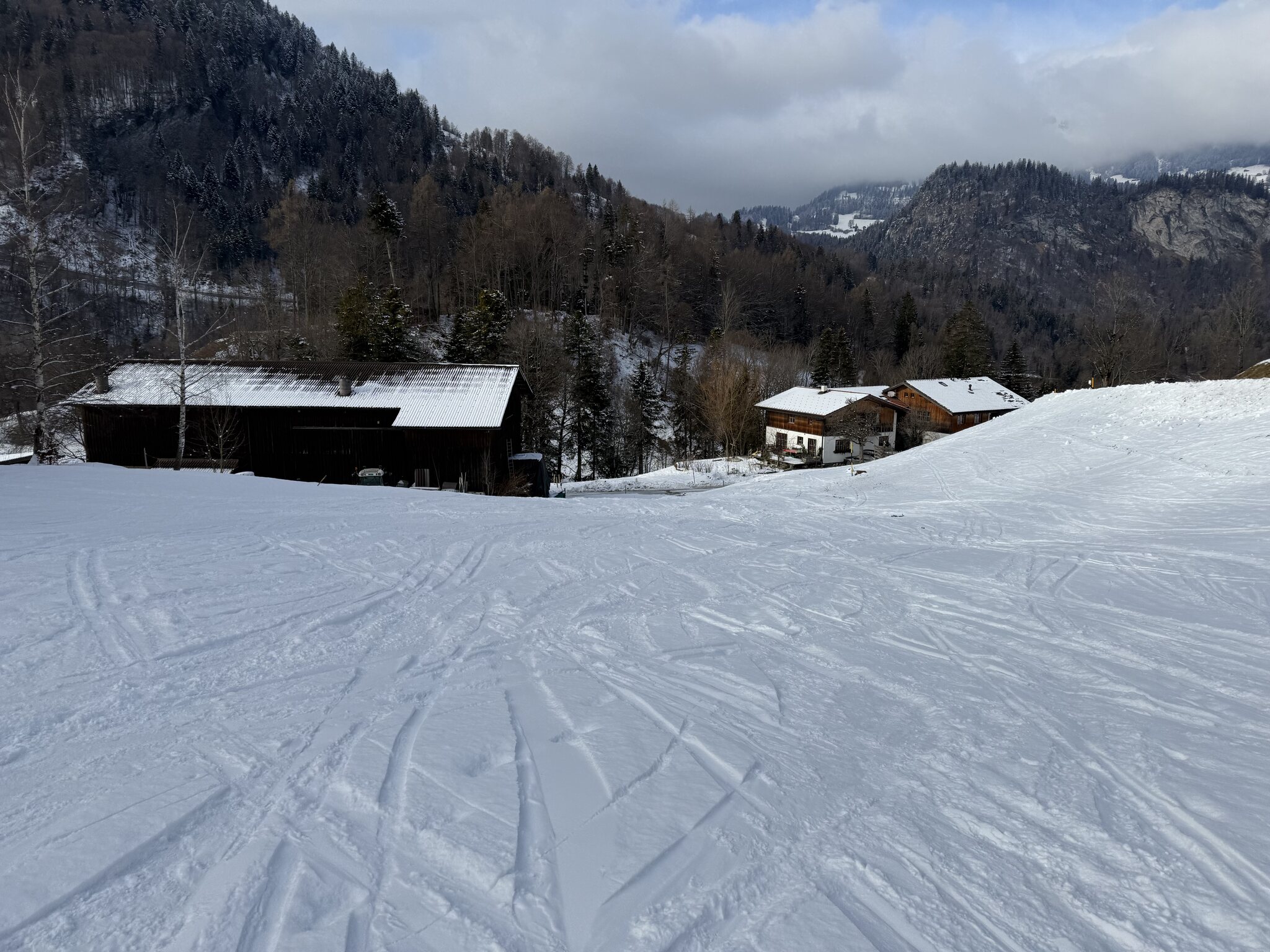 Auch die Wiese ganz unten bis zur Talstation hat genügend Schnee.