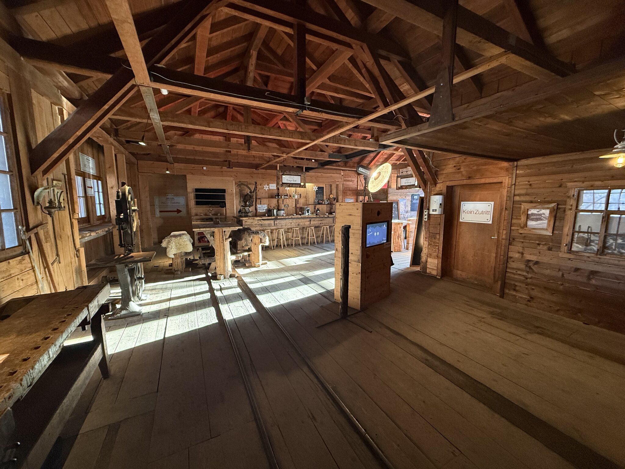 Punkt 08:30 geht die Kasse auf, wo ich ein Tagesticket erhalte gegen Vorweisen meiner GraubündenCard: Die Eingangshalle ist wie immer sehr kultig ausgestattet und erinnert mehr an eine Warteschlage im Europapark.